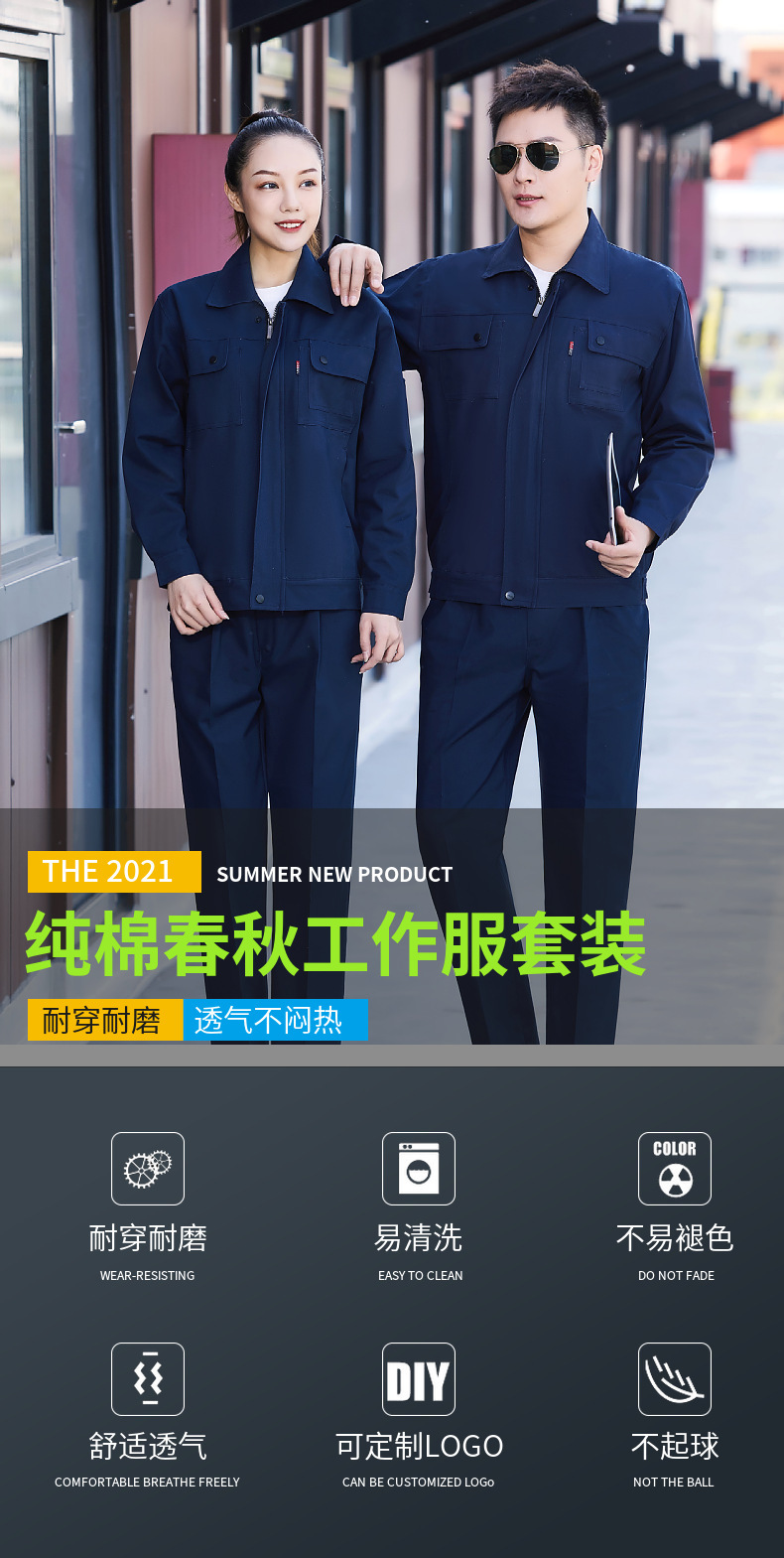批发春秋纯棉工作服套装双层劳保服食品机修电焊工地电网工厂印绣