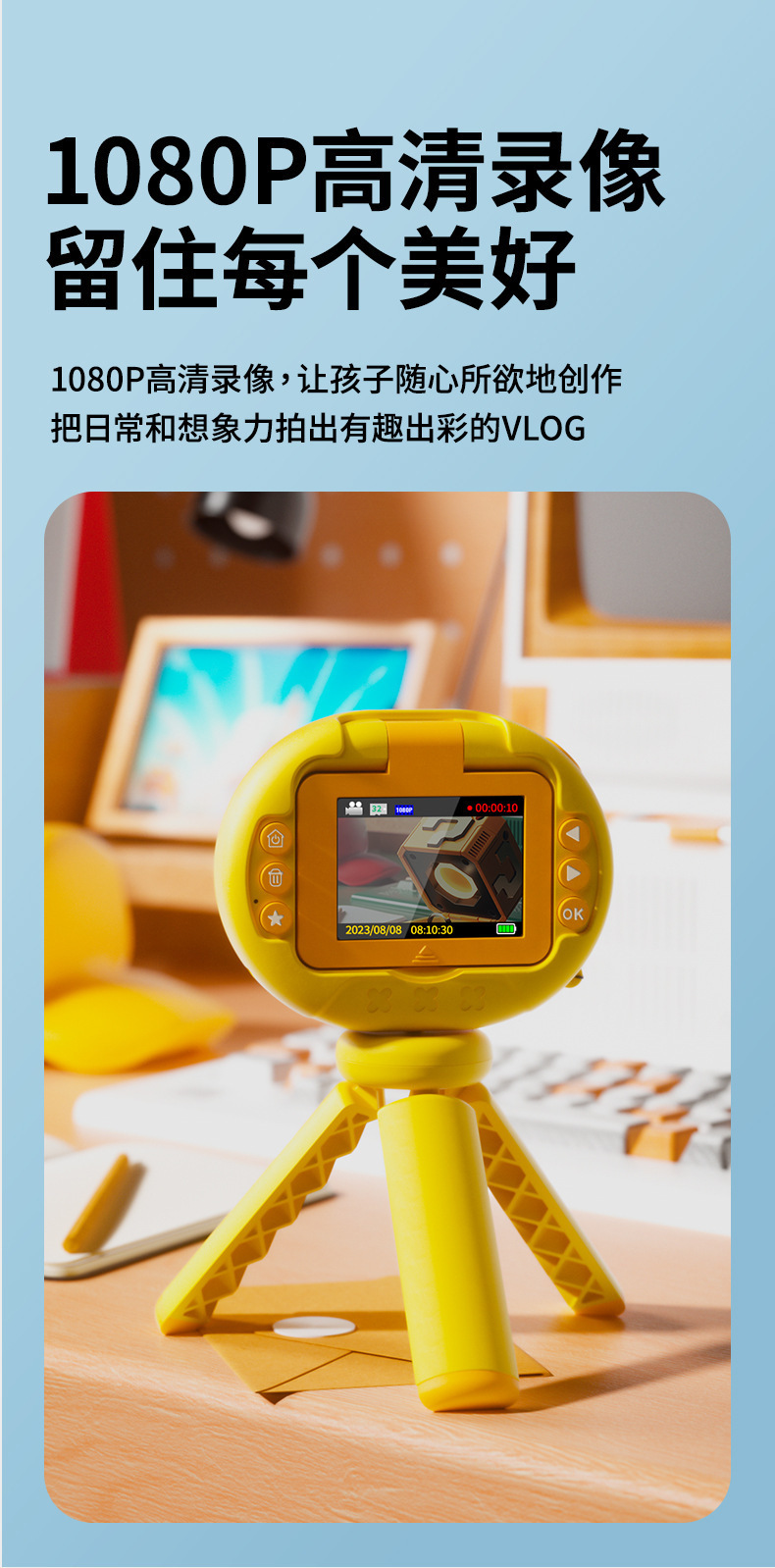 새로운 어린이 카메라는 사진과 비디오를 찍을 수 있습니다. 미니 카메라 플립 스크린 브래킷 소녀의 생일 선물 보내기스토어 가기