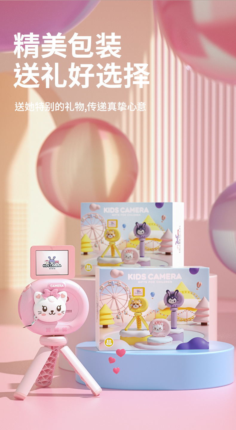 새로운 어린이 카메라는 사진과 비디오를 찍을 수 있습니다. 미니 카메라 플립 스크린 브래킷 소녀의 생일 선물 보내기