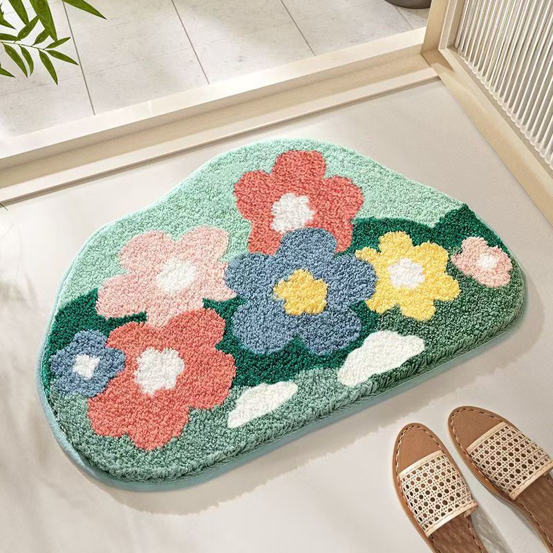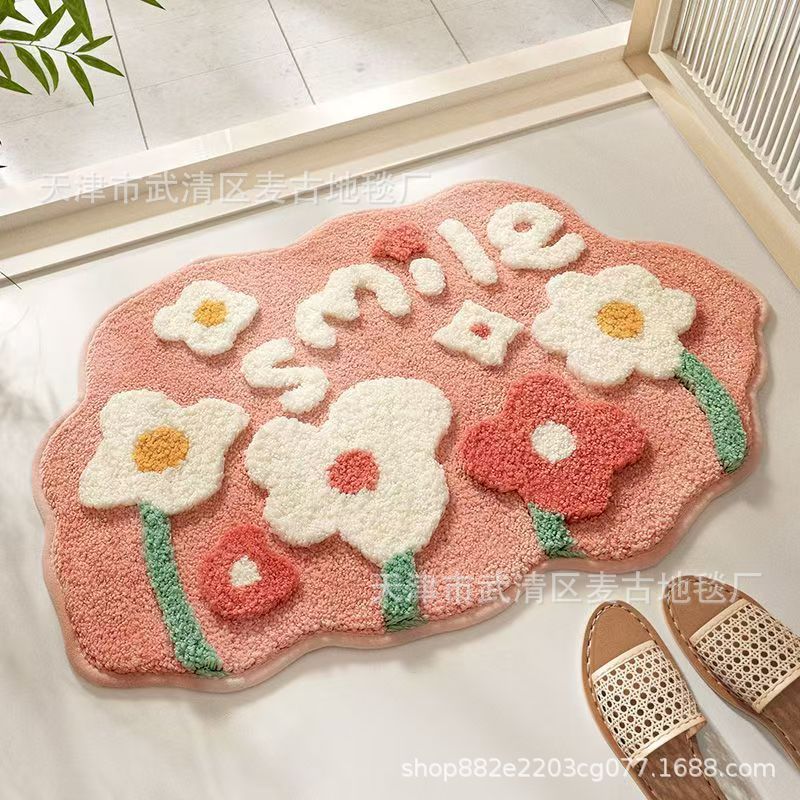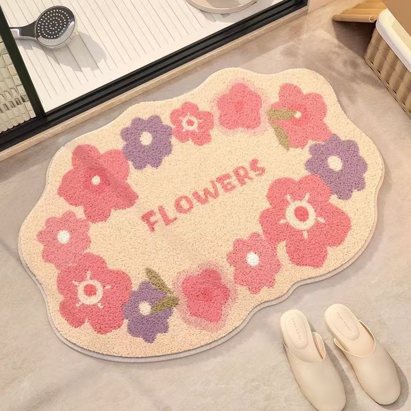 바닥 매트 화장실 욕실 발 매트 꽃 물 흡수 가정용 화장실 문 화장실 문 침실 카펫 매트스토어 가기