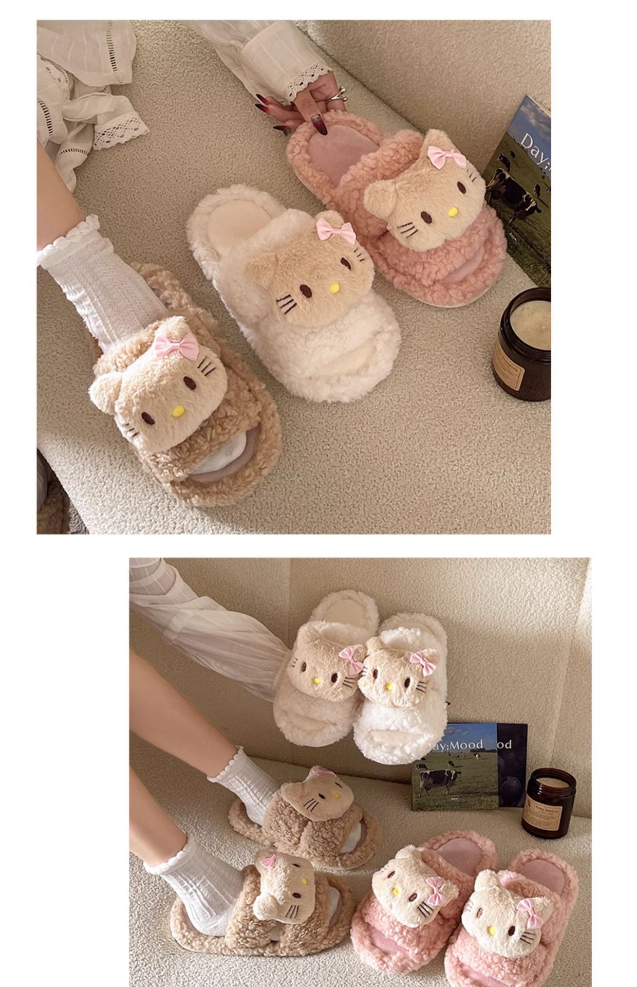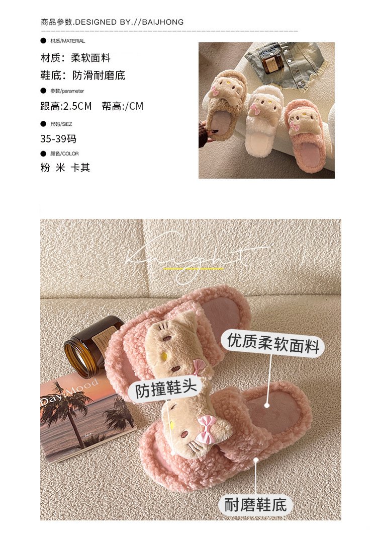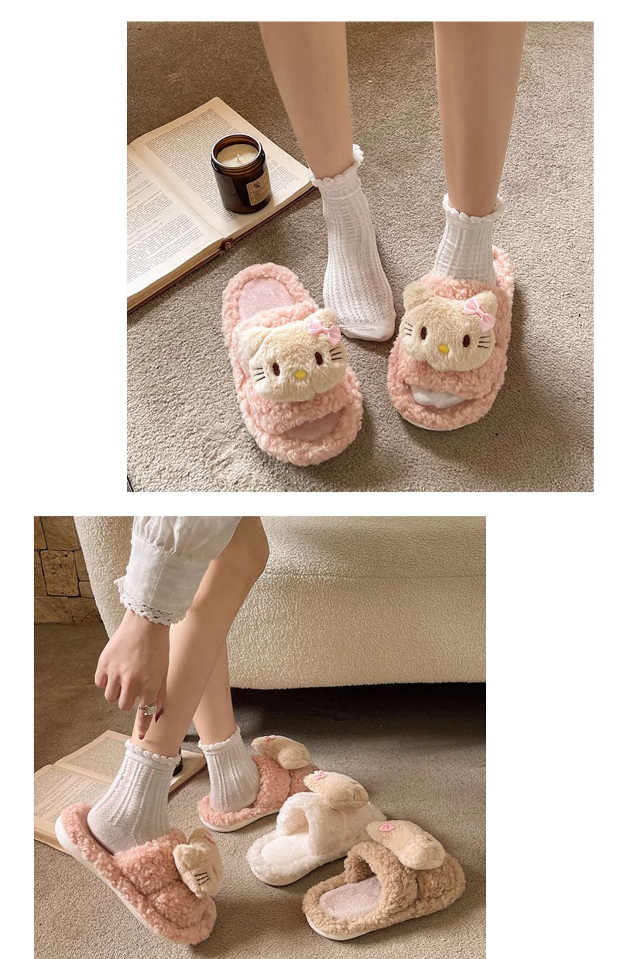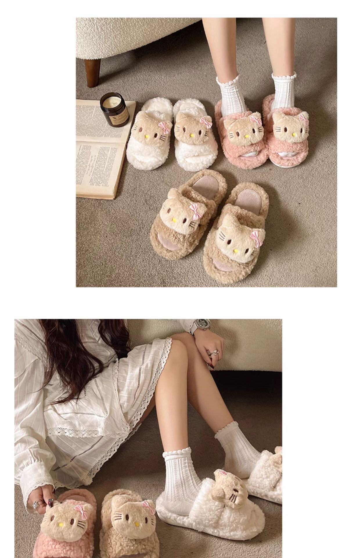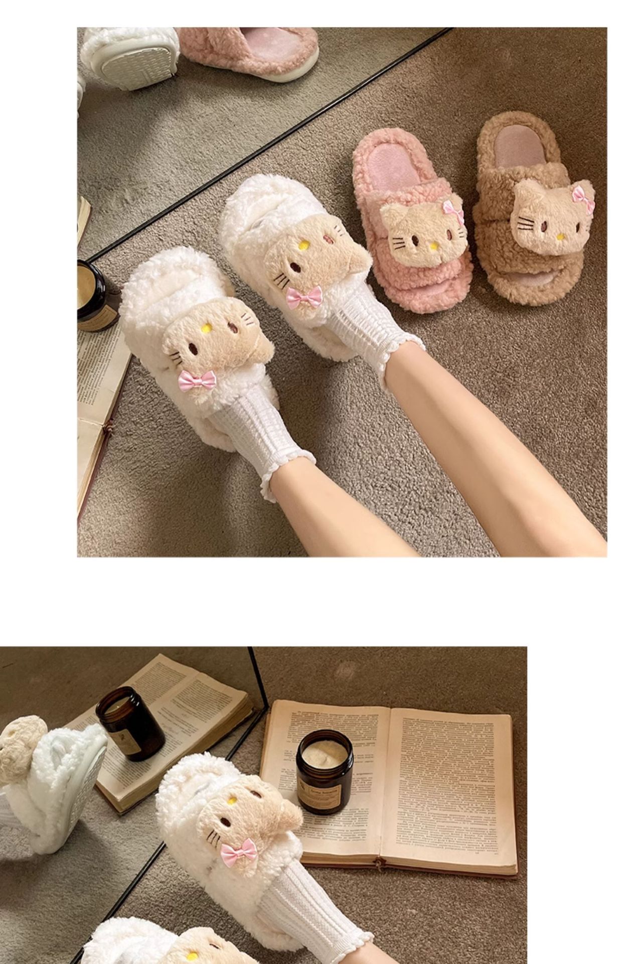 고양이 모양 털 슬리퍼 만화 여성용 외출용 2024 가을 겨울 신상 플랫 미끄럼 방지 털 슬리퍼 외출용 가능스토어 가기