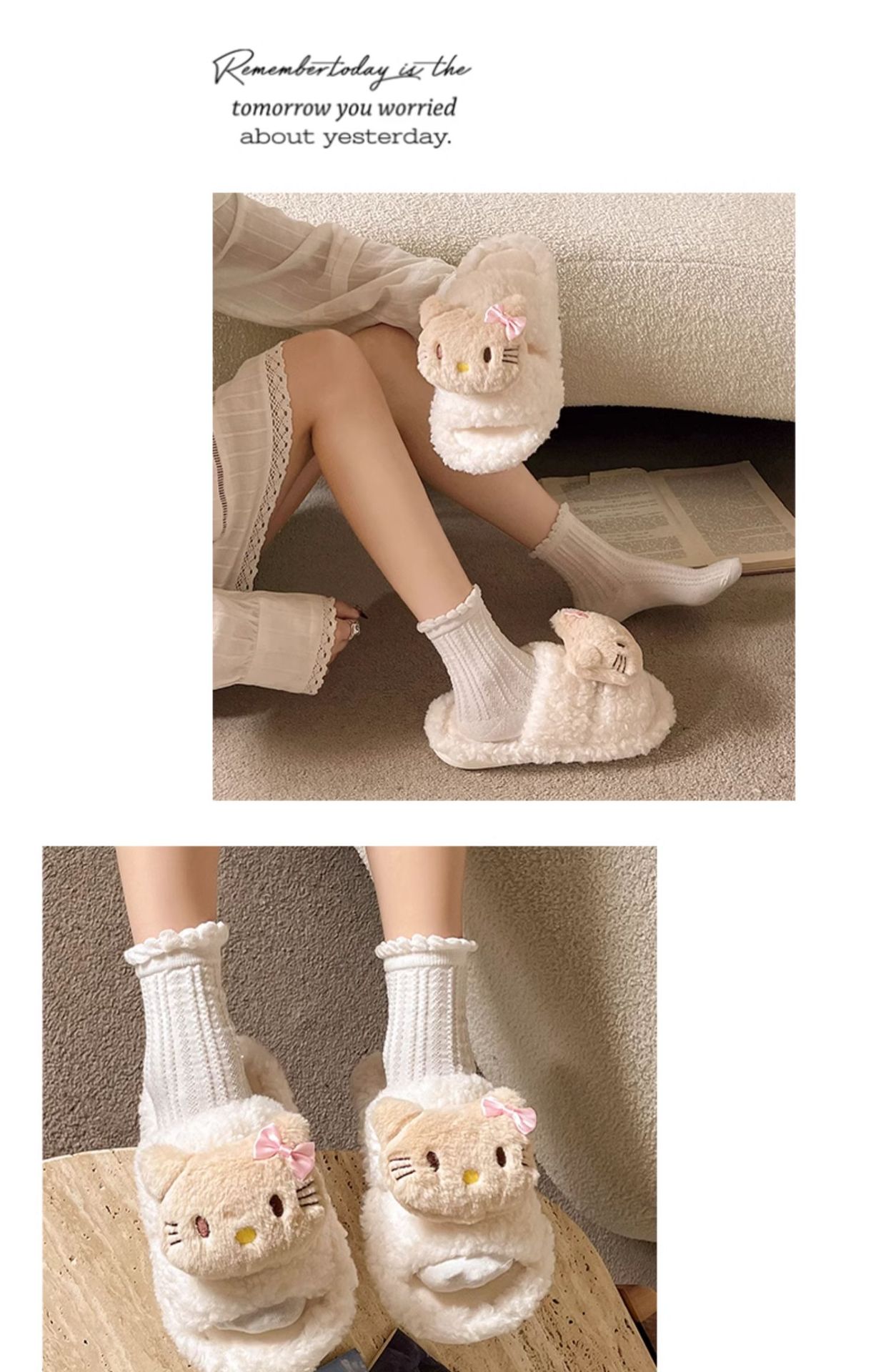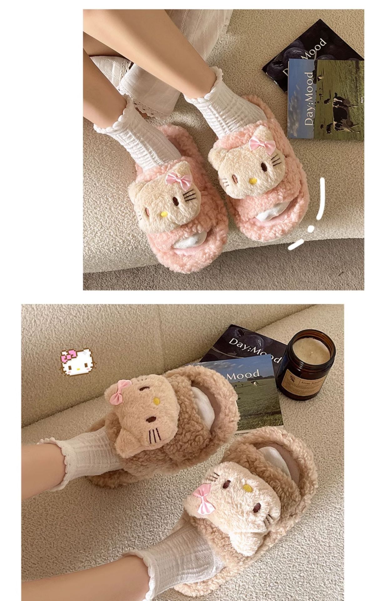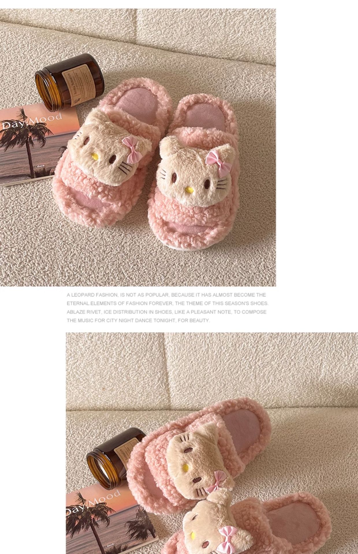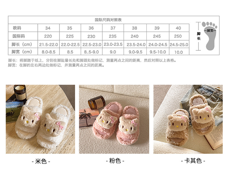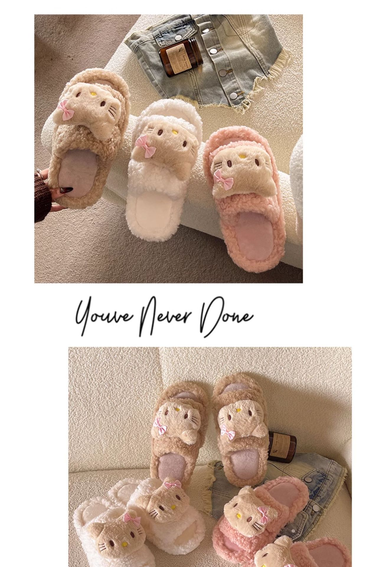 고양이 모양 털 슬리퍼 만화 여성용 외출용 2024 가을 겨울 신상 플랫 미끄럼 방지 털 슬리퍼 외출용 가능스토어 가기