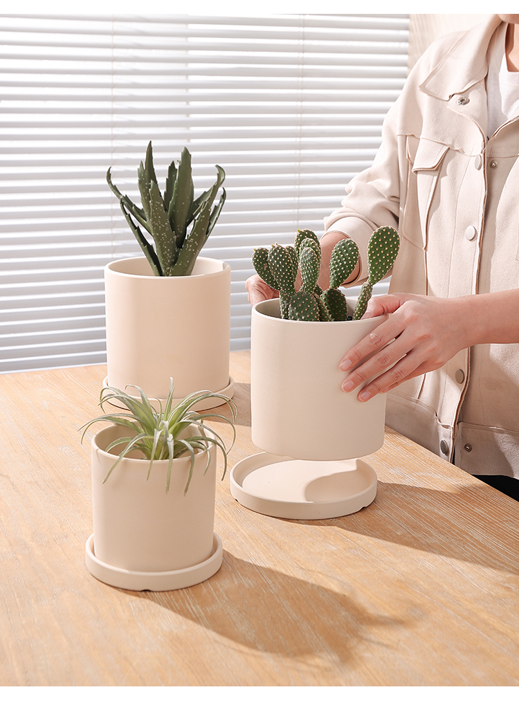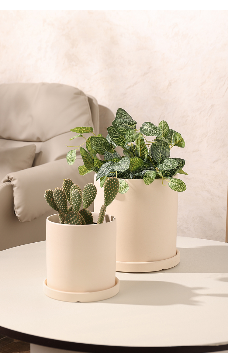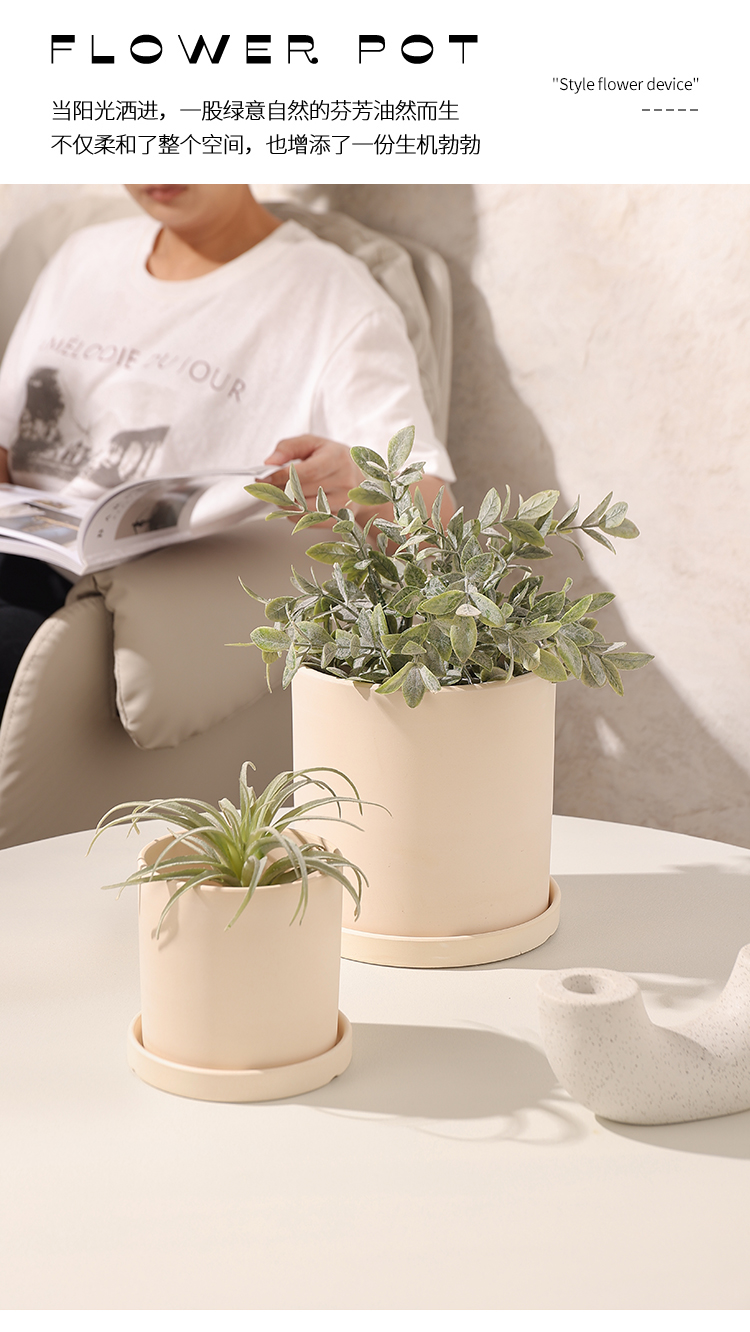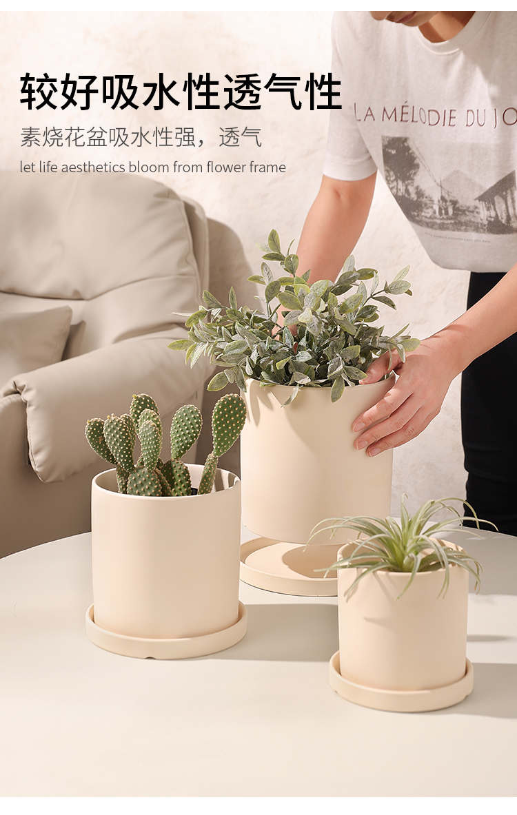 북유럽 간단한 통기성 세라믹 평원 화분 실내 녹색 아로마아 육체 도자기 냄비 난초 대형 소형 벨트 트레이