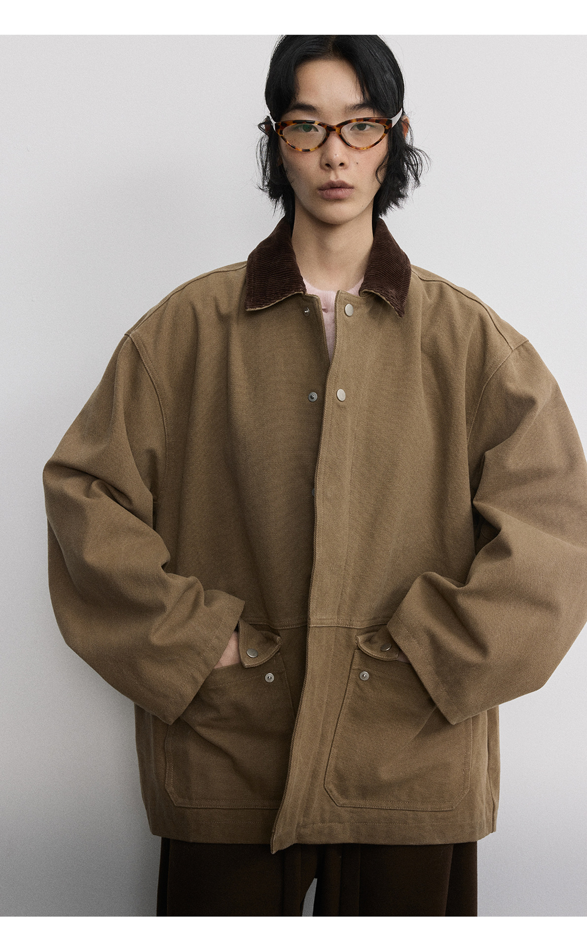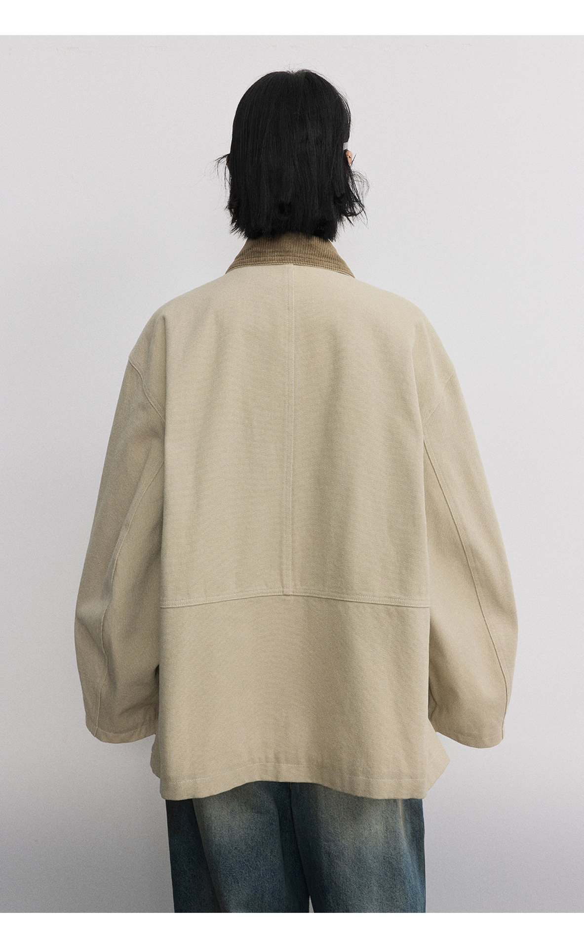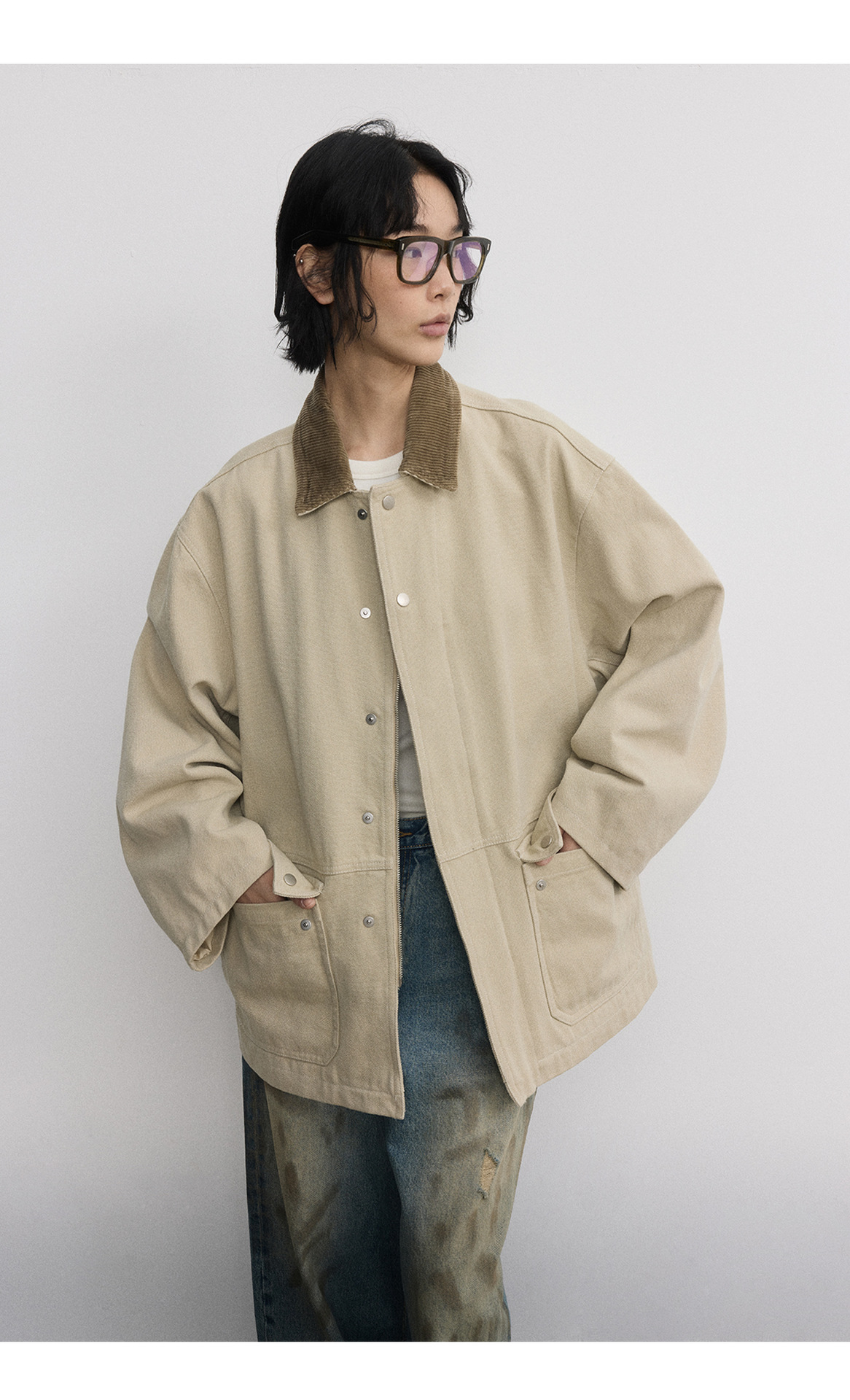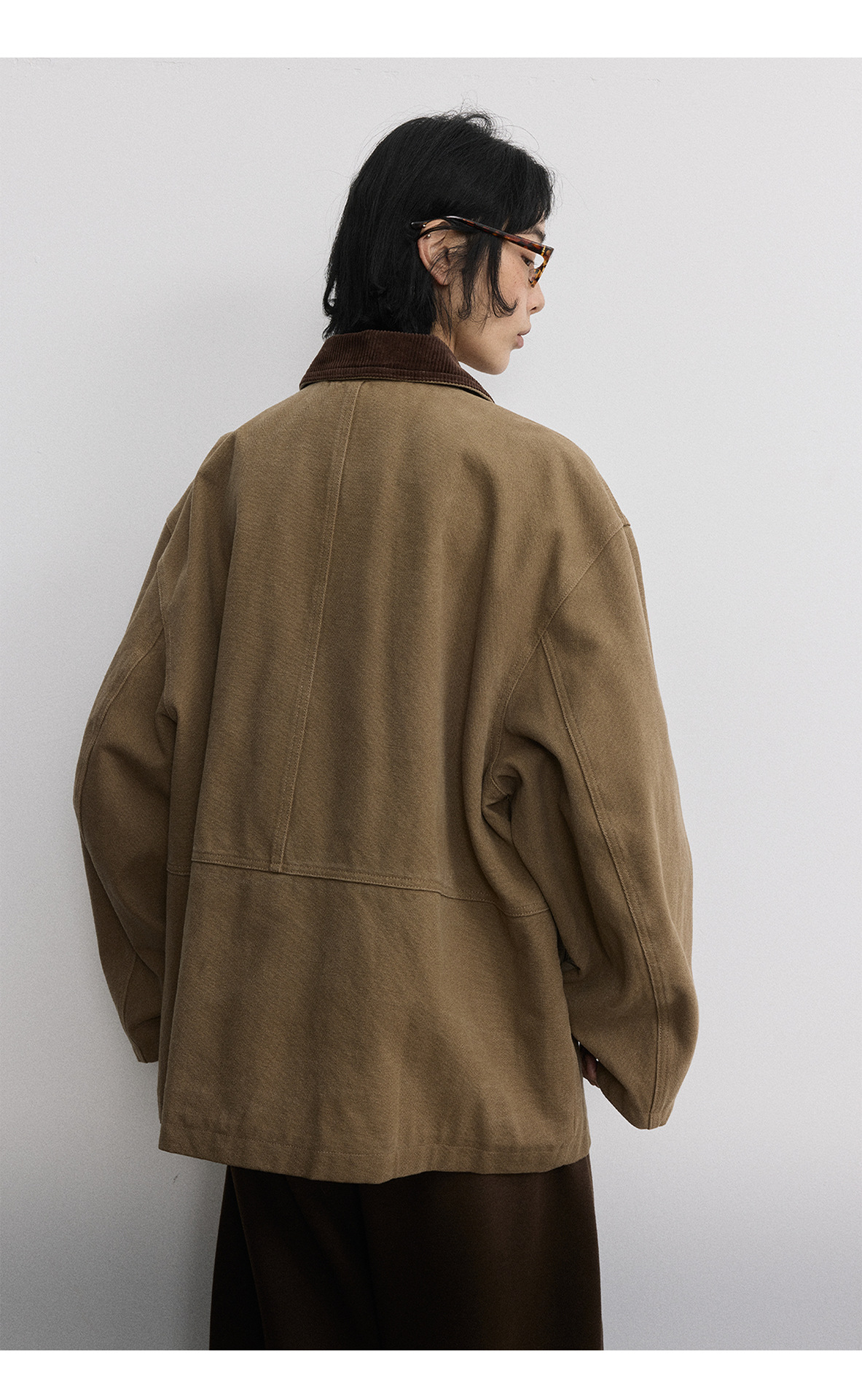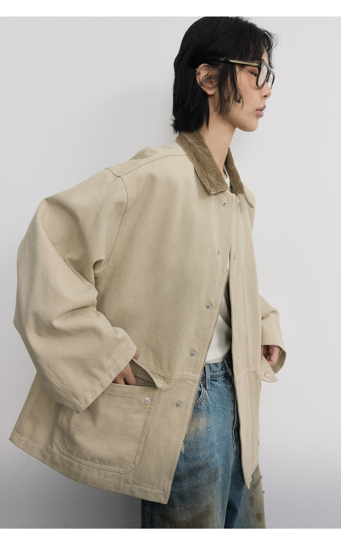 [시간 방문] 여성을 위한 새로운 코튼 클래식 튀김 소금 거친 작업복 대비 색상 충돌 루즈 재킷 V7565