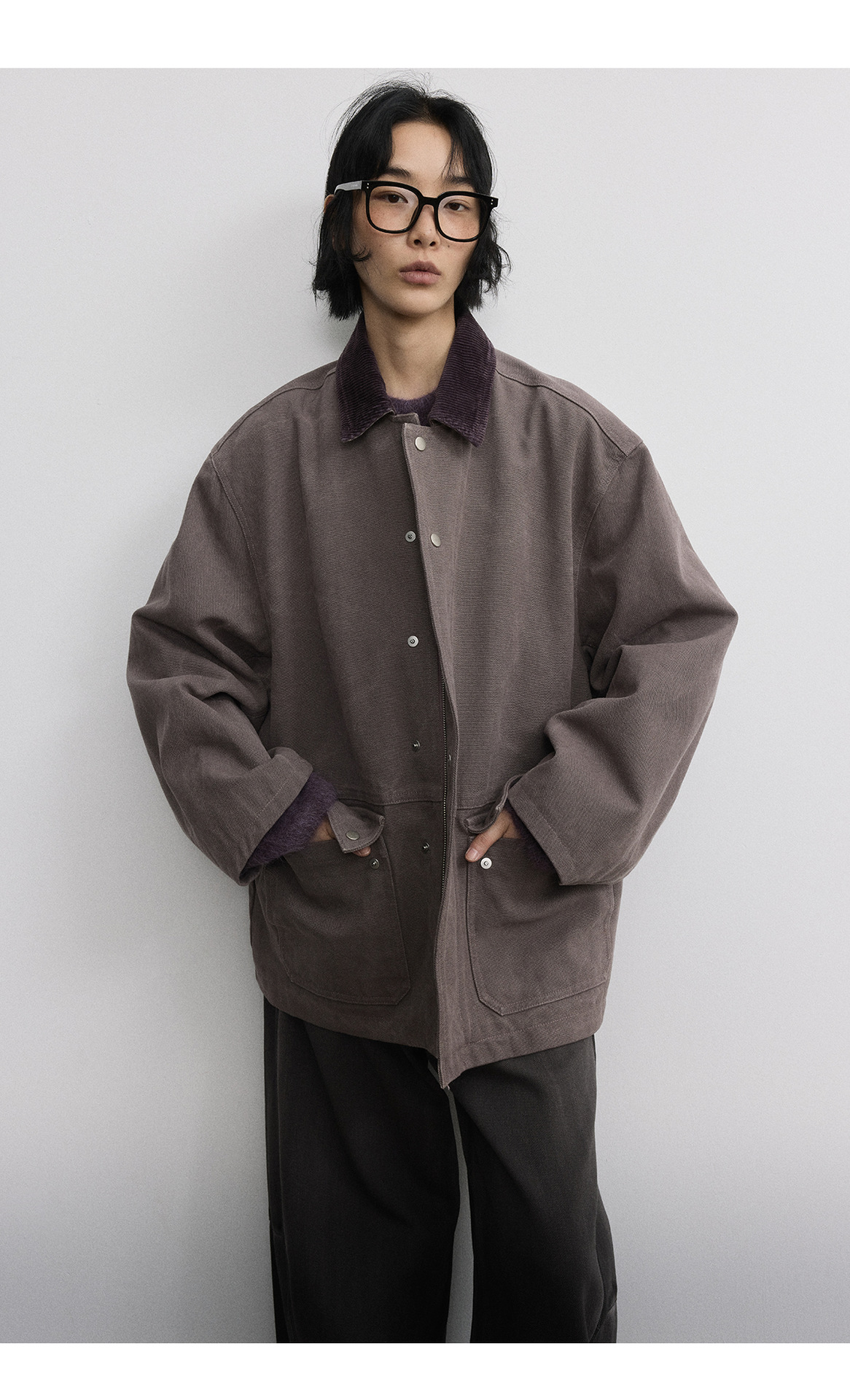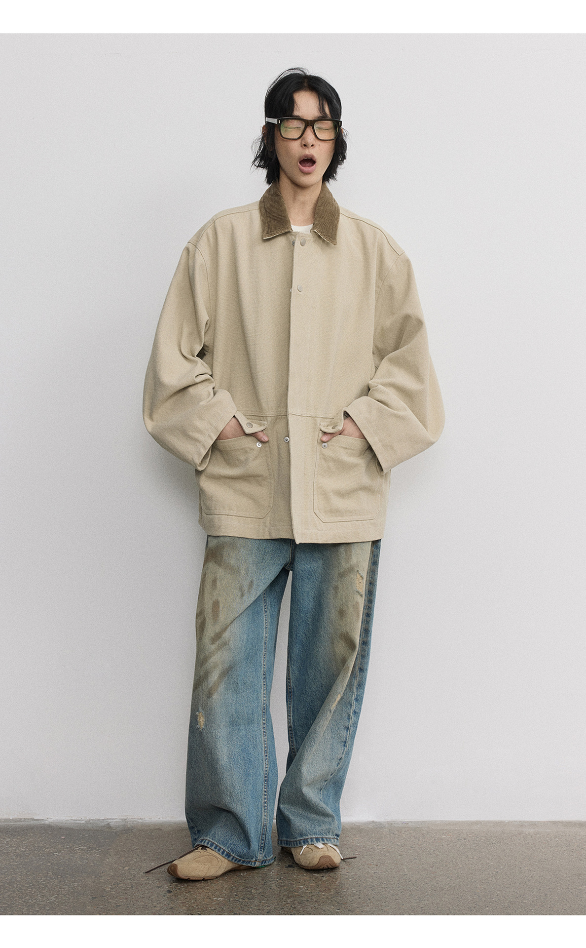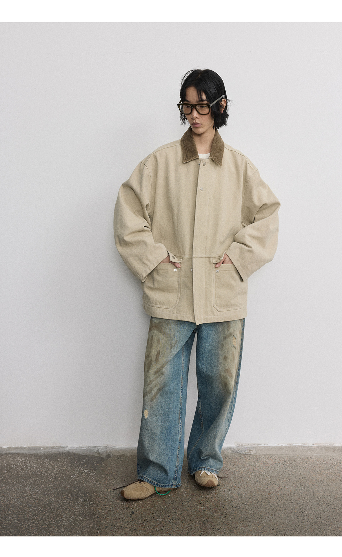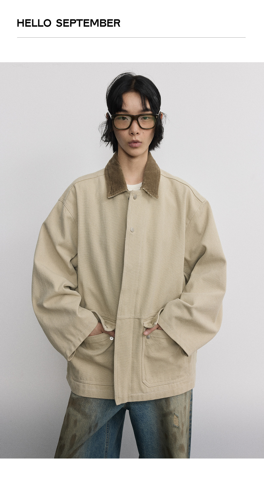 [시간 방문] 여성을 위한 새로운 코튼 클래식 튀김 소금 거친 작업복 대비 색상 충돌 루즈 재킷 V7565