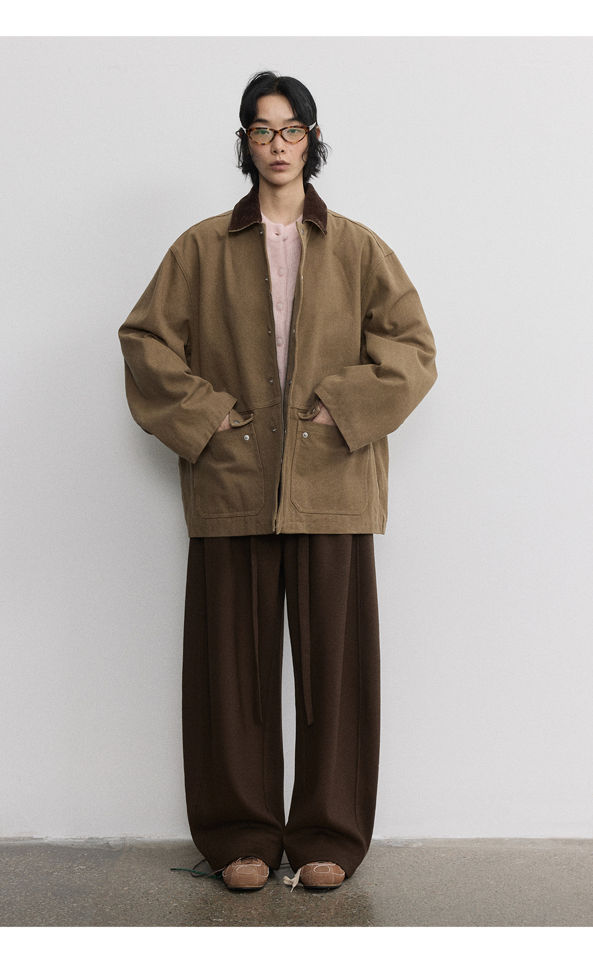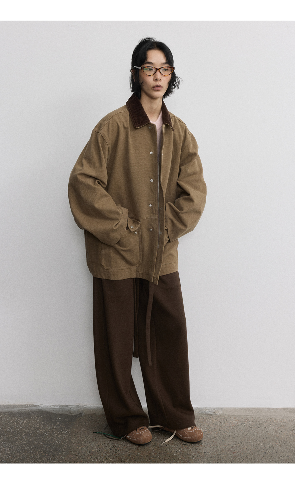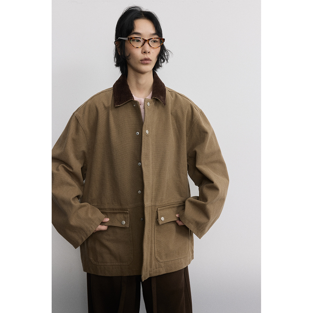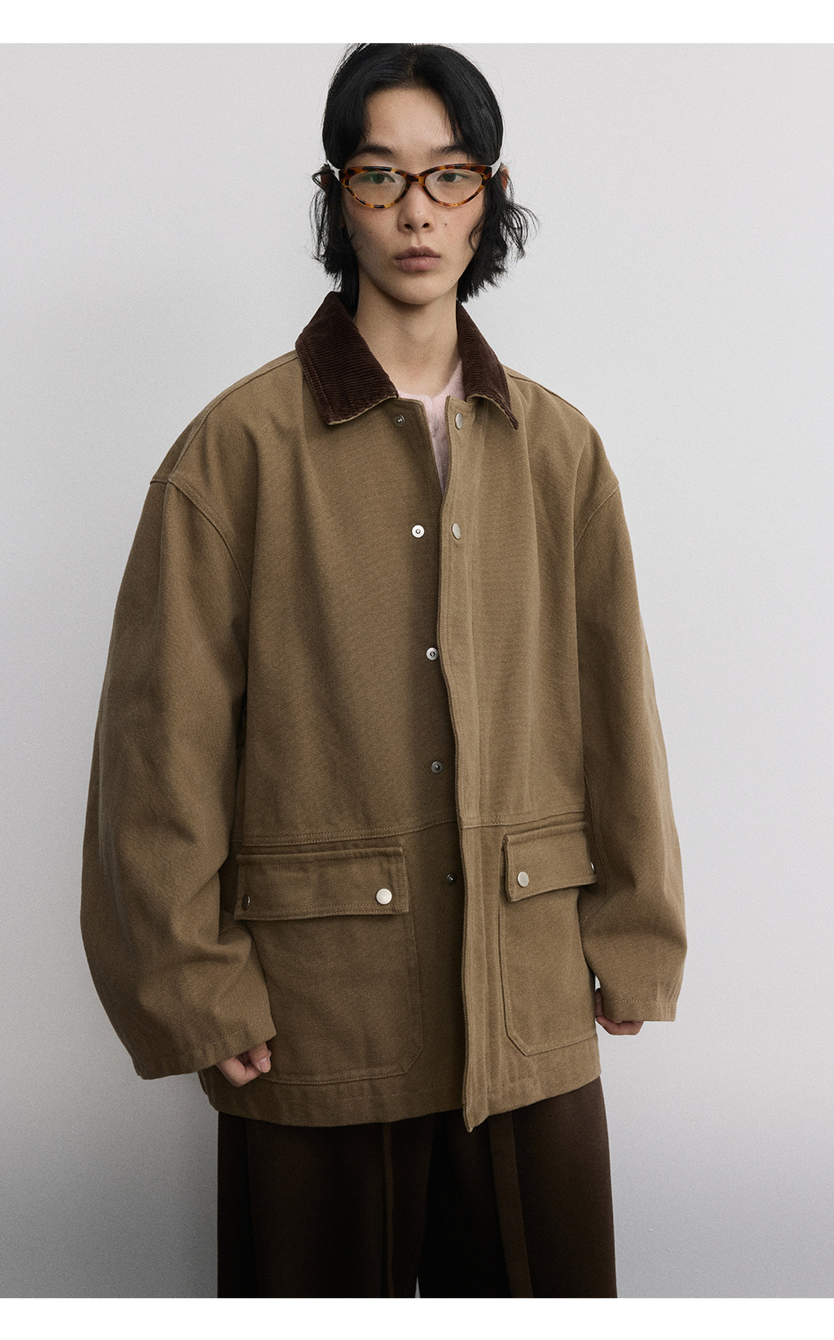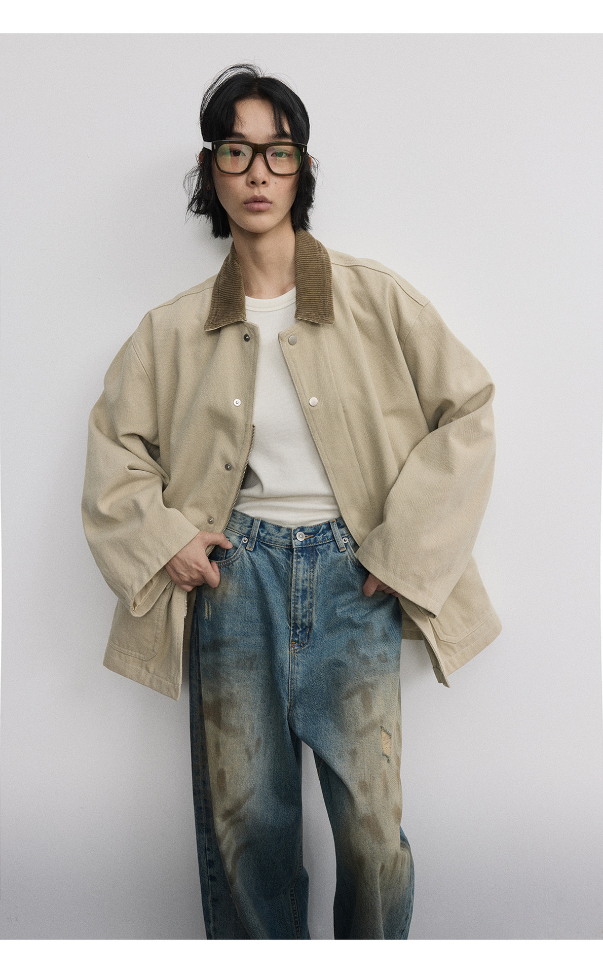 [시간 방문] 여성을 위한 새로운 코튼 클래식 튀김 소금 거친 작업복 대비 색상 충돌 루즈 재킷 V7565