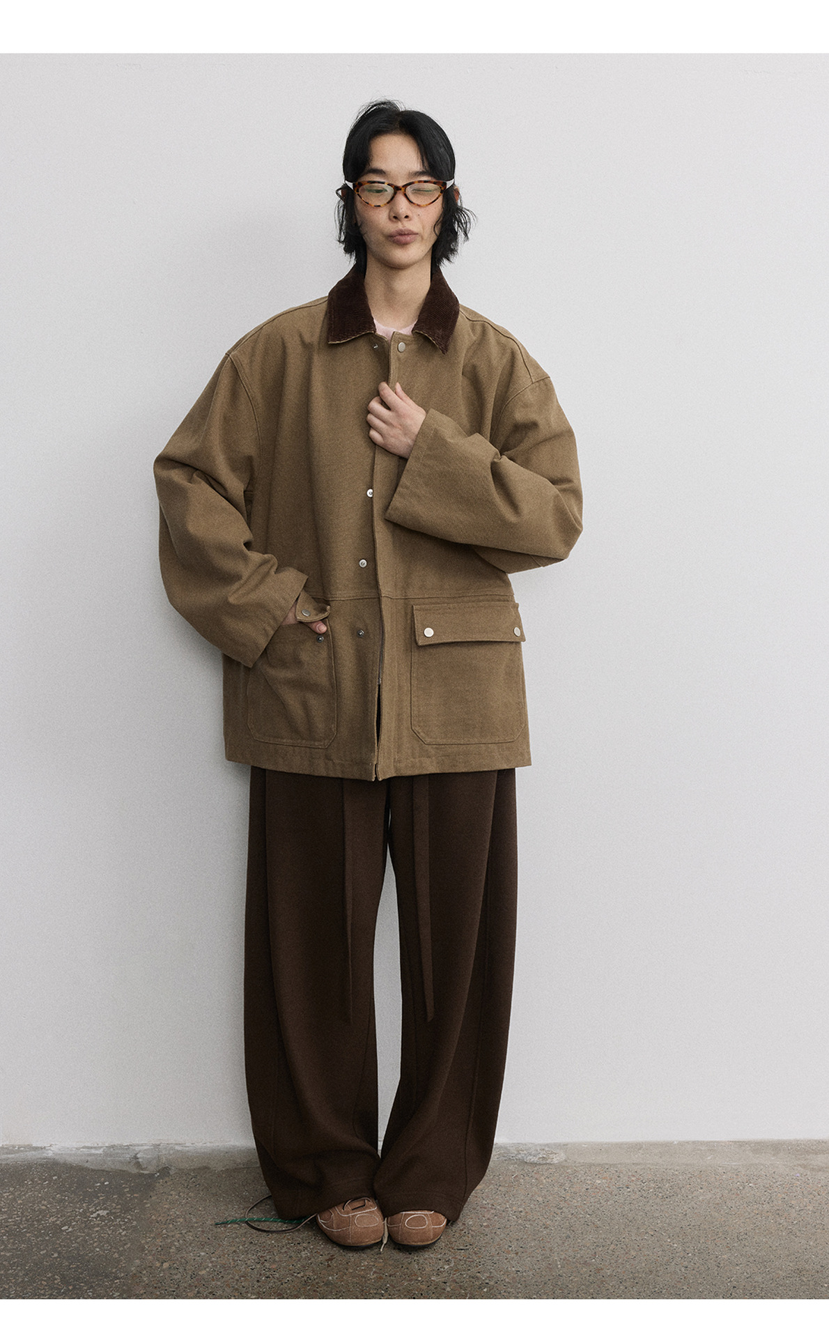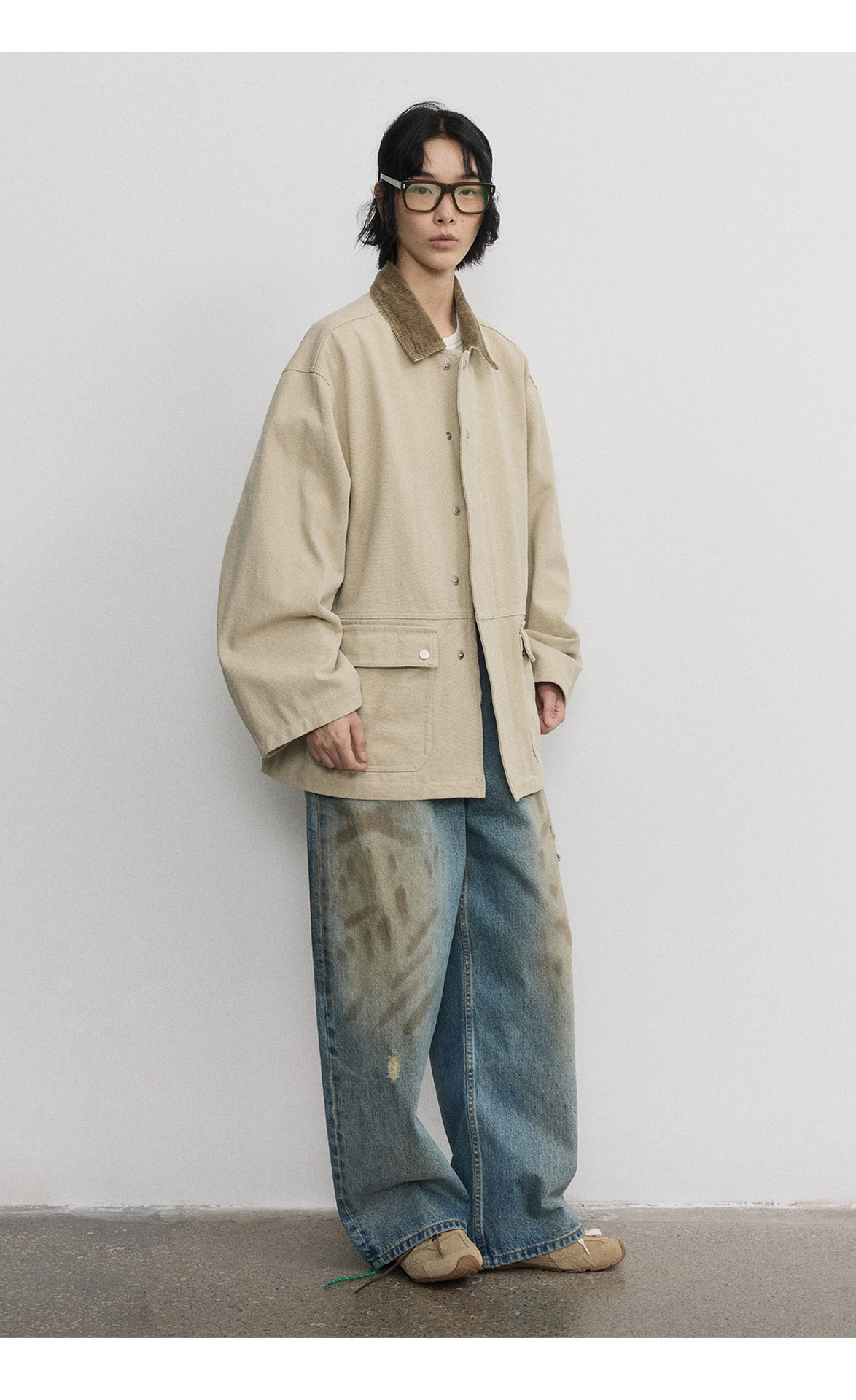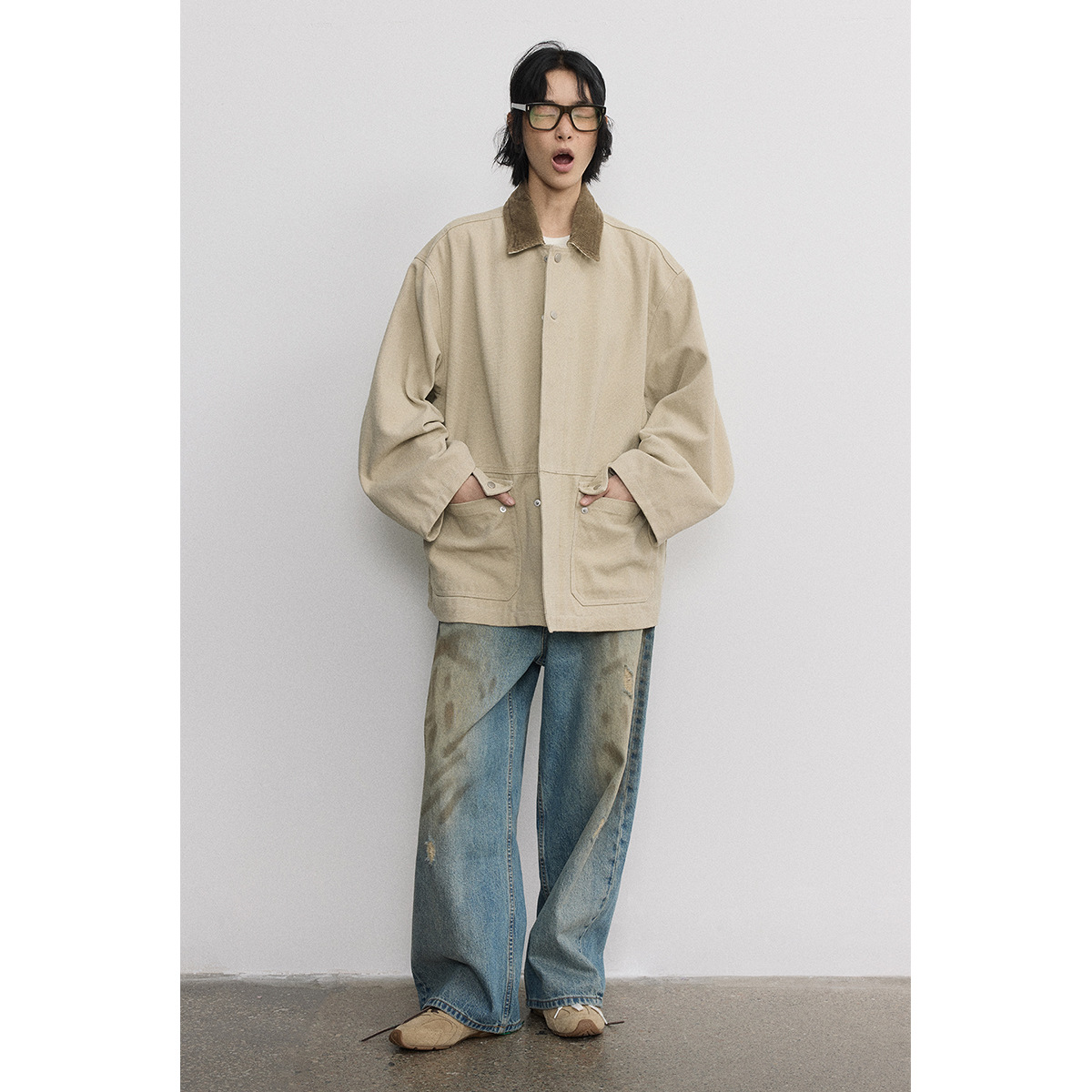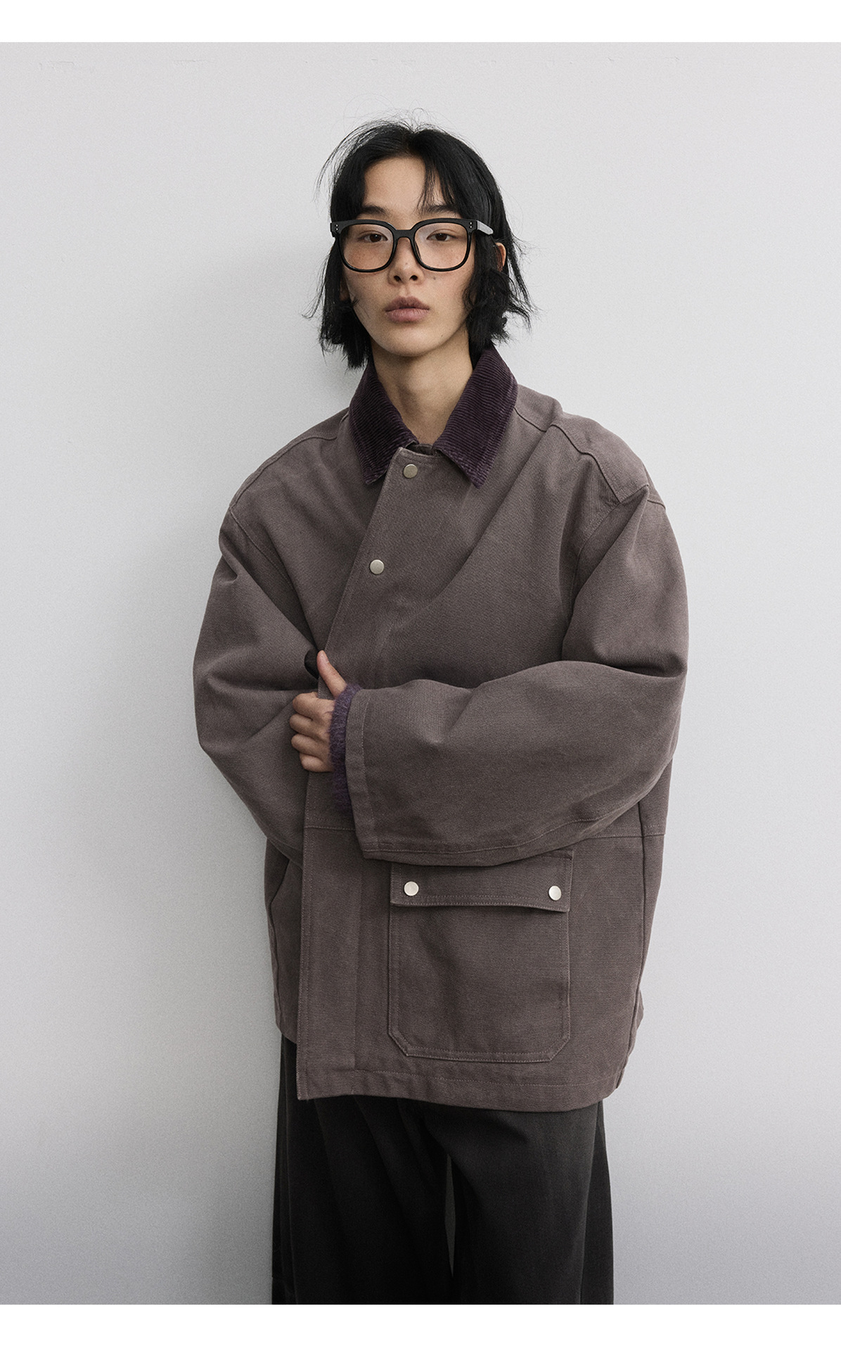 [시간 방문] 여성을 위한 새로운 코튼 클래식 튀김 소금 거친 작업복 대비 색상 충돌 루즈 재킷 V7565