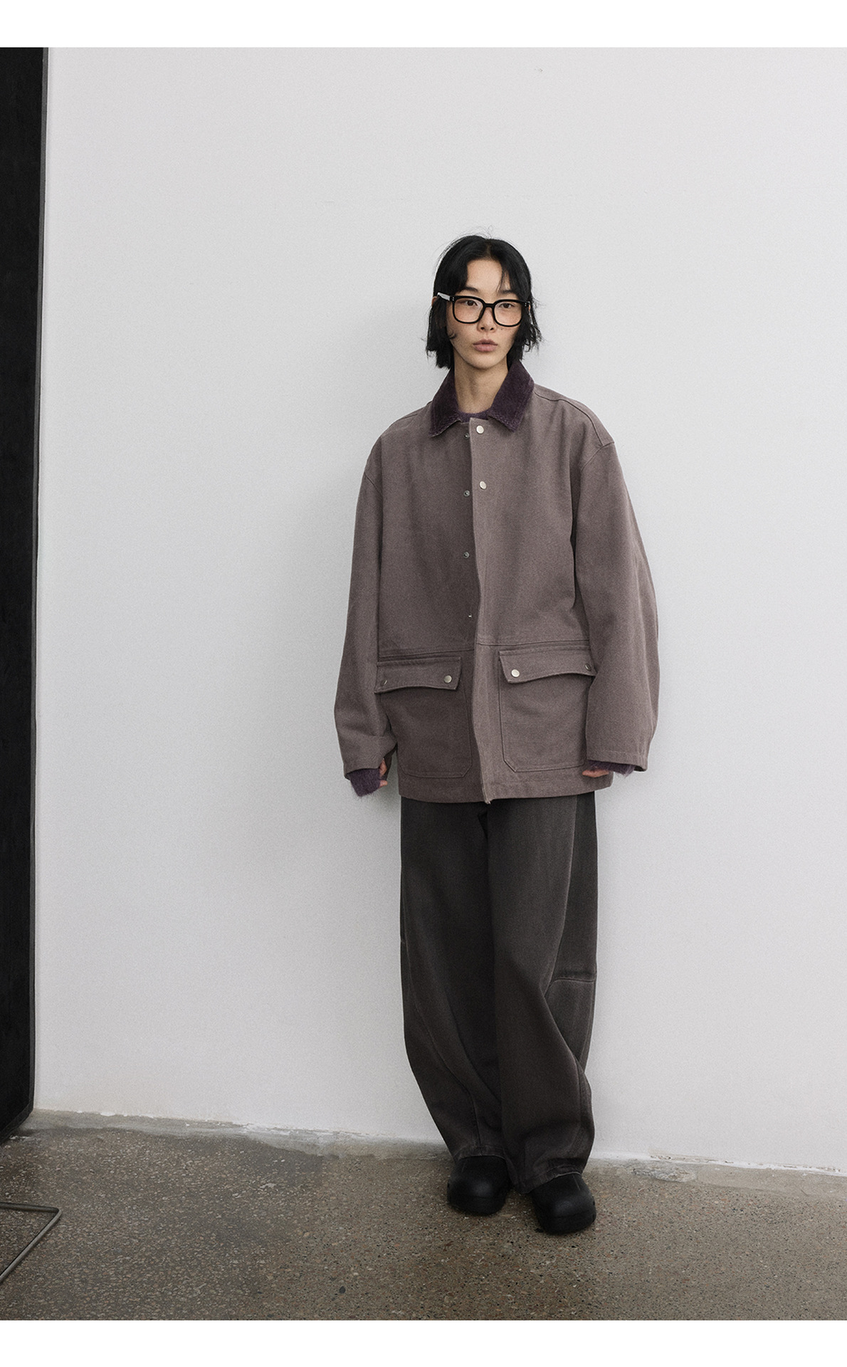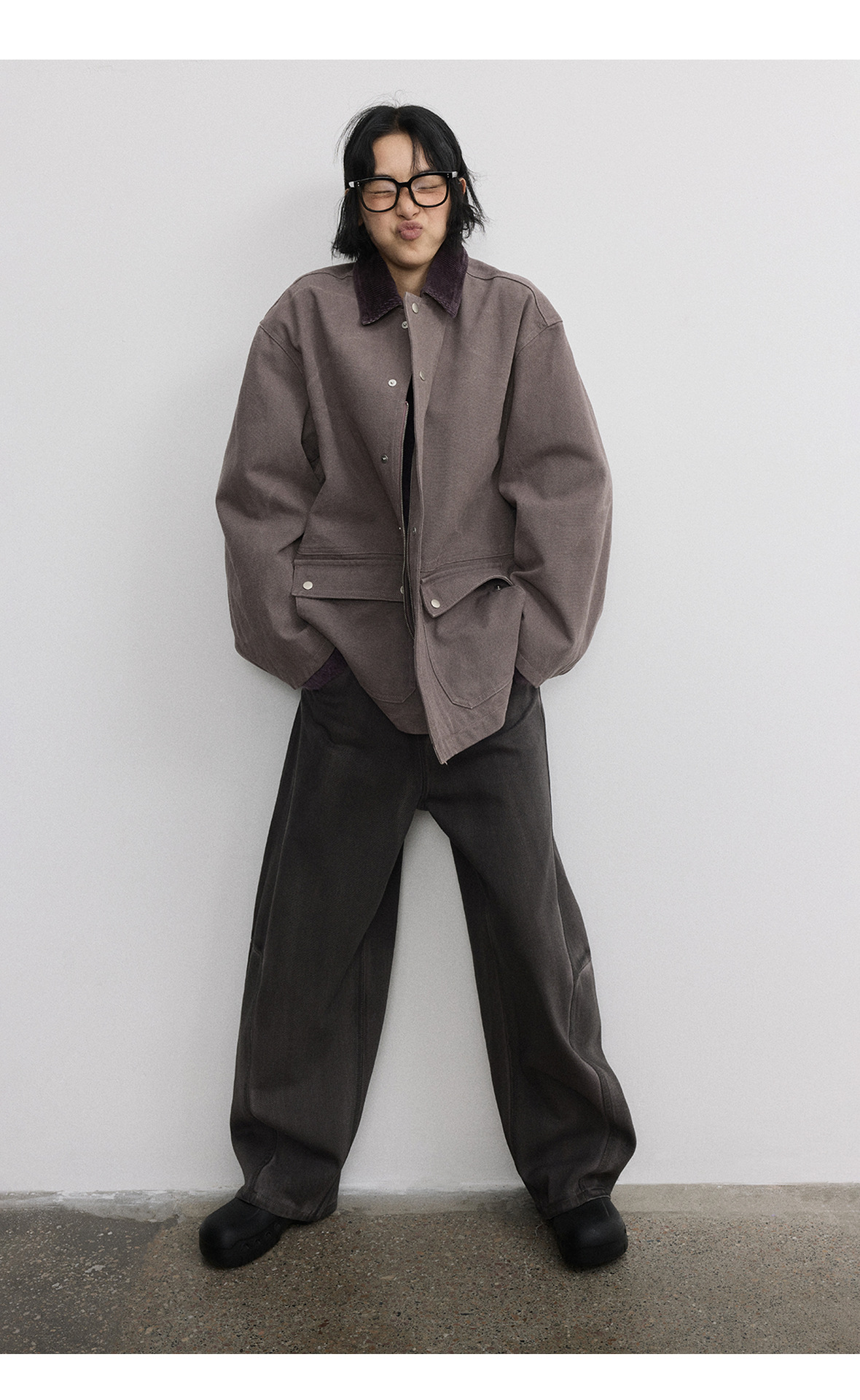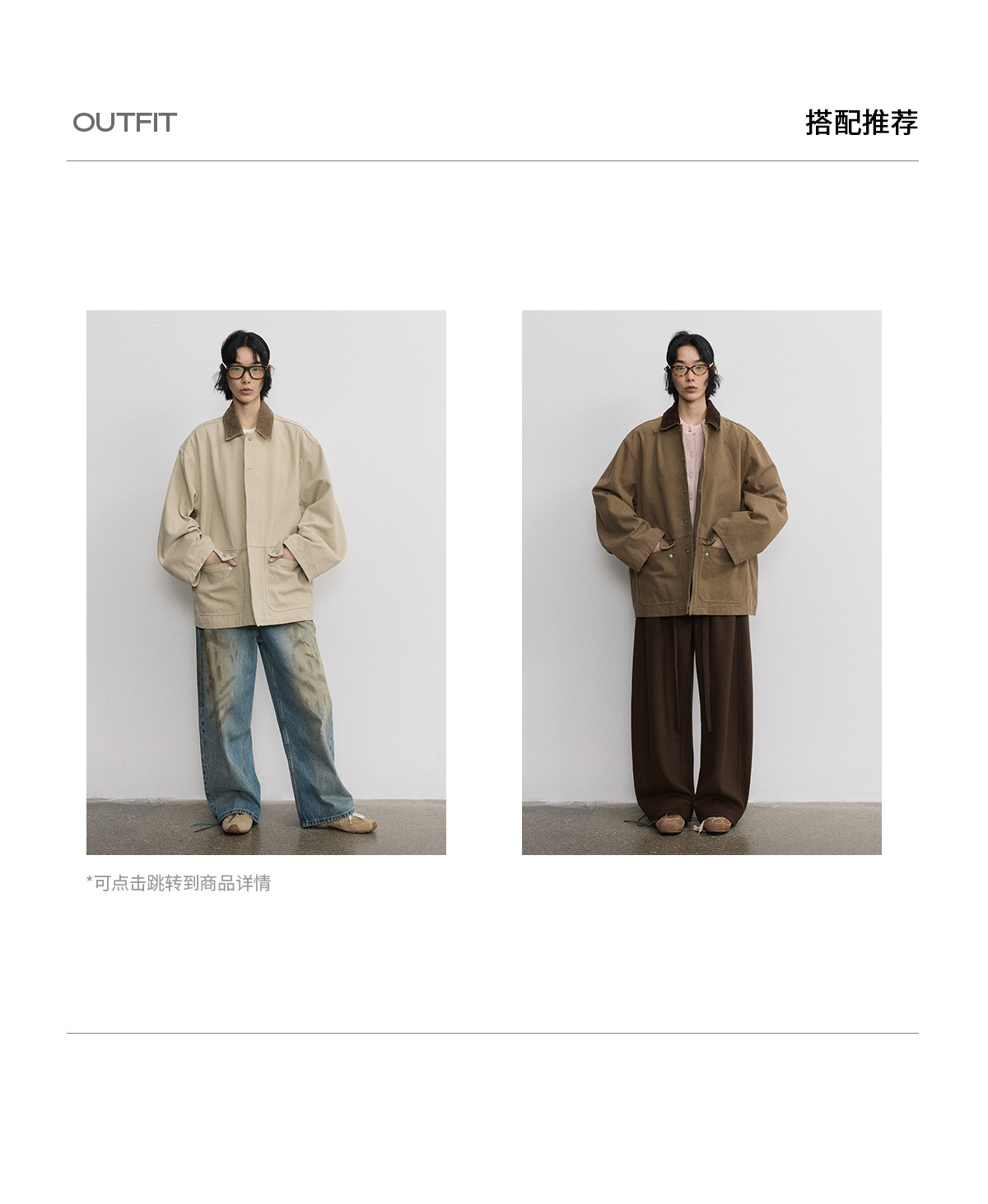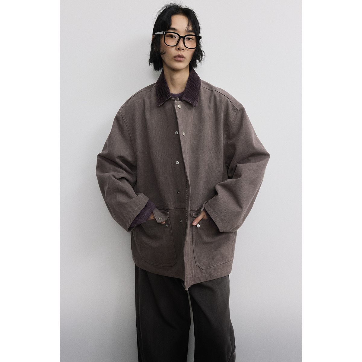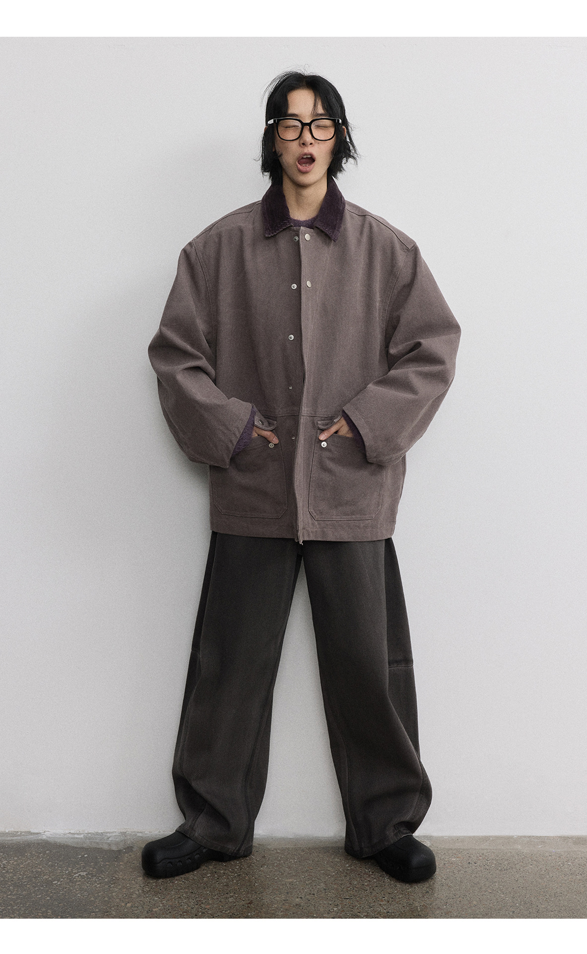 [시간 방문] 여성을 위한 새로운 코튼 클래식 튀김 소금 거친 작업복 대비 색상 충돌 루즈 재킷 V7565