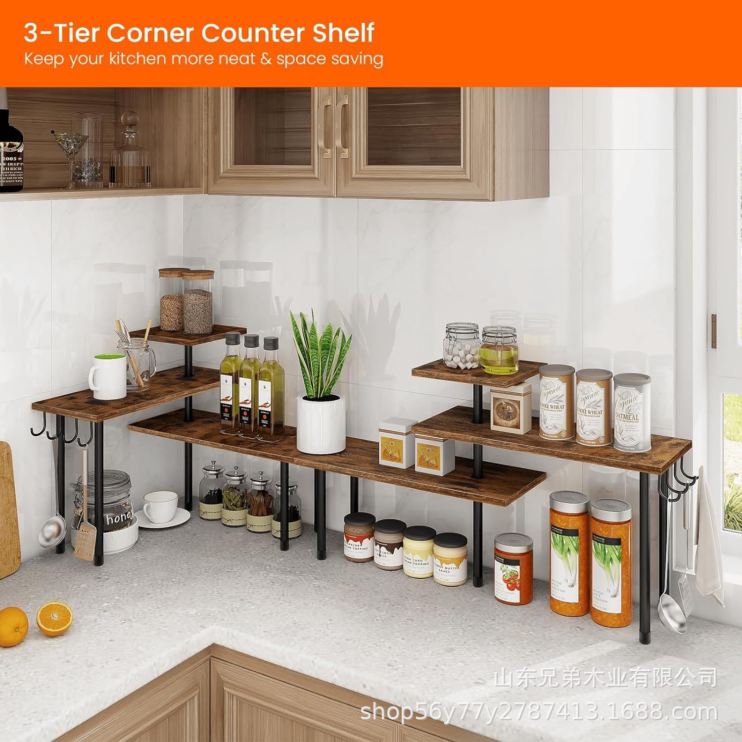 맞춤형 데스크탑 스토리지 랙 주방 코너 스토리지 목재 다층 조미료 랙 다기능 스토리지 일일 정리 랙