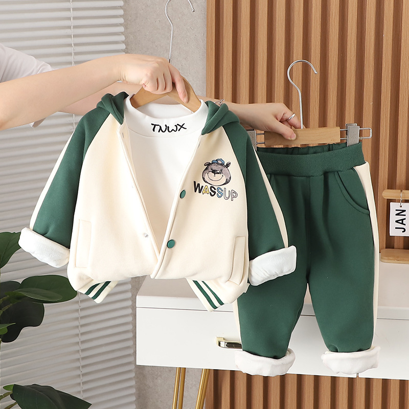 남학생의 겨울 의류 플러스 벨벳 세트 2024 년 새로운 서양식 어린이 가을과 겨울 두꺼운 3 피스 베이비 캐주얼 의류스토어 가기