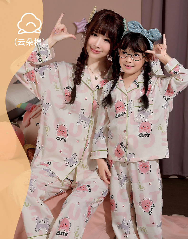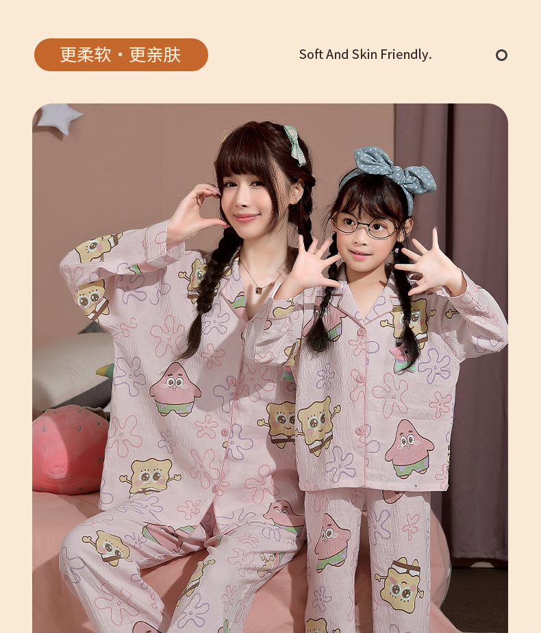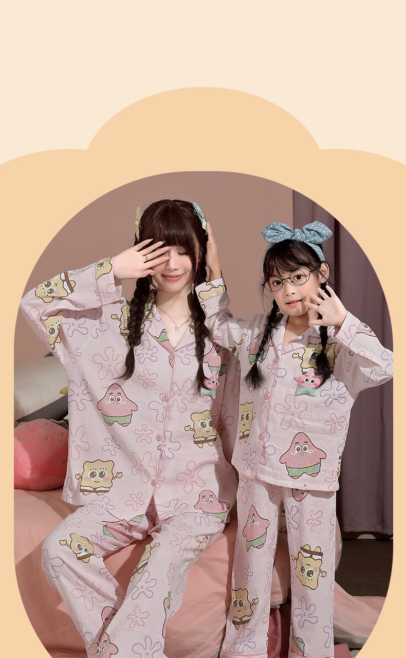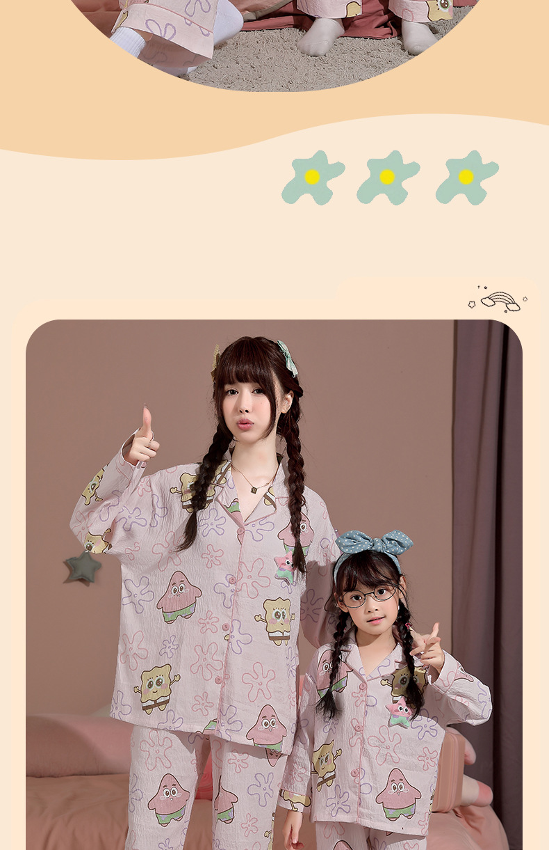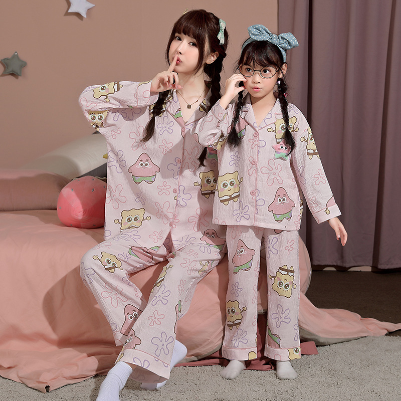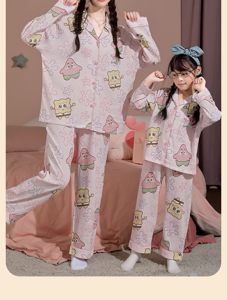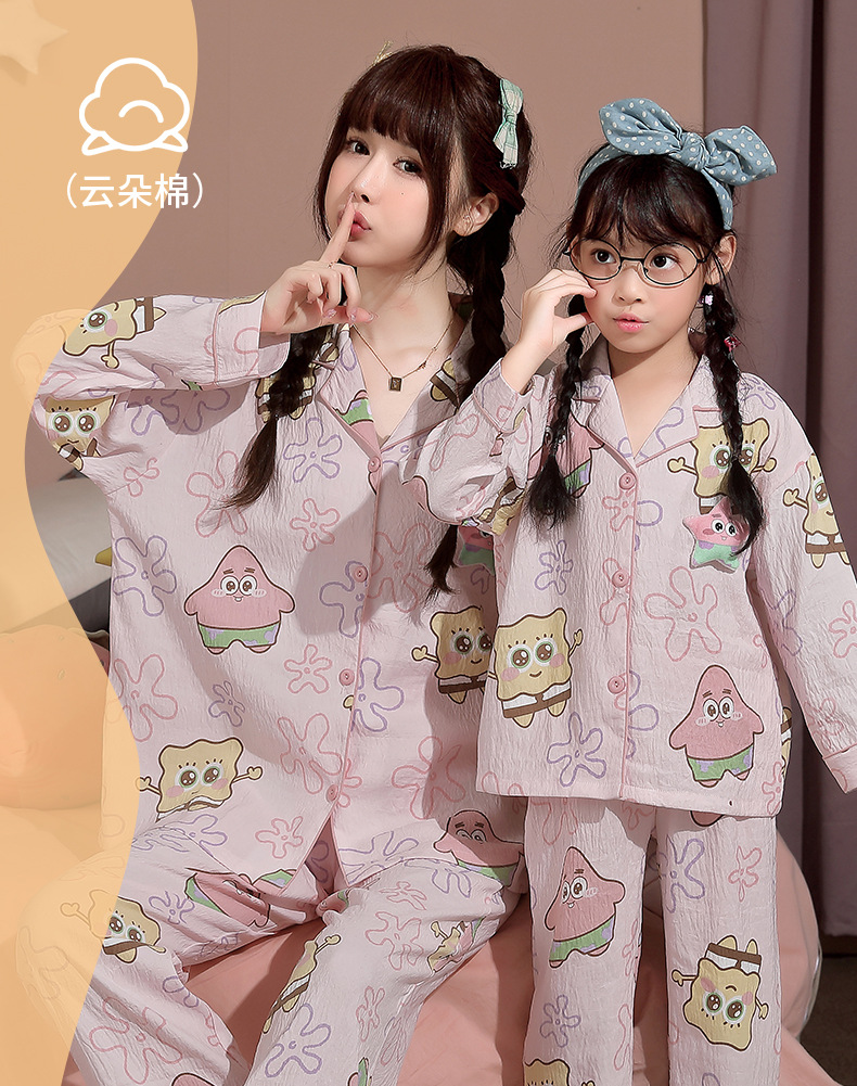 엄마와 딸 잠옷 봄과 가을 새로운 구름면 긴 소매 어린이와 소녀 만화 스폰지 밥 중형 및 대형 어린이 가정 옷스토어 가기