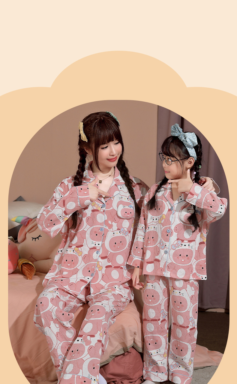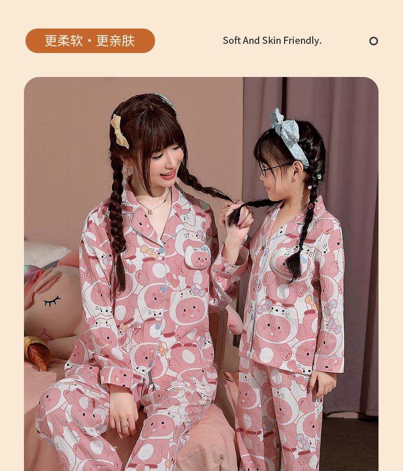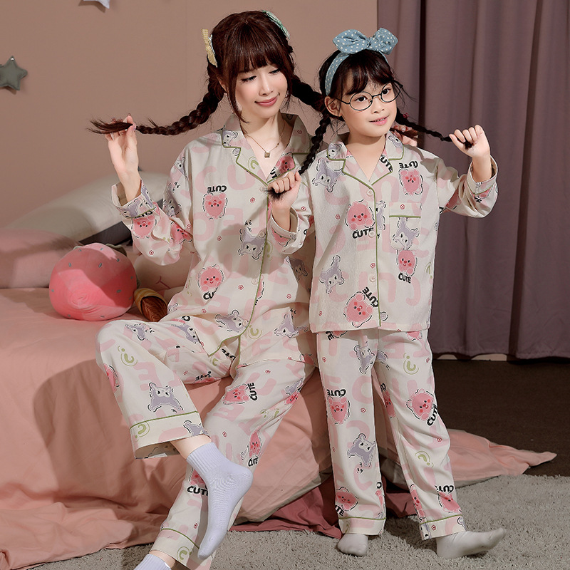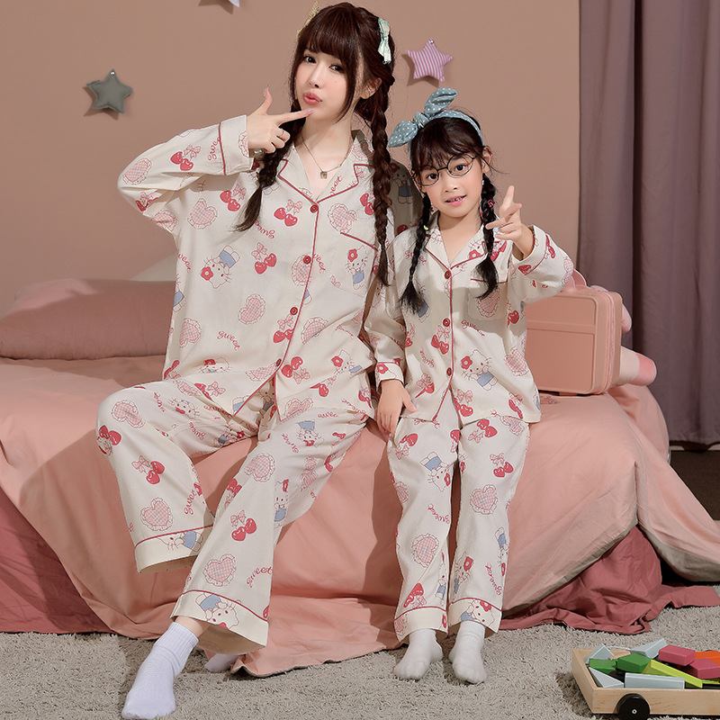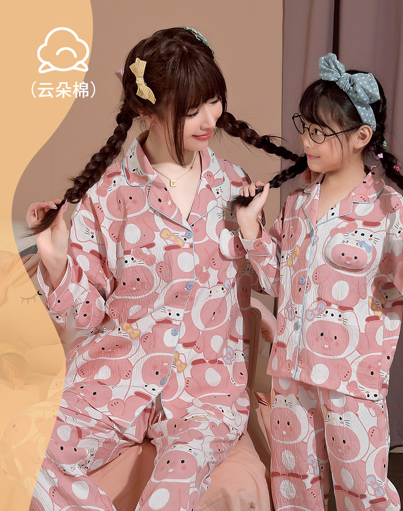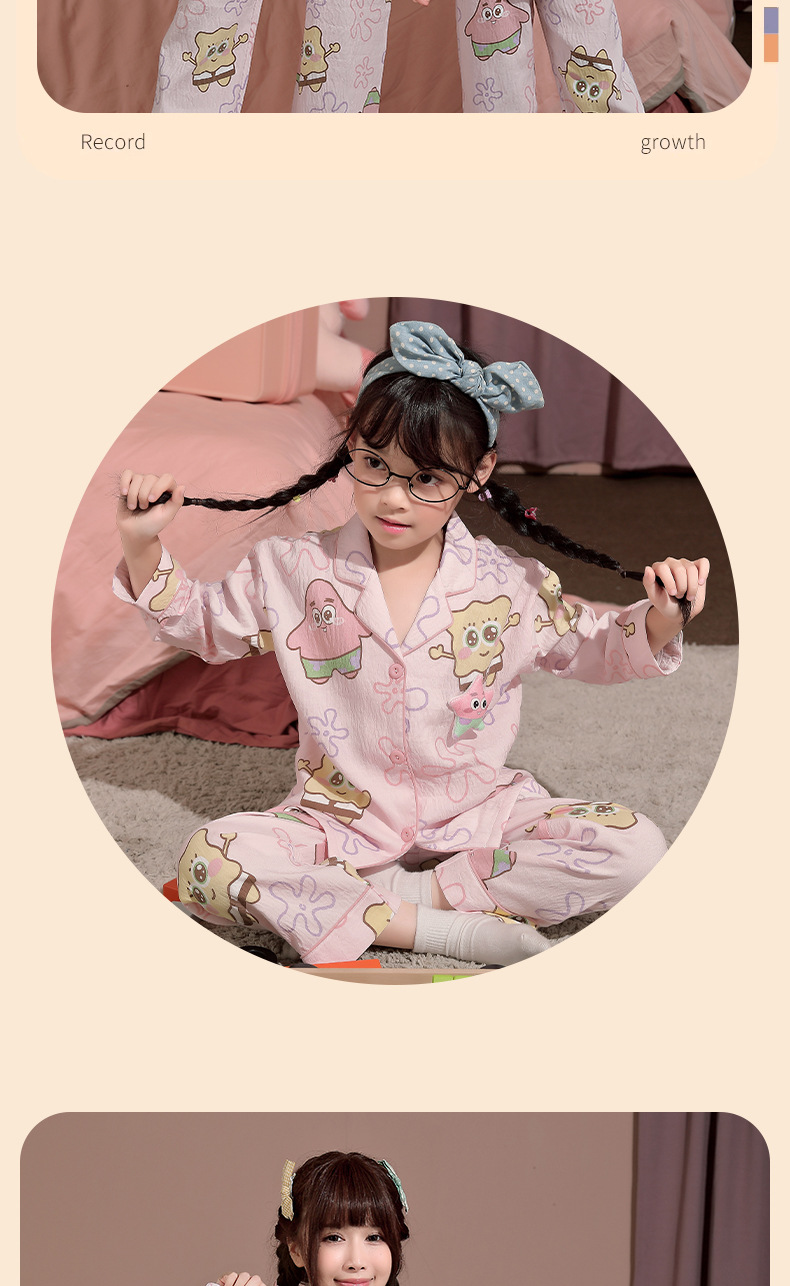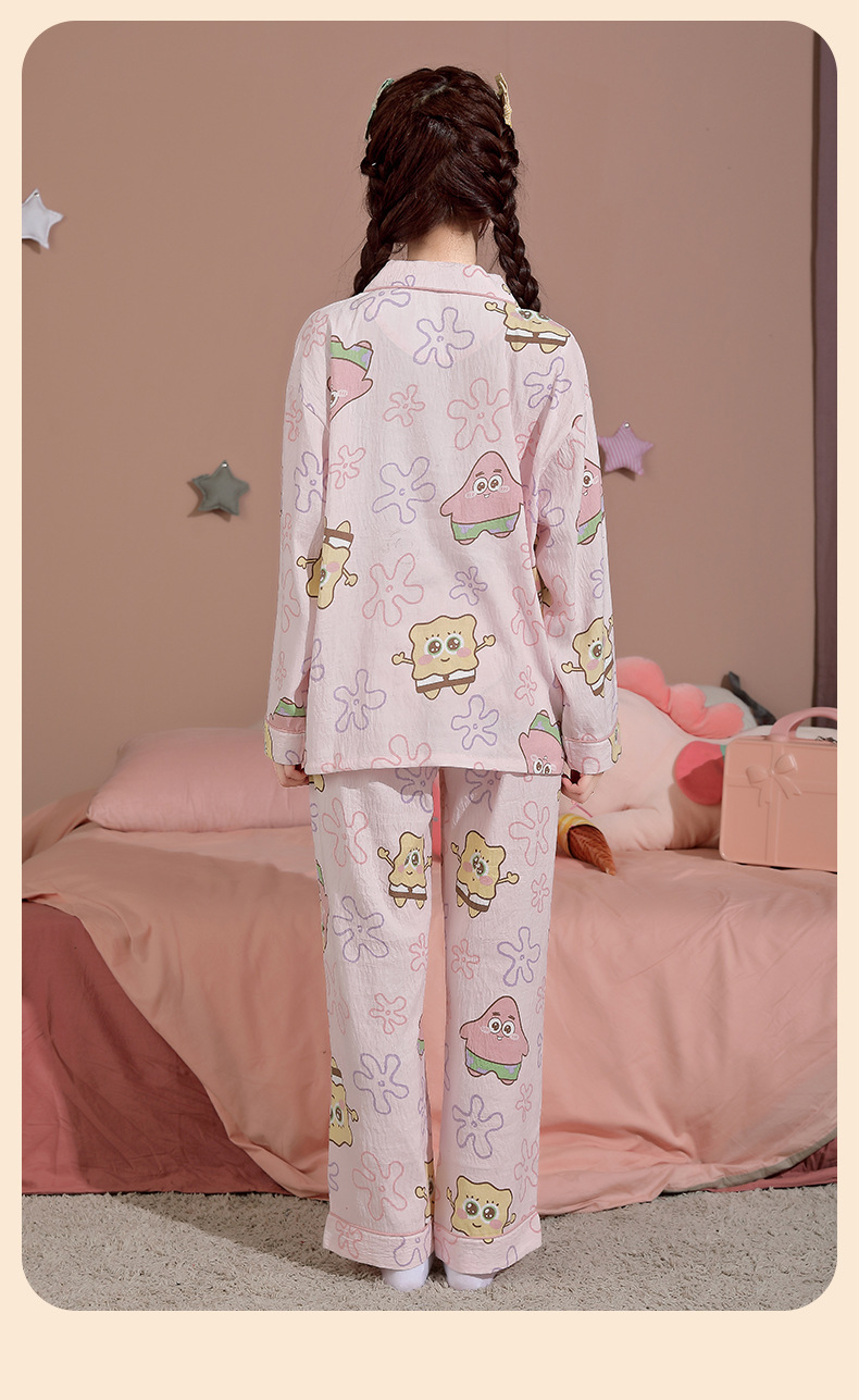 엄마와 딸 잠옷 봄과 가을 새로운 구름면 긴 소매 어린이와 소녀 만화 스폰지 밥 중형 및 대형 어린이 가정 옷스토어 가기
