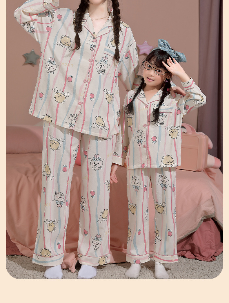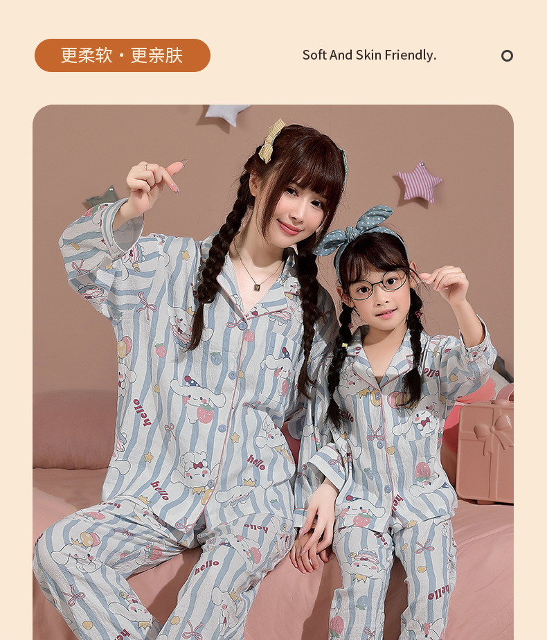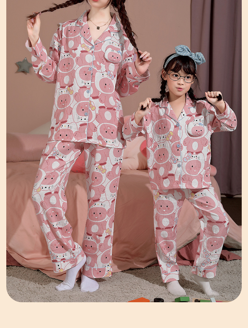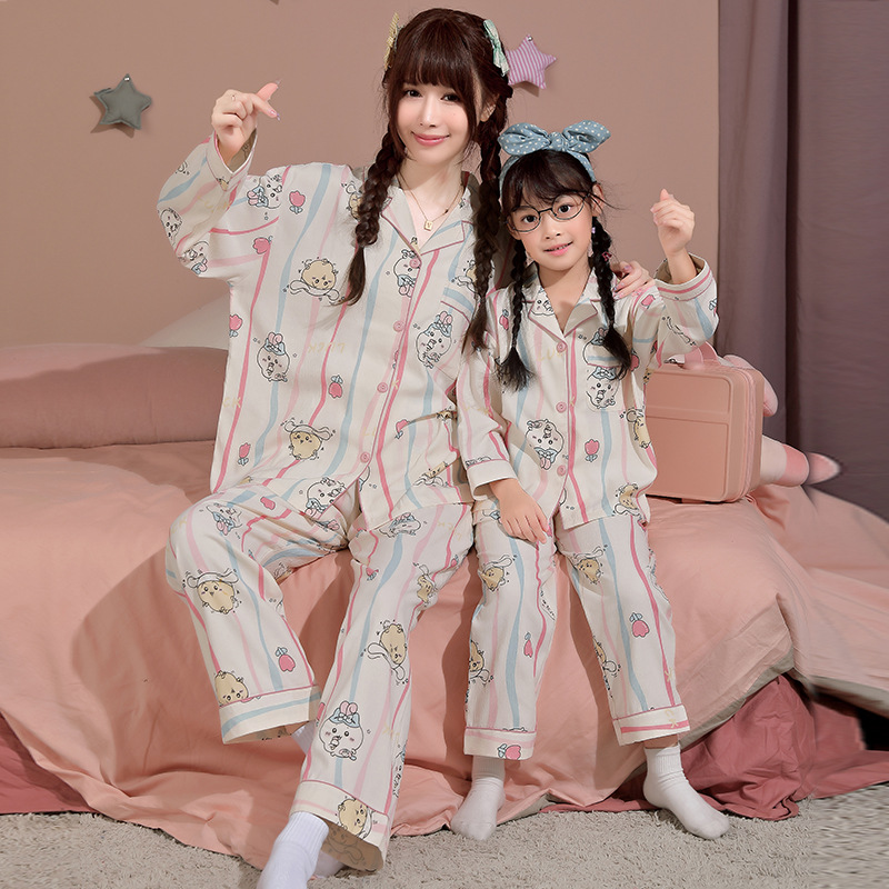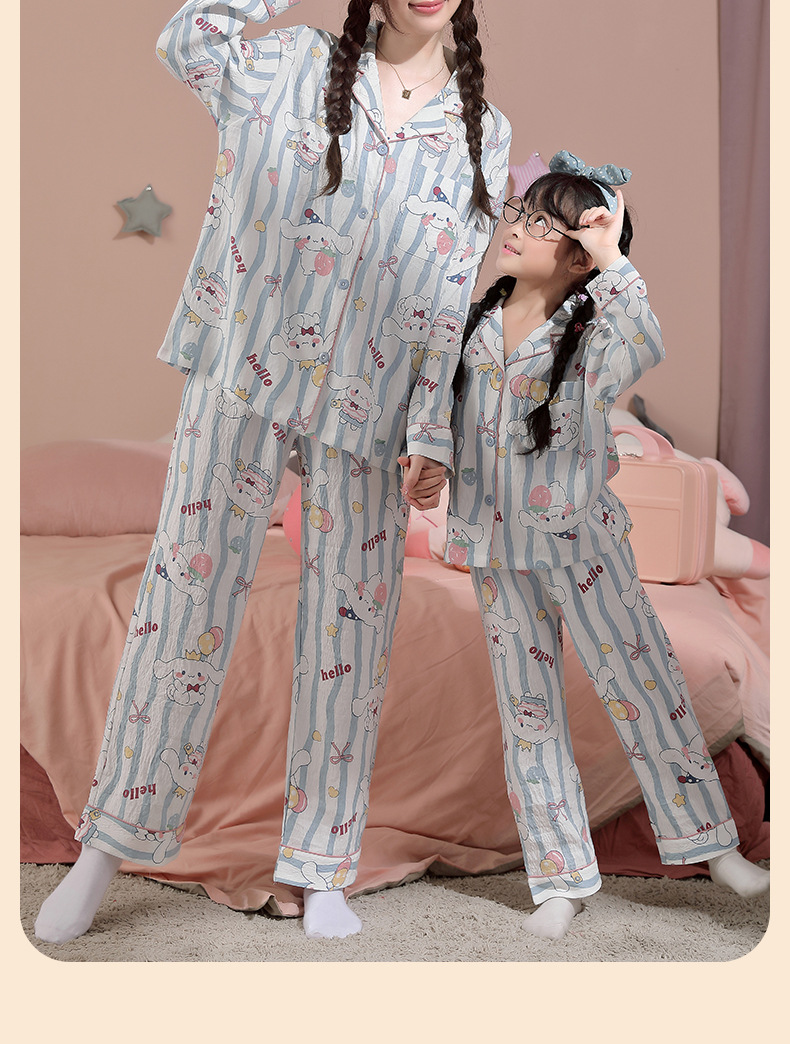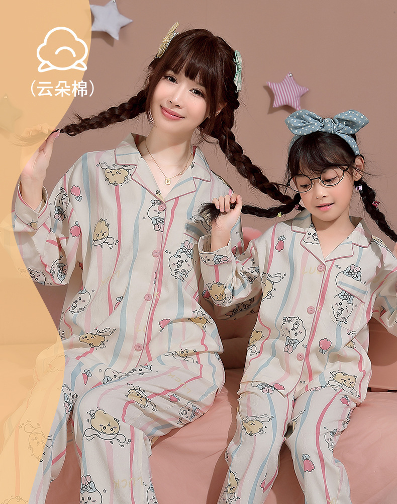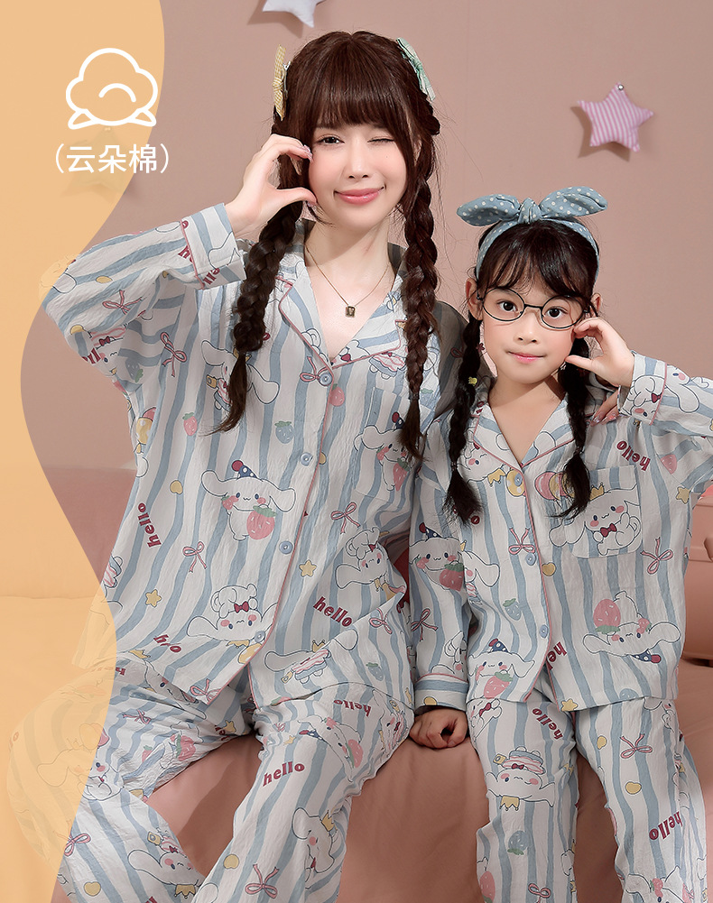 엄마와 딸 잠옷 봄과 가을 새로운 구름면 긴 소매 어린이와 소녀 만화 스폰지 밥 중형 및 대형 어린이 가정 옷