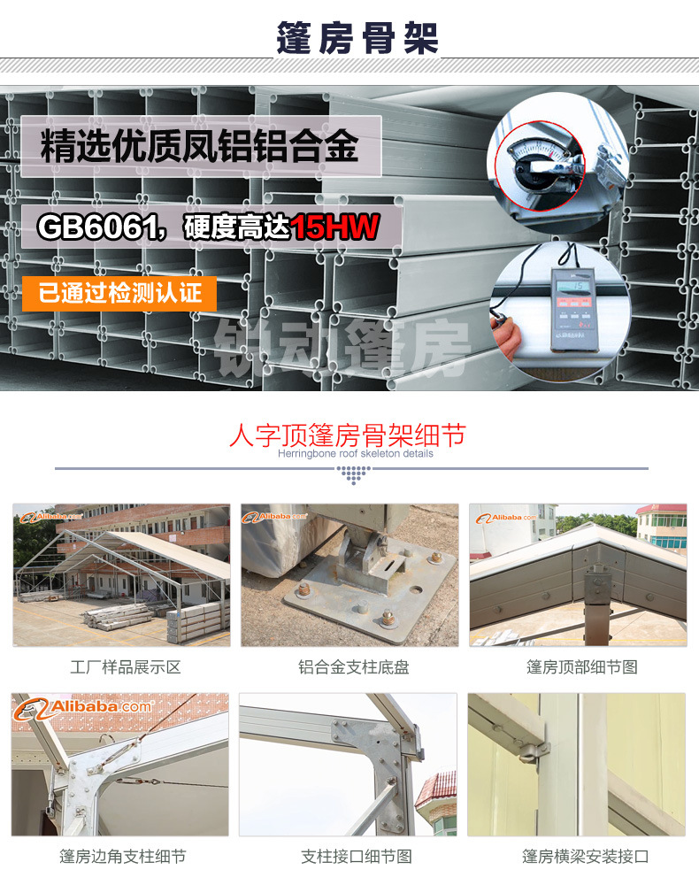 铝合金活动帐篷是一款集实用性与灵活性于一体的临时空间解决方案,以高强度铝合金为主要框架材质,兼具轻盈特性与稳固结构。其骨架经精密设计,抗风抗压性能优异,可抵御多种复杂天气条件,确保使用安全。