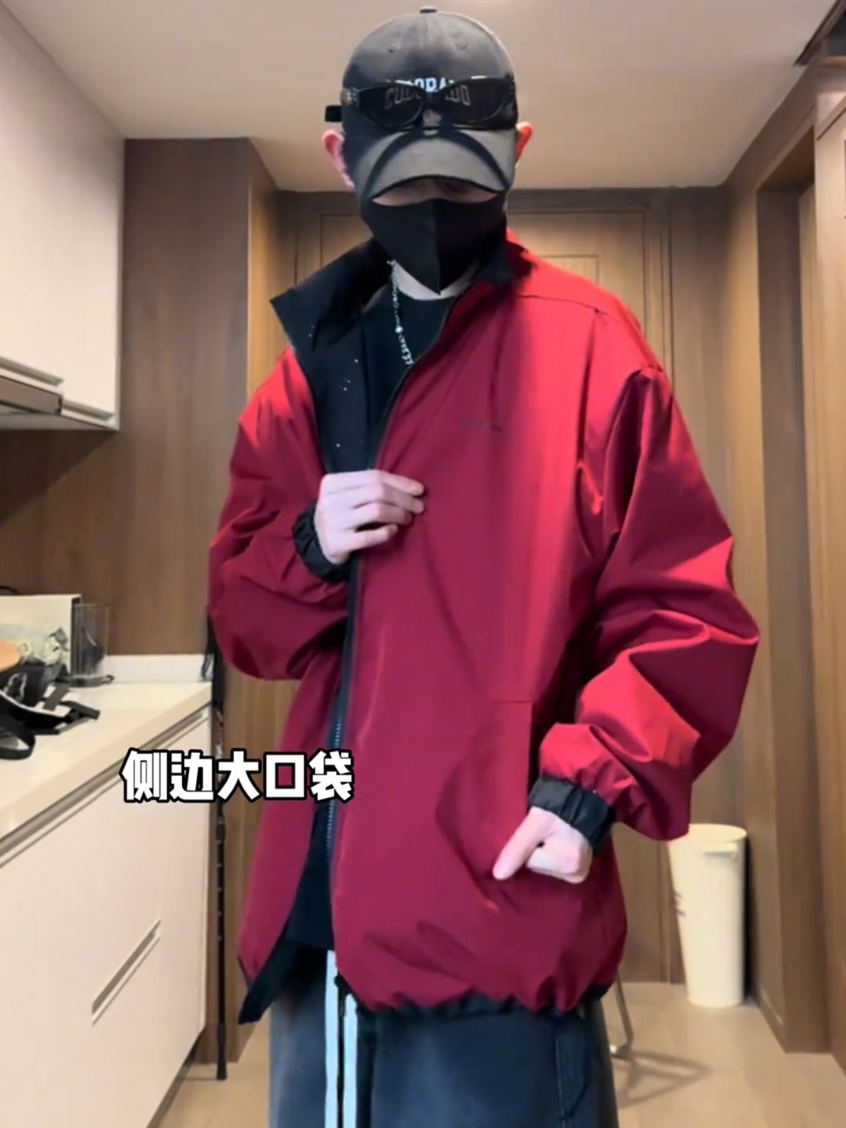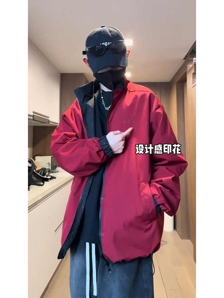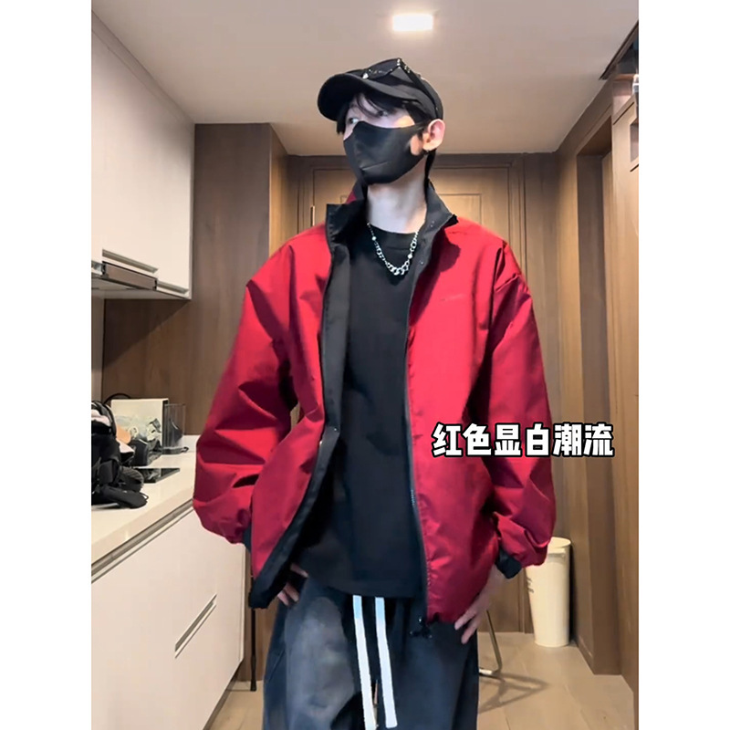 검은 색과 빨간색 대비 색상 긍정적이고 역 착용 재킷 남자의 트렌디 한 하이 엔드 센스 터피드 핸섬 봄과 가을 스포츠 재킷 미국 야구 세트
