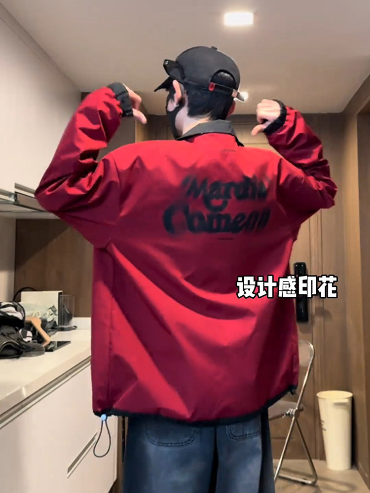 검은 색과 빨간색 대비 색상 긍정적이고 역 착용 재킷 남자의 트렌디 한 하이 엔드 센스 터피드 핸섬 봄과 가을 스포츠 재킷 미국 야구 세트스토어 가기