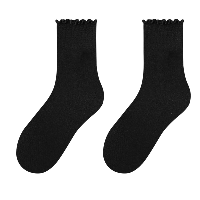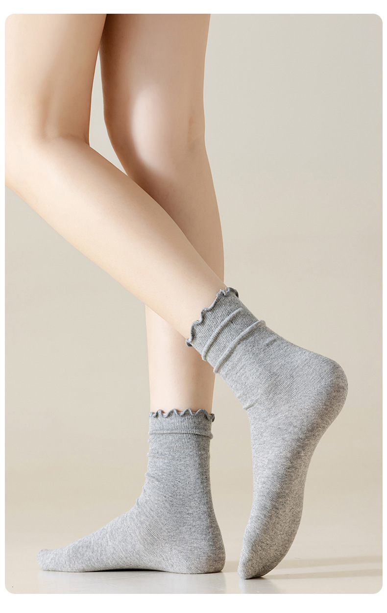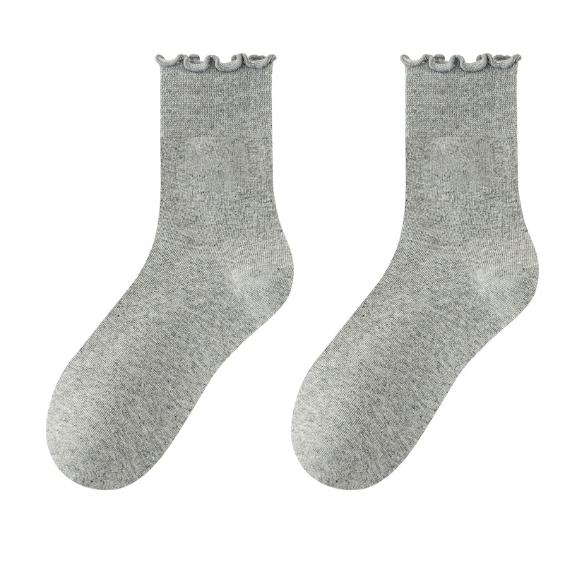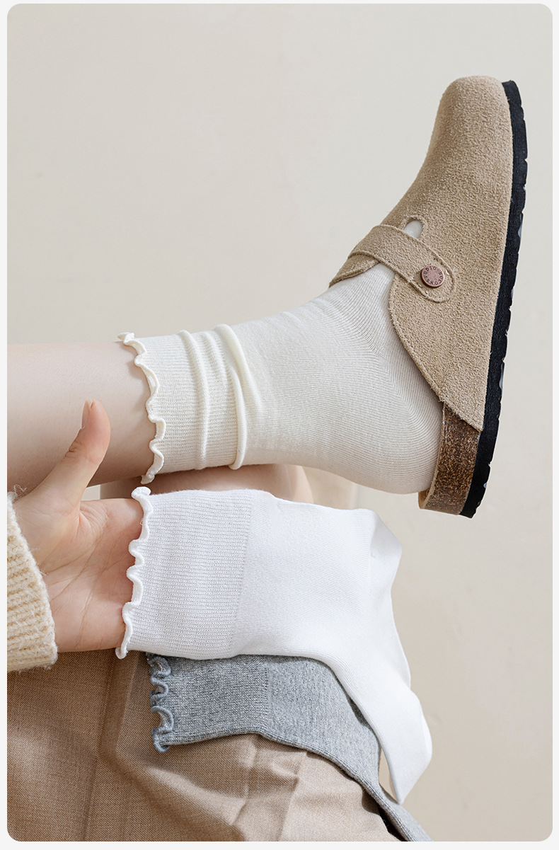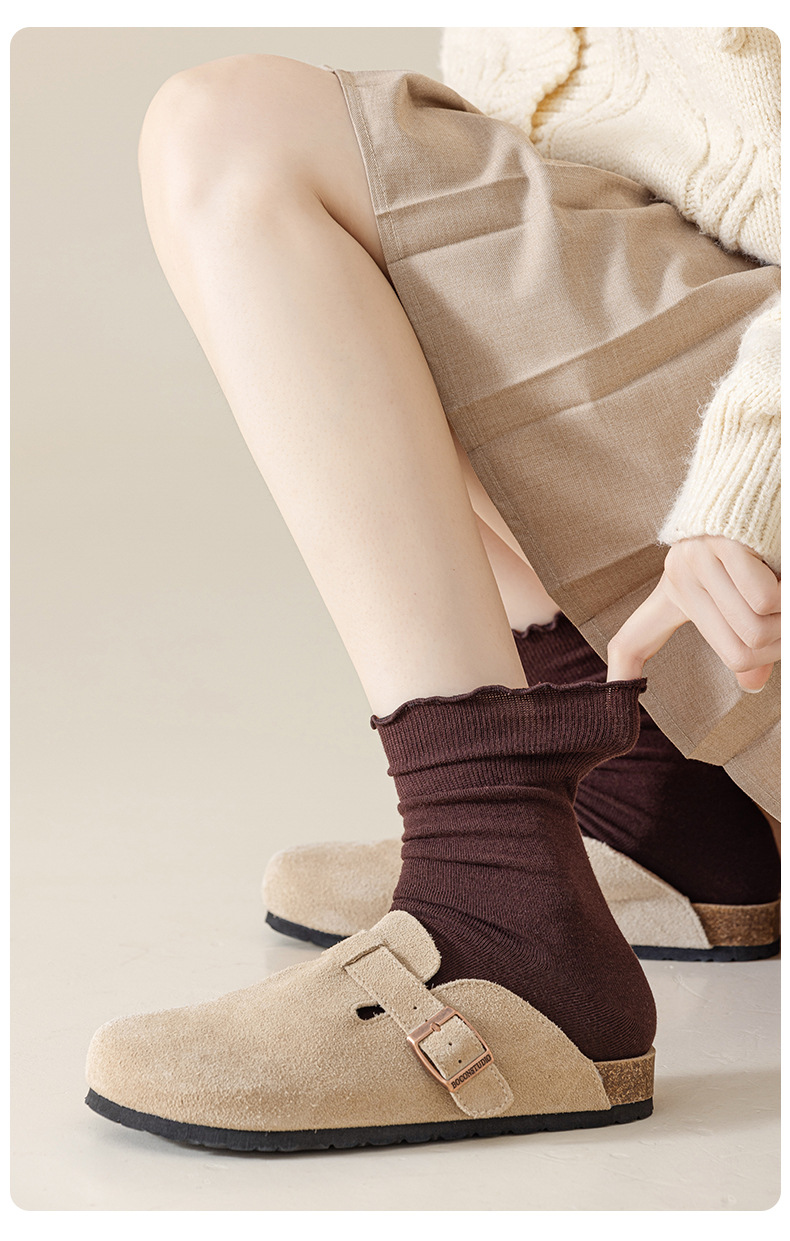 Curled Piled Socks 여성용 퓨어 코튼 본리스 스타킹 봄과 가을 올 매치 솔리드 컬러 버켄 스톡 슈즈 미드 길이 양말
