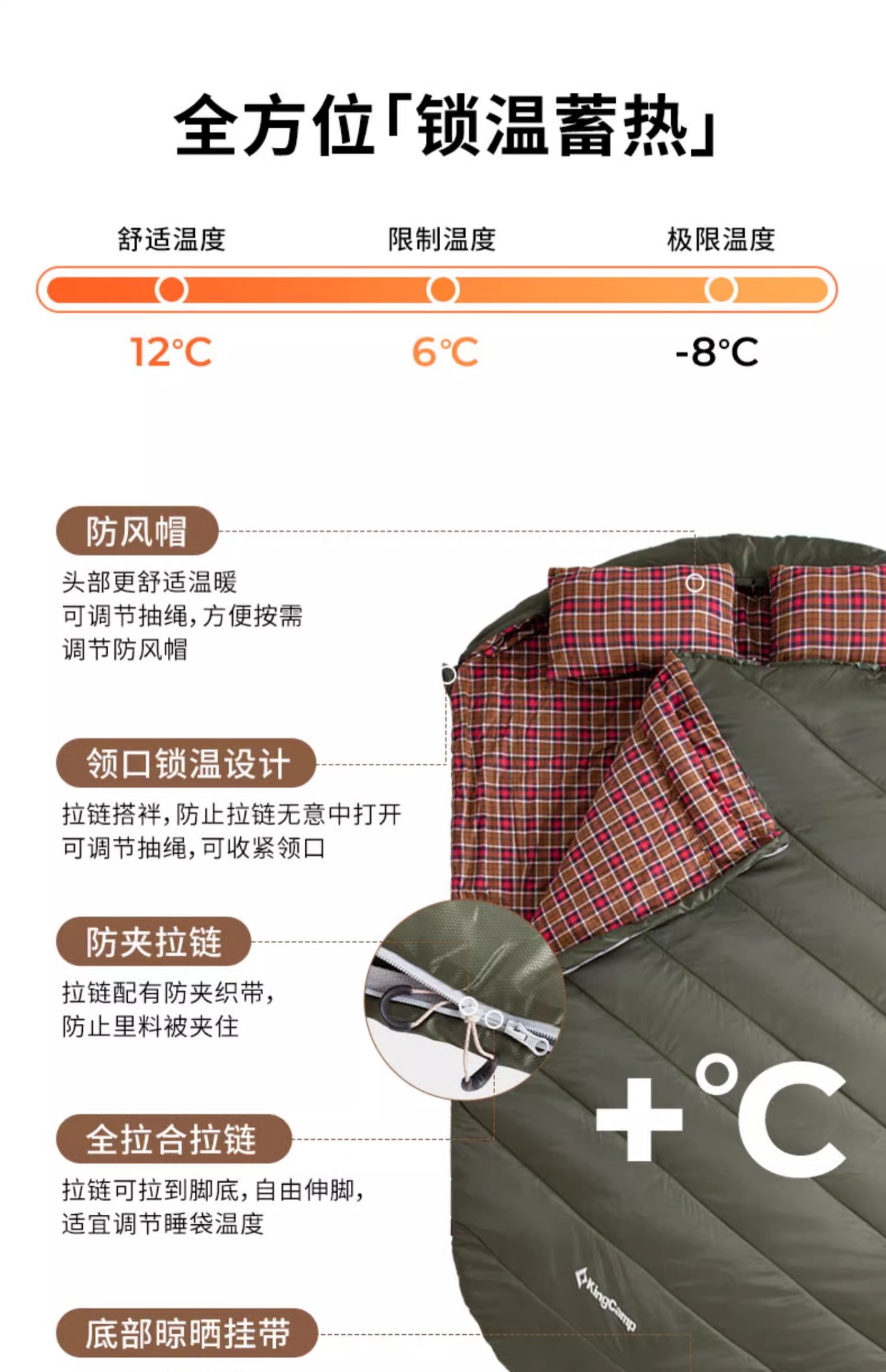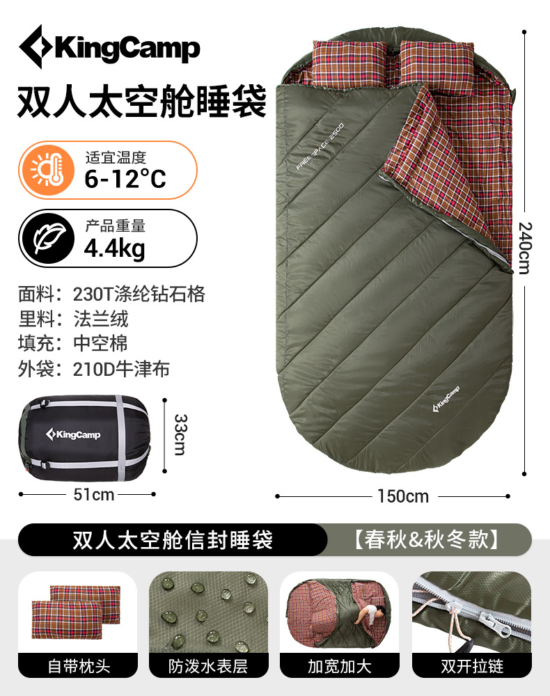 KingCamp 야외 슬리핑 백 성인 캠핑 두꺼운 한랭 방지 따뜻한 헤어 코튼 겨울 더티 방지 수분 방지 증가스토어 가기