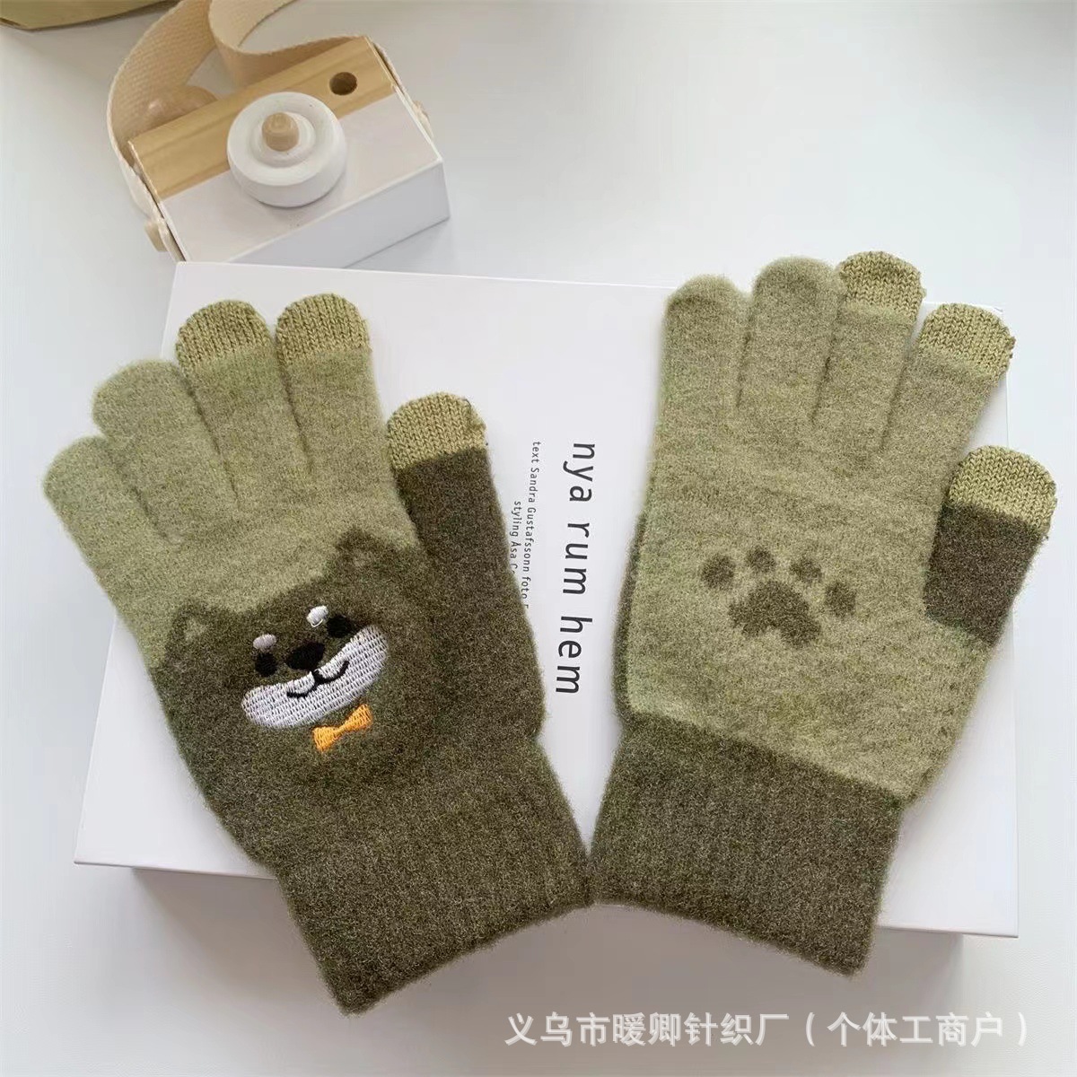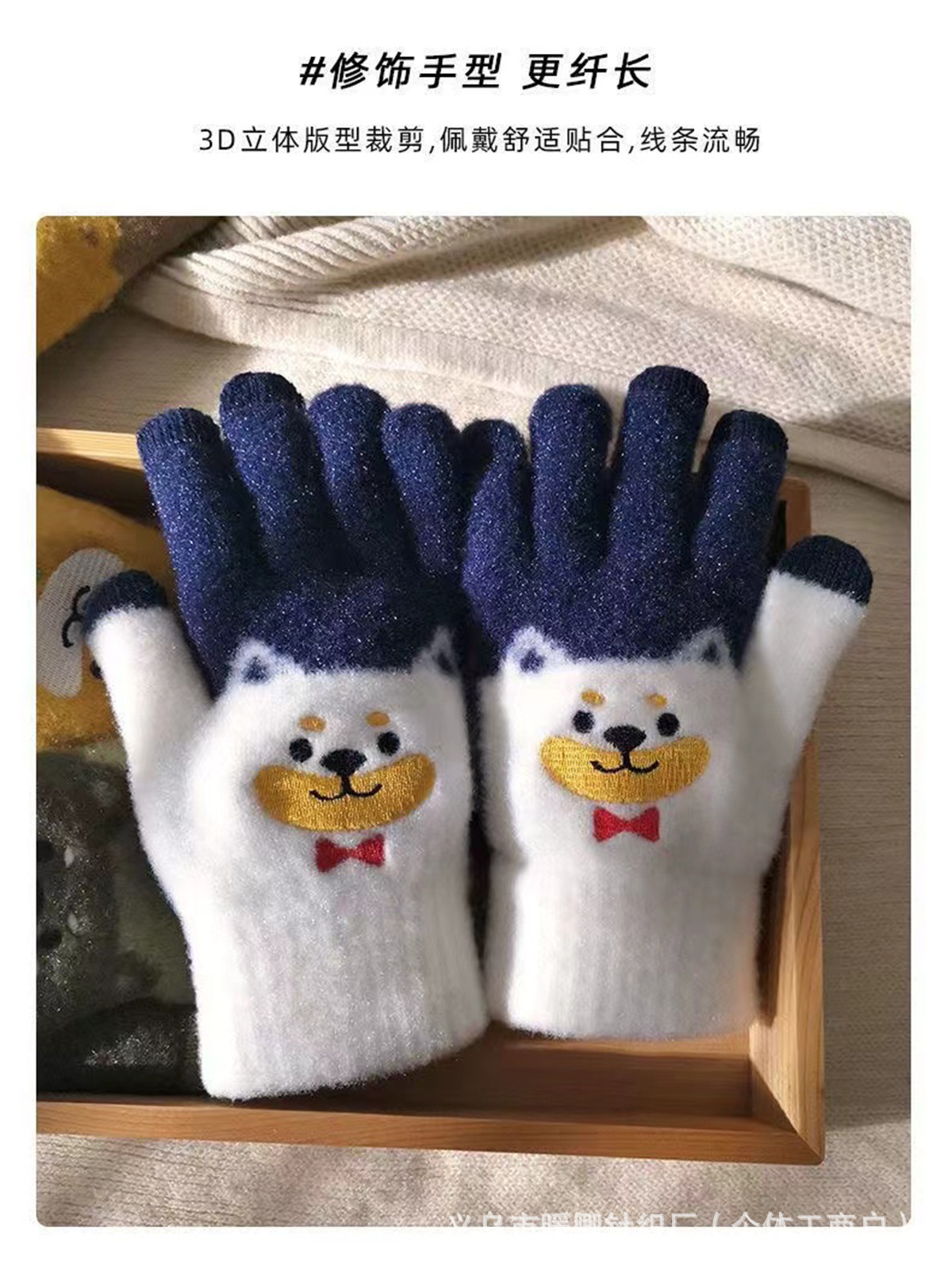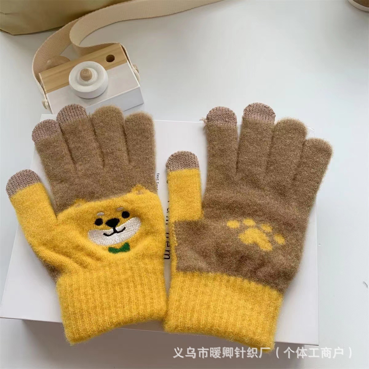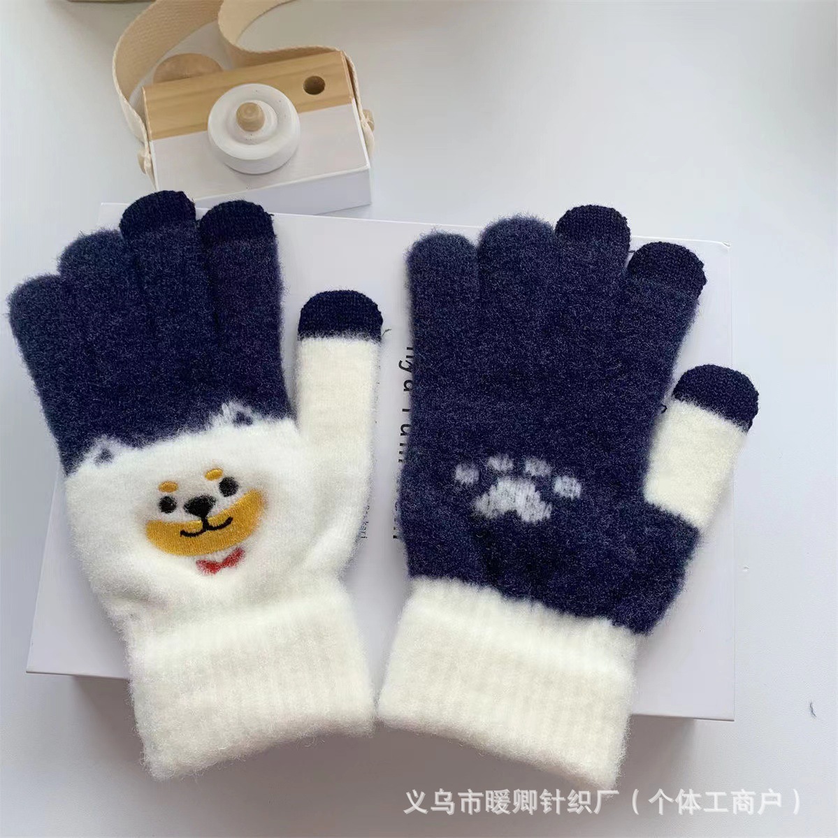 새로운 대형 어린이 장갑 니트 귀여운 강아지 자수 겨울 따뜻한 봉제 터치 스크린 두꺼운 가을과 겨울 장갑스토어 가기
