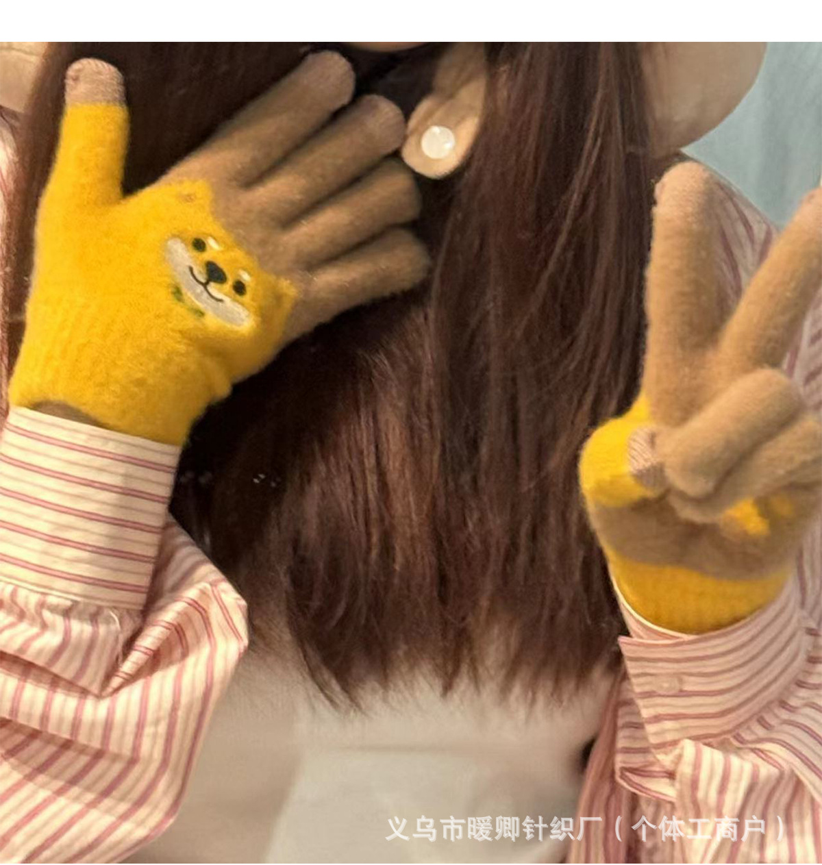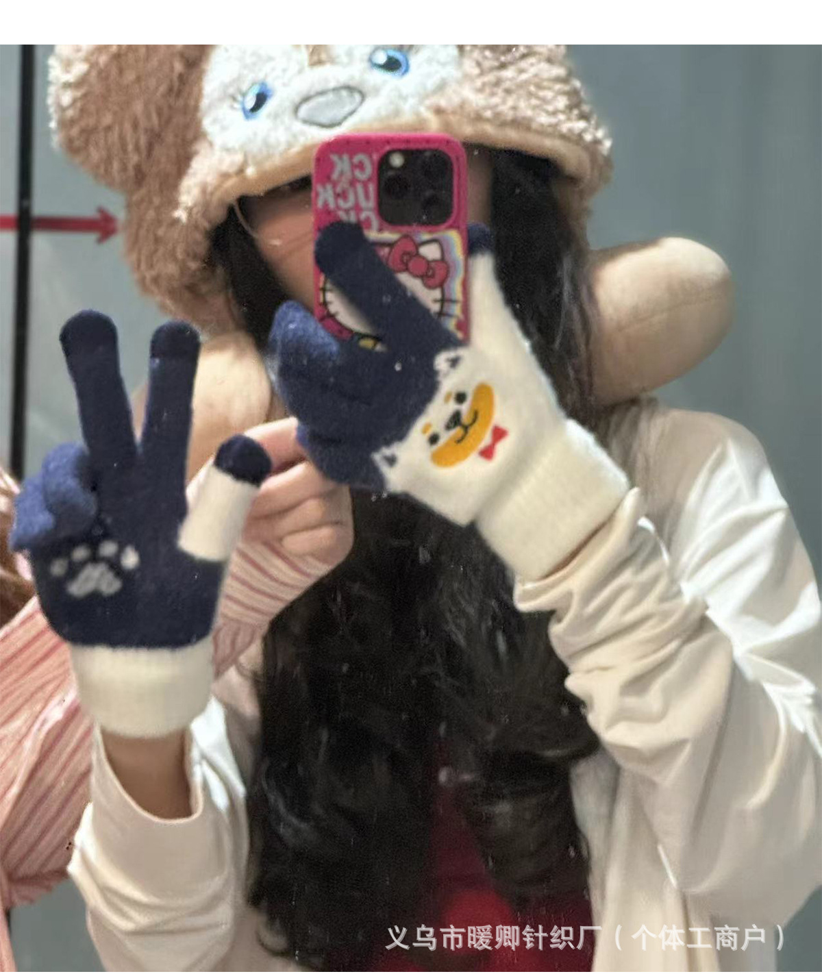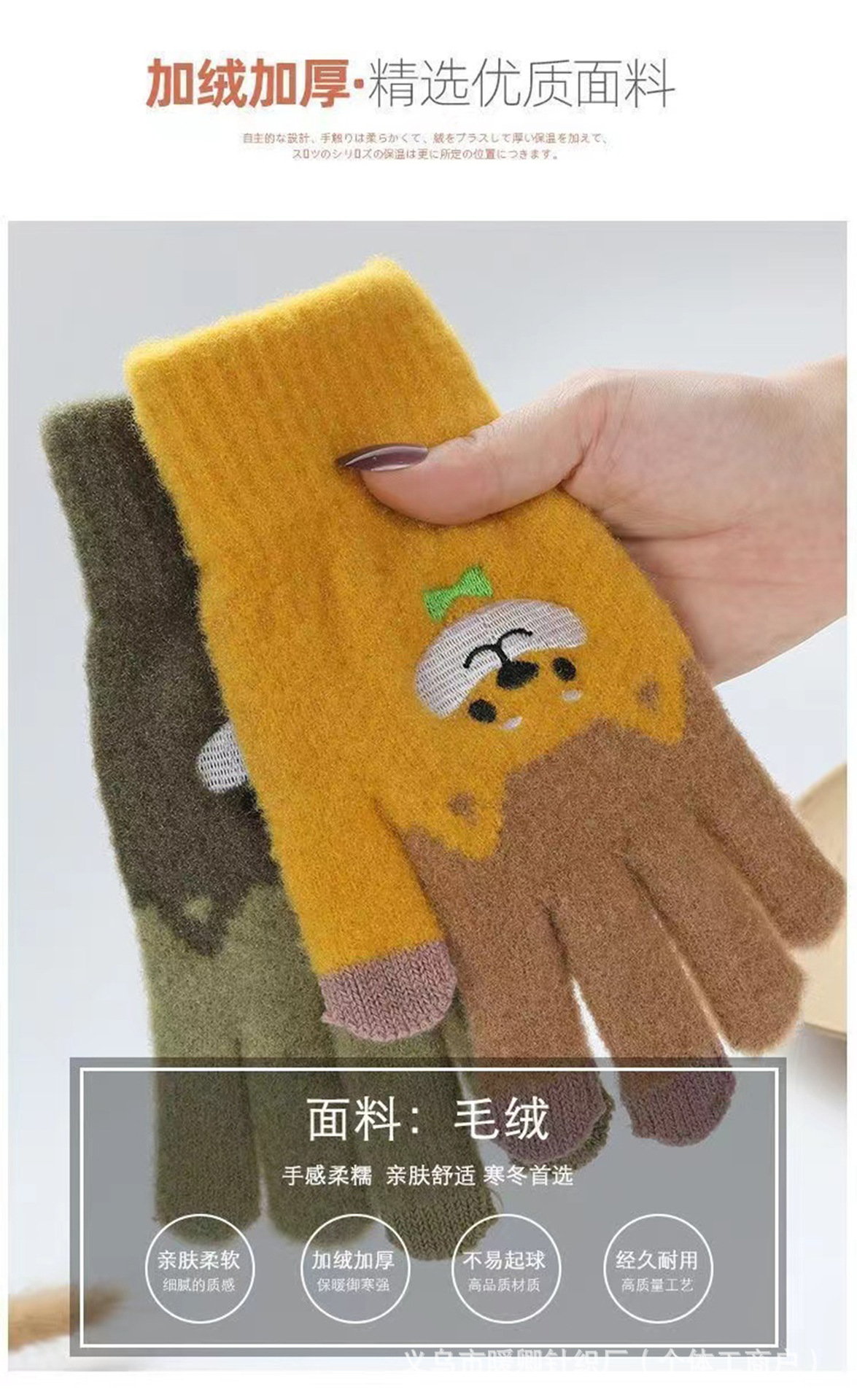 새로운 대형 어린이 장갑 니트 귀여운 강아지 자수 겨울 따뜻한 봉제 터치 스크린 두꺼운 가을과 겨울 장갑스토어 가기