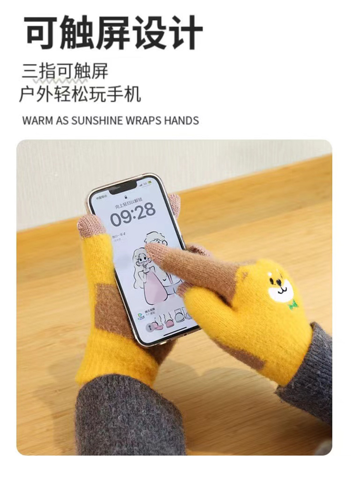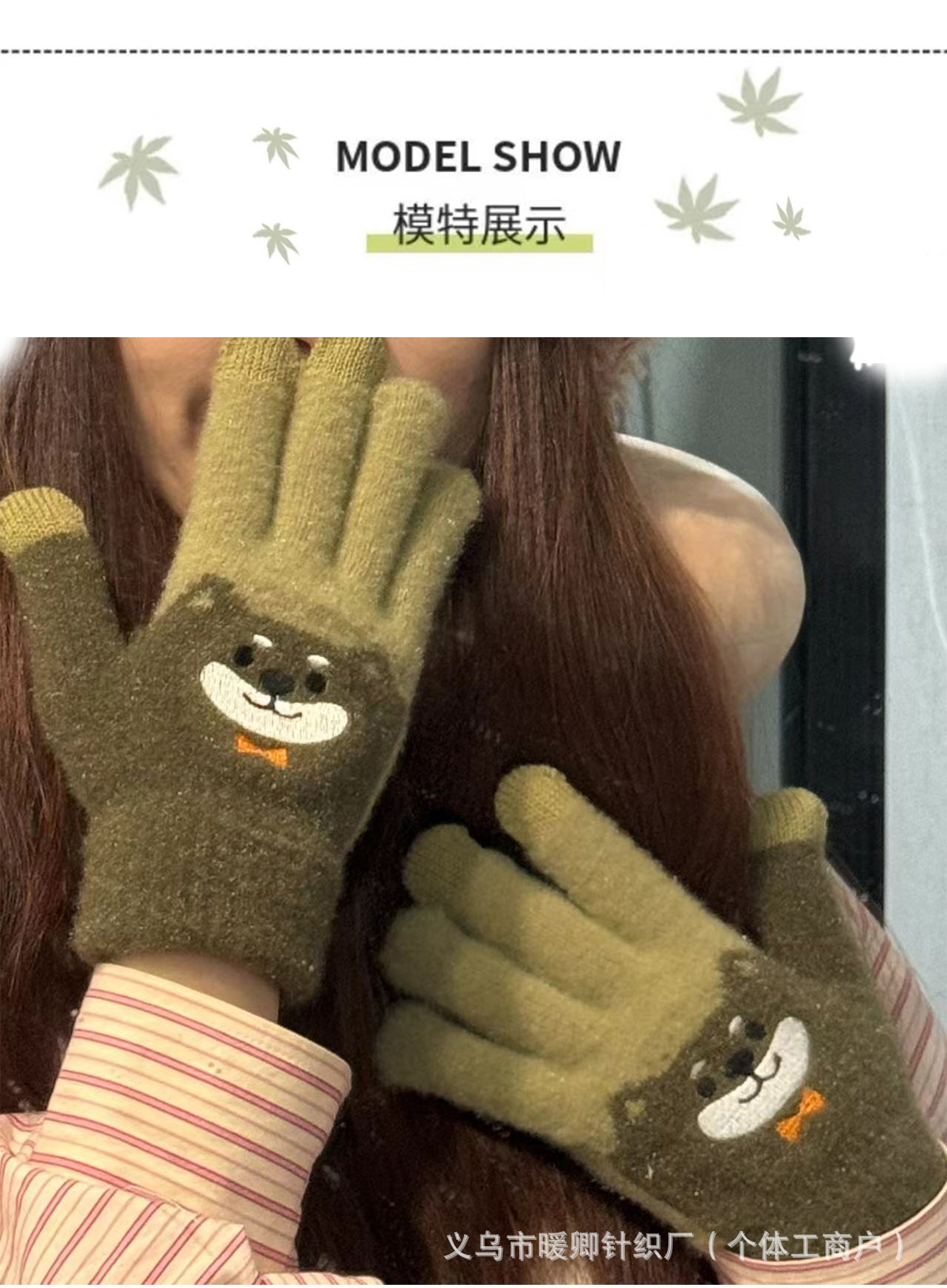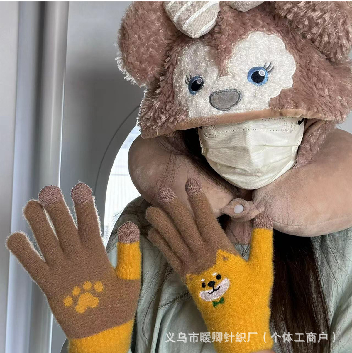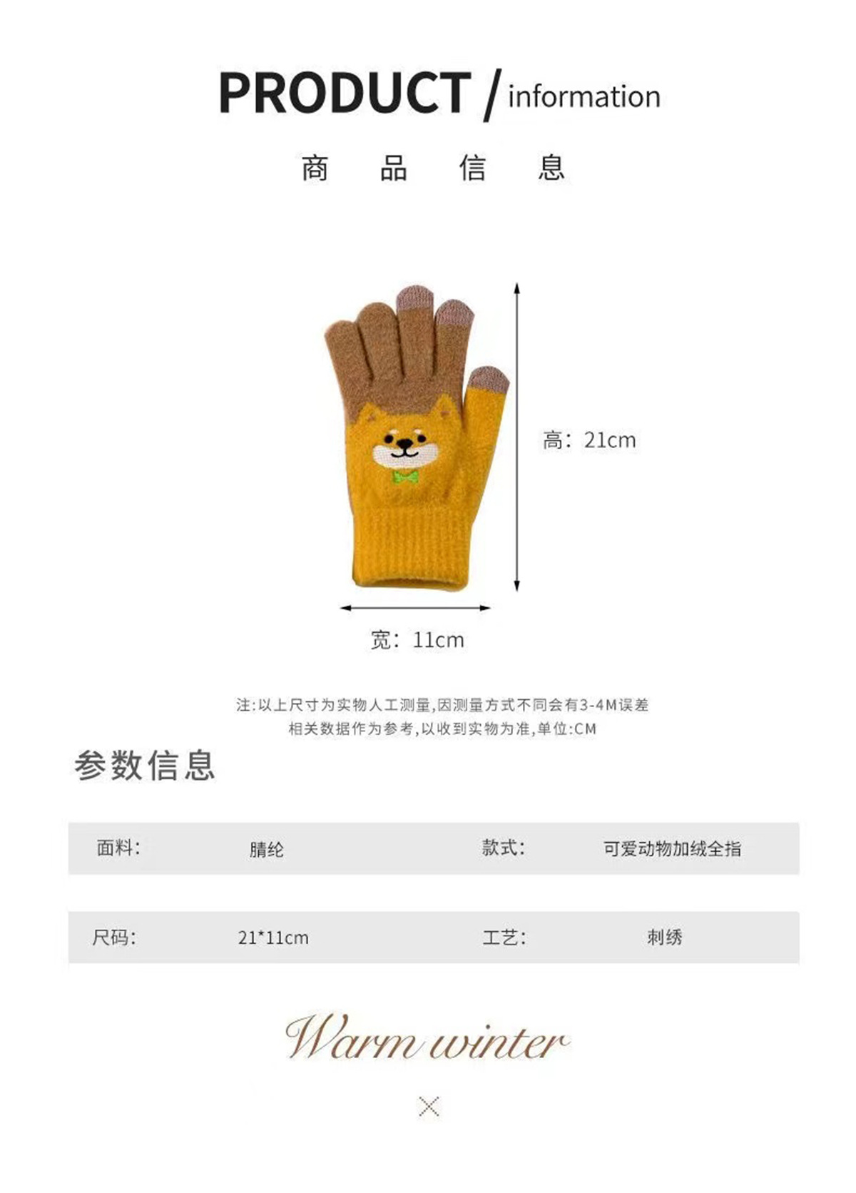 새로운 대형 어린이 장갑 니트 귀여운 강아지 자수 겨울 따뜻한 봉제 터치 스크린 두꺼운 가을과 겨울 장갑스토어 가기