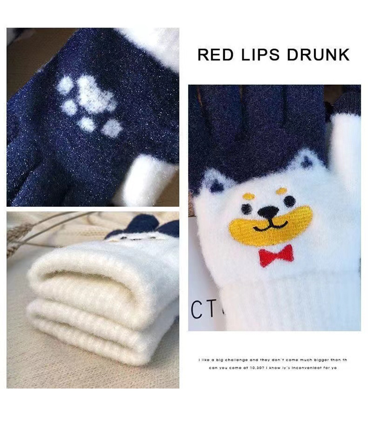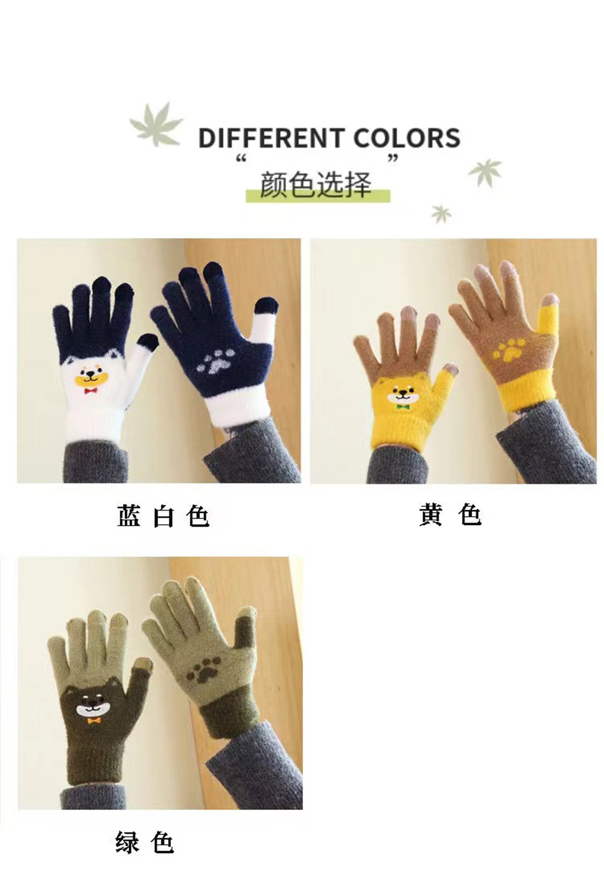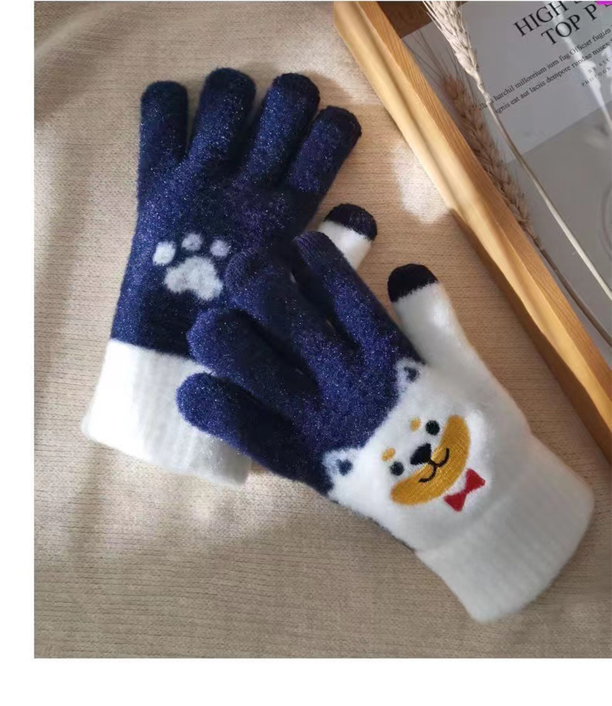 새로운 대형 어린이 장갑 니트 귀여운 강아지 자수 겨울 따뜻한 봉제 터치 스크린 두꺼운 가을과 겨울 장갑