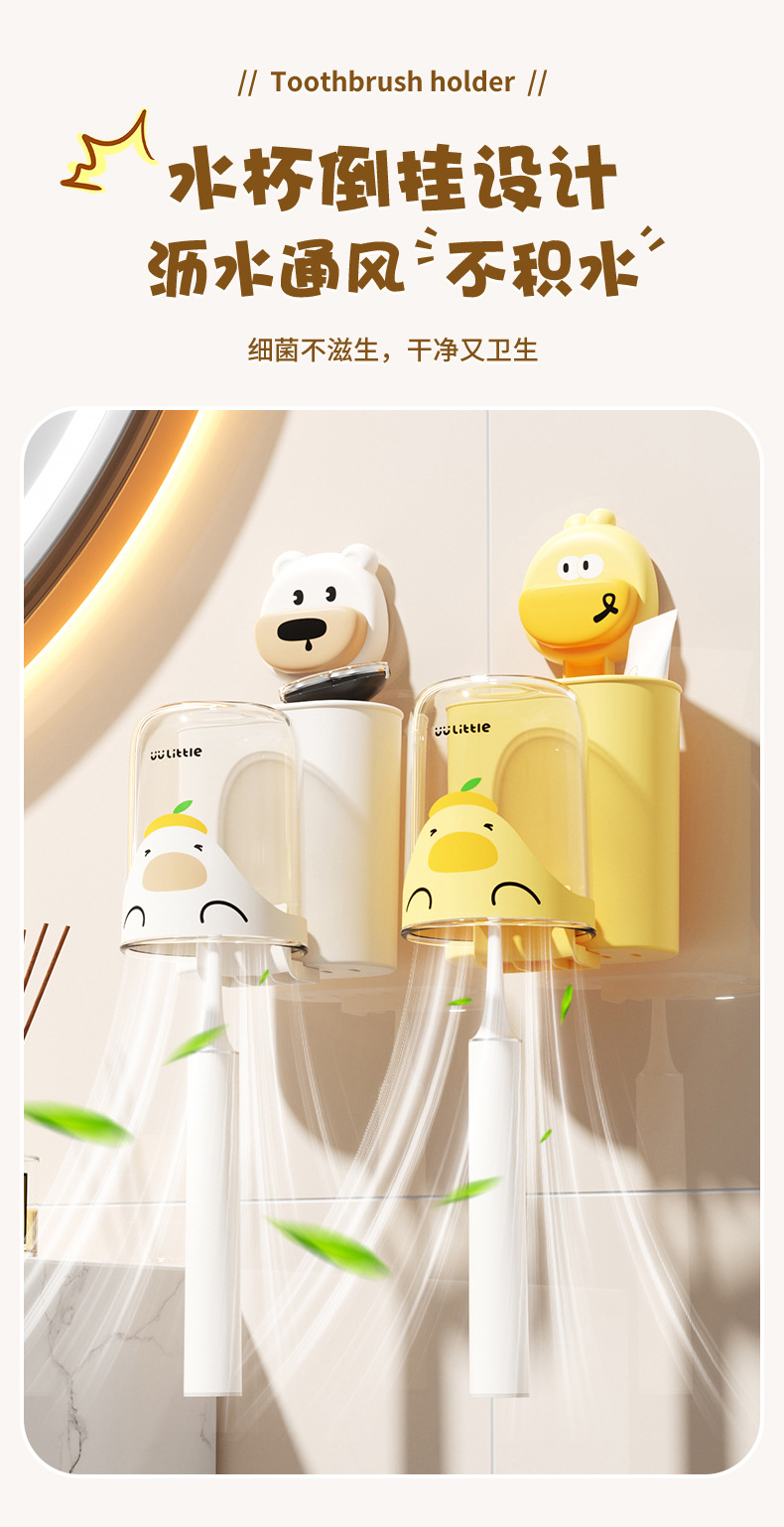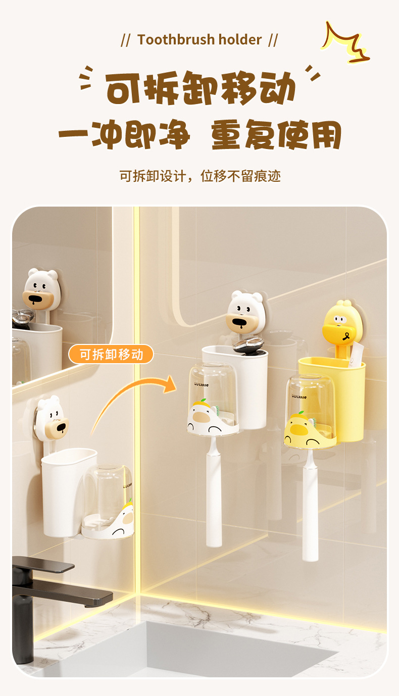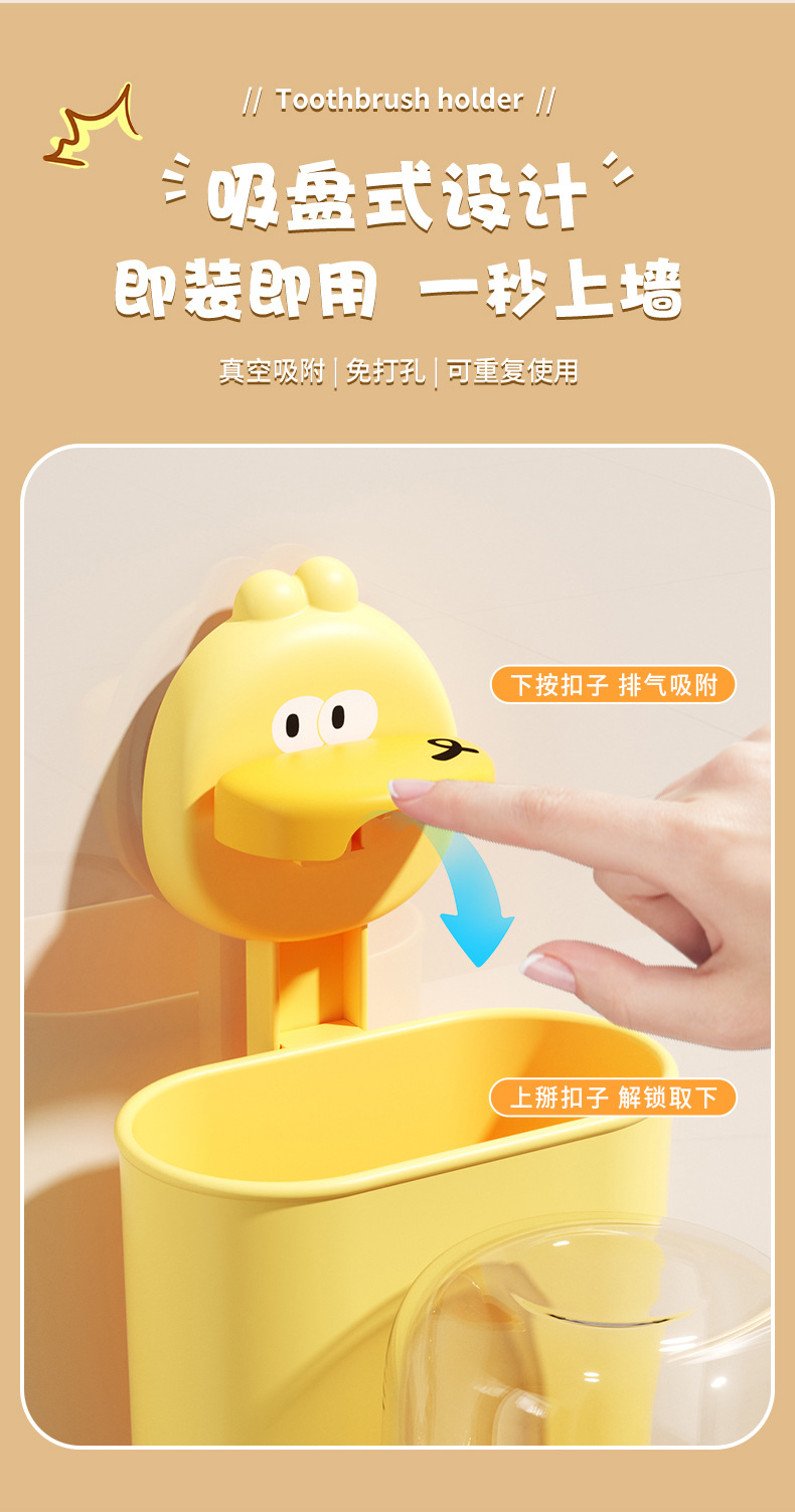 • 만화 흡입 컵 칫솔 홀더 [작은 노란 오리]