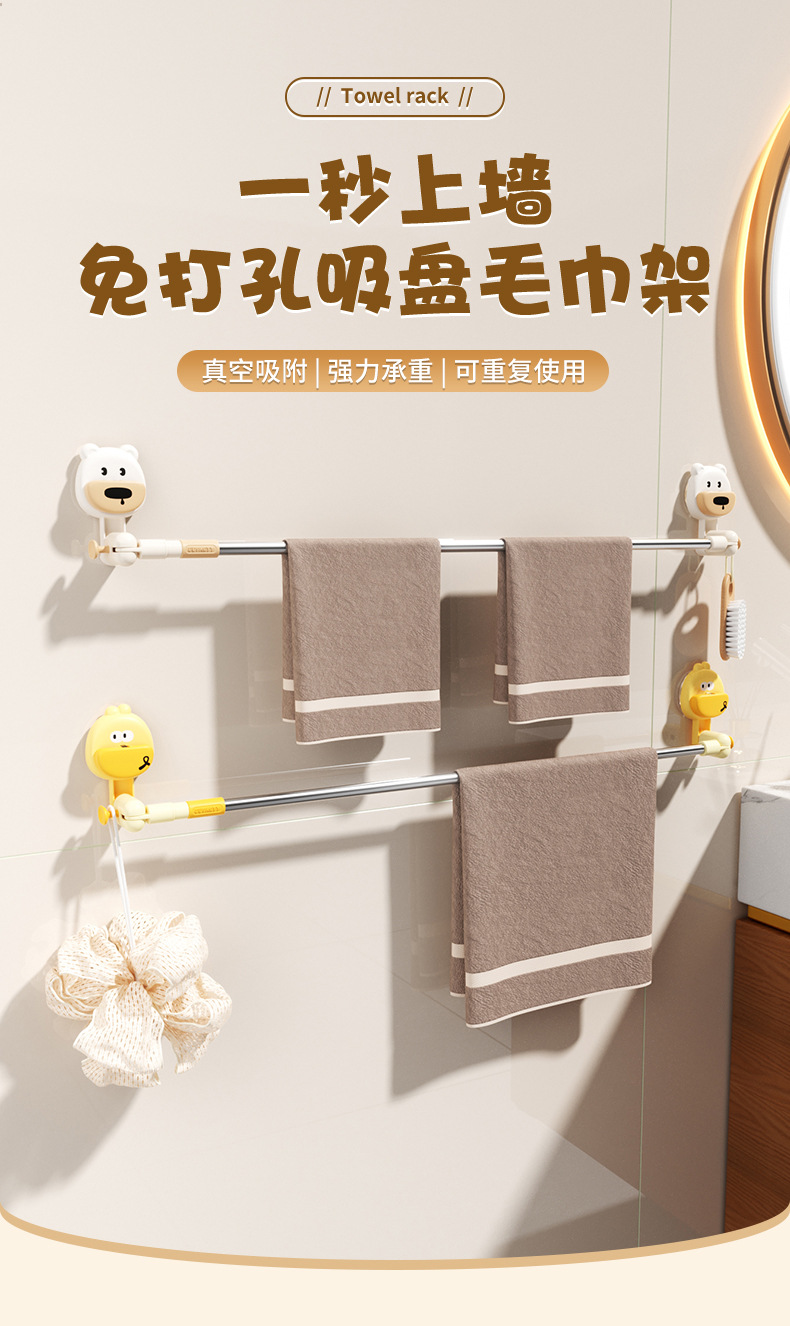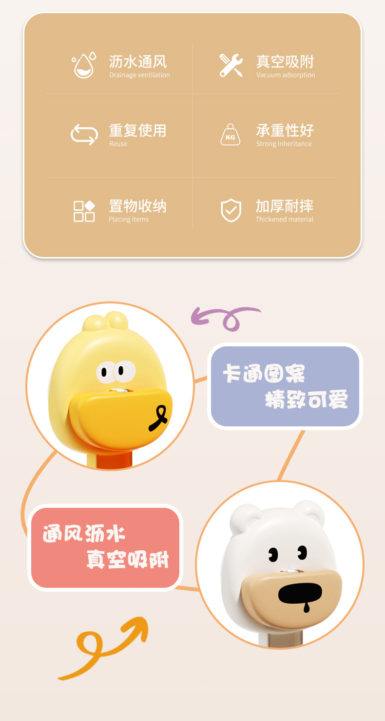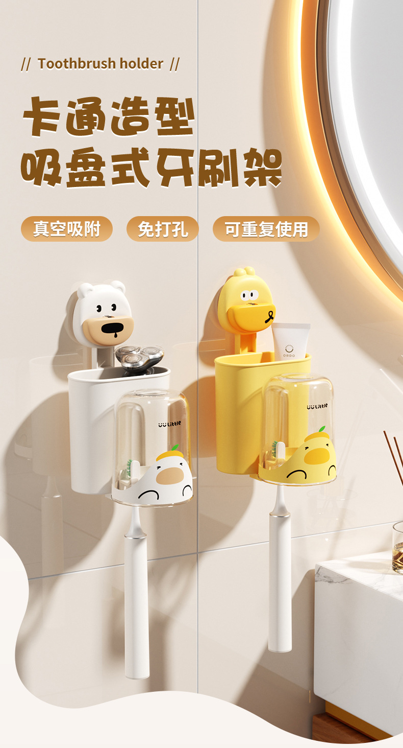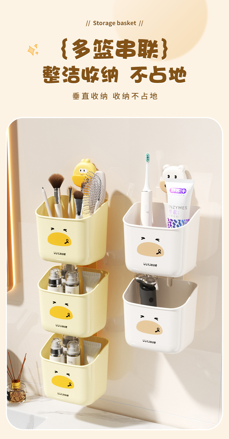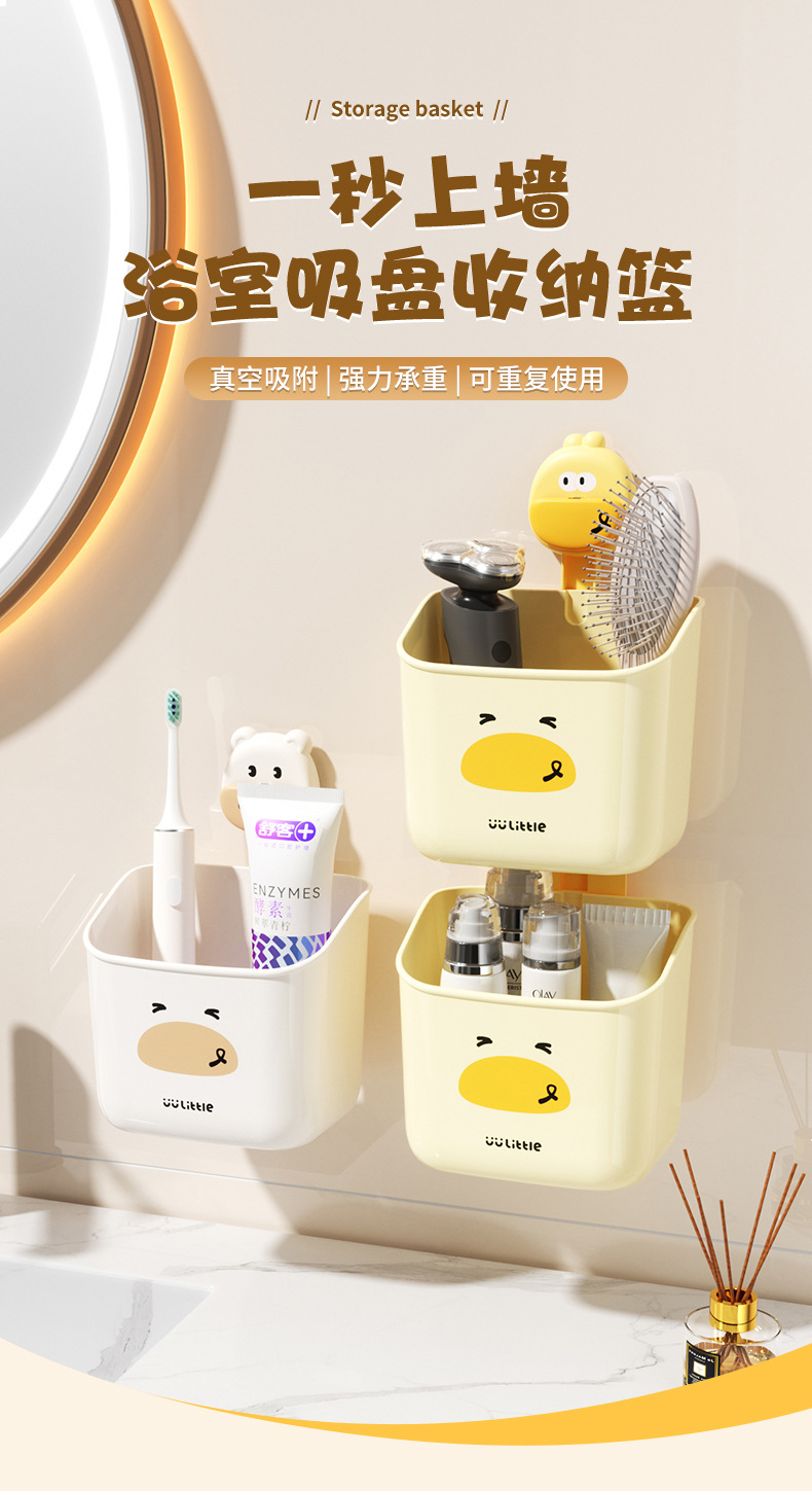 만화 귀여운 욕실 벽걸이 흡입 컵 칫솔 홀더 학생 기숙사 욕실 보관 랙 대용량 벽걸이 보관 바구니스토어 가기