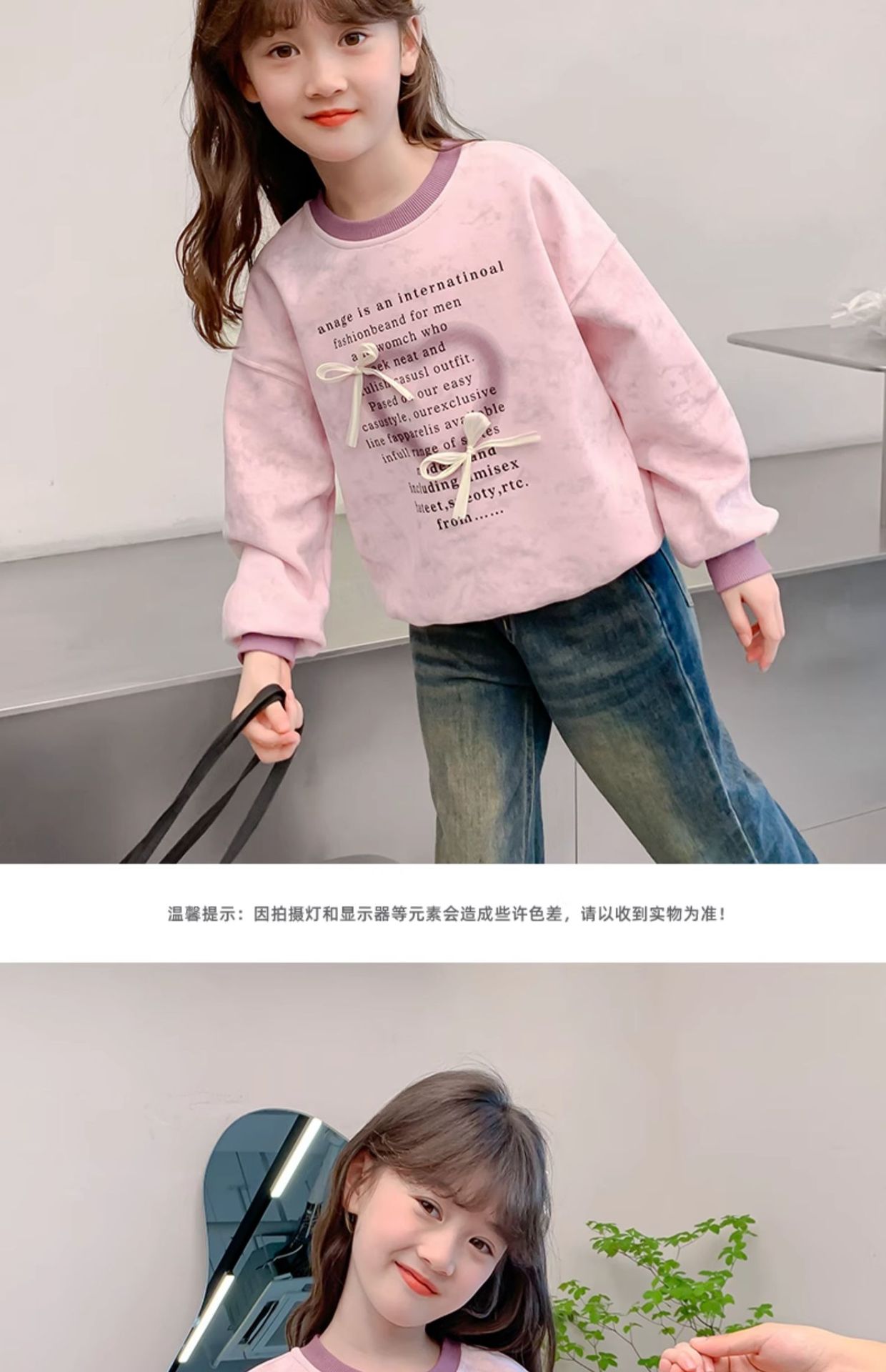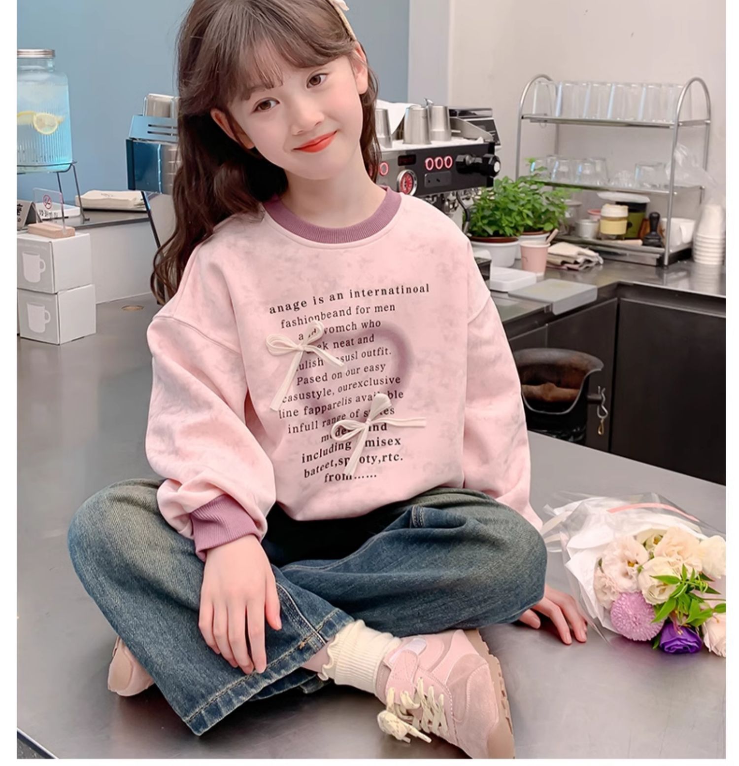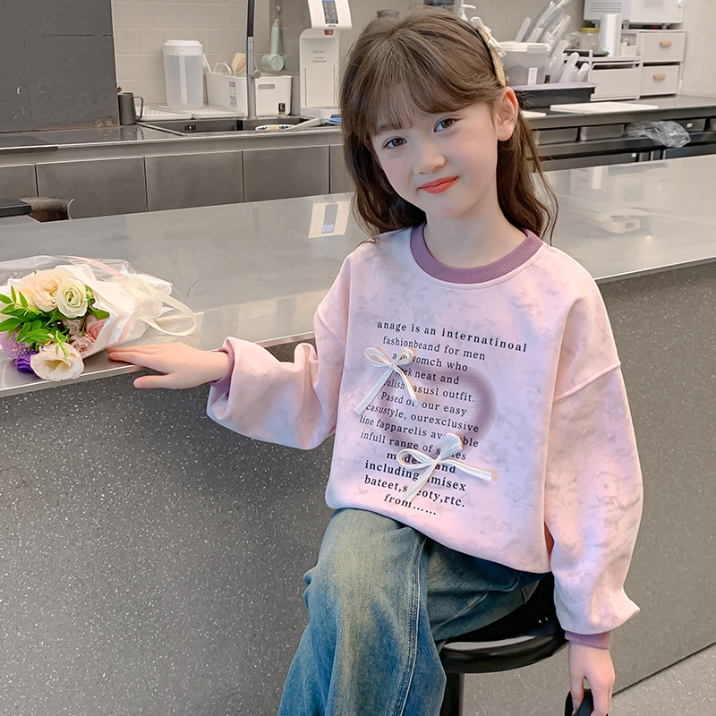 소녀 한국식 스웨터 2024 가을 신식 어린이 서양식 가을탑 대형 어린이 봄과 가을 긴팔 풀오버스토어 가기