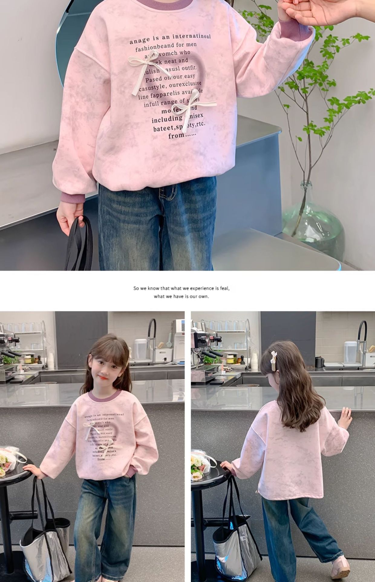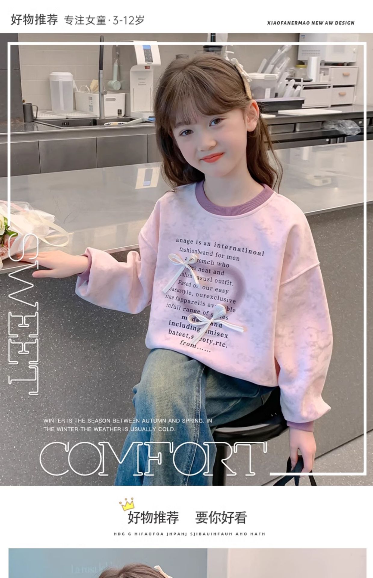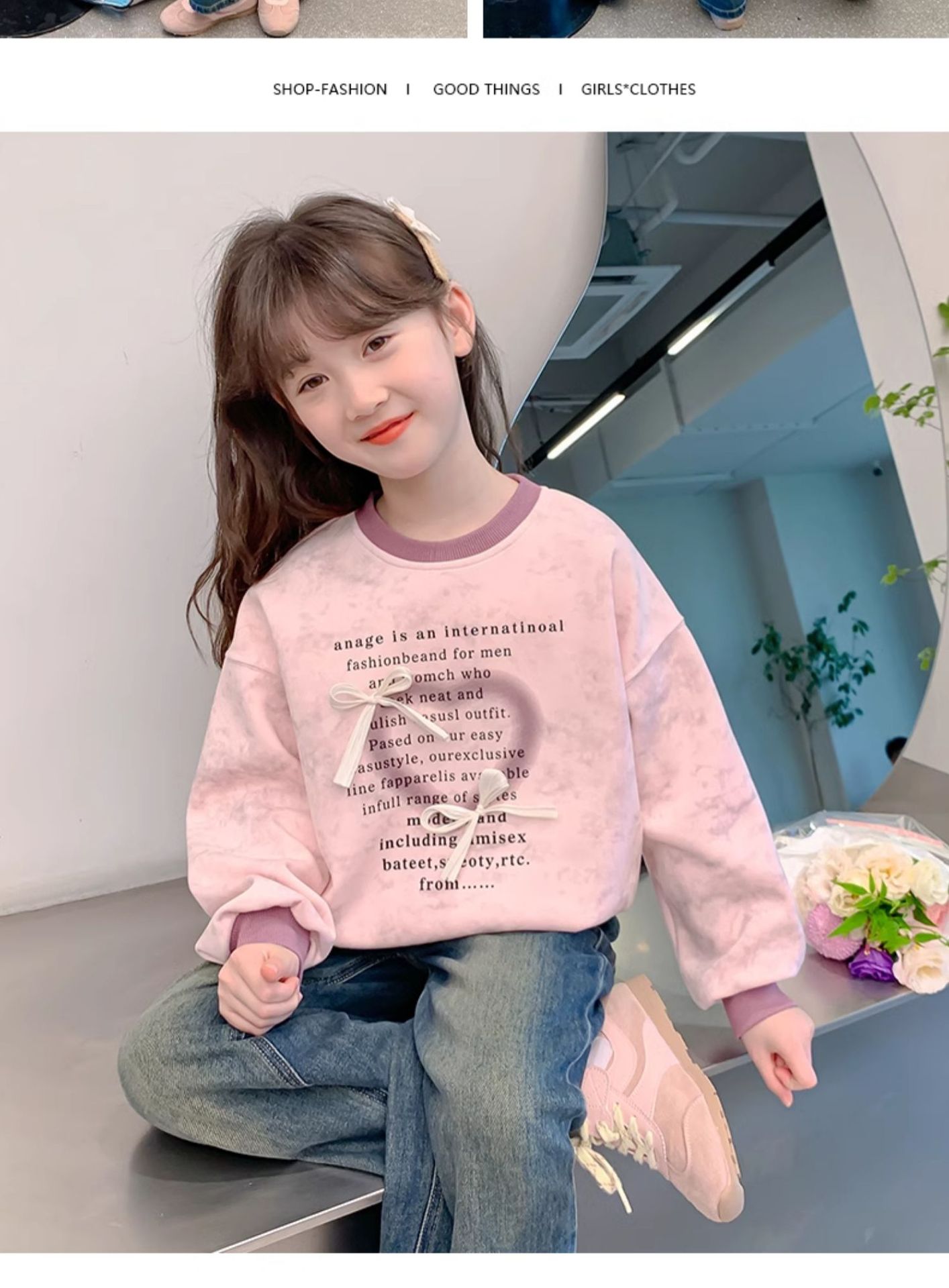 소녀 한국식 스웨터 2024 가을 신식 어린이 서양식 가을탑 대형 어린이 봄과 가을 긴팔 풀오버스토어 가기