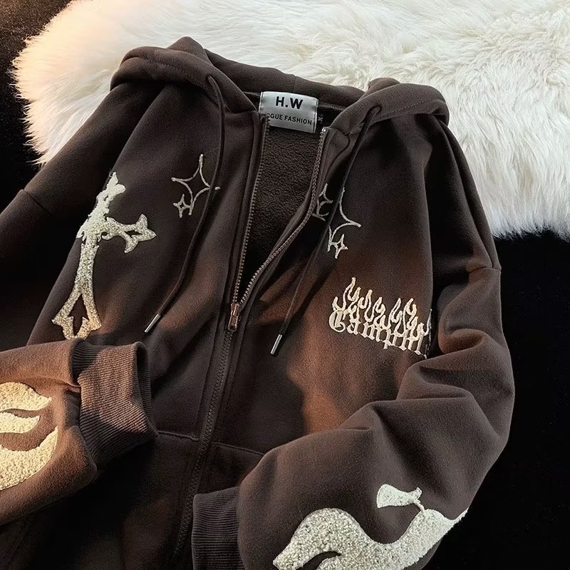 크로스 자수 캐주얼 간단한 게으른 올 매치 틈새 패션 남자의 가을과 겨울 후드 지퍼 스웨트 탑