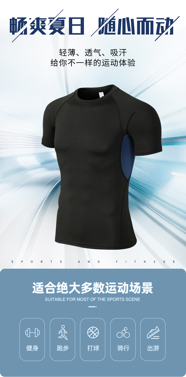 9 모션 피트니스 옷 남자 축구 농구 스포츠 짧은 소매 달리기 빠른 마른 옷 스타킹 야간 달리기 훈련 옷 도매스토어 가기