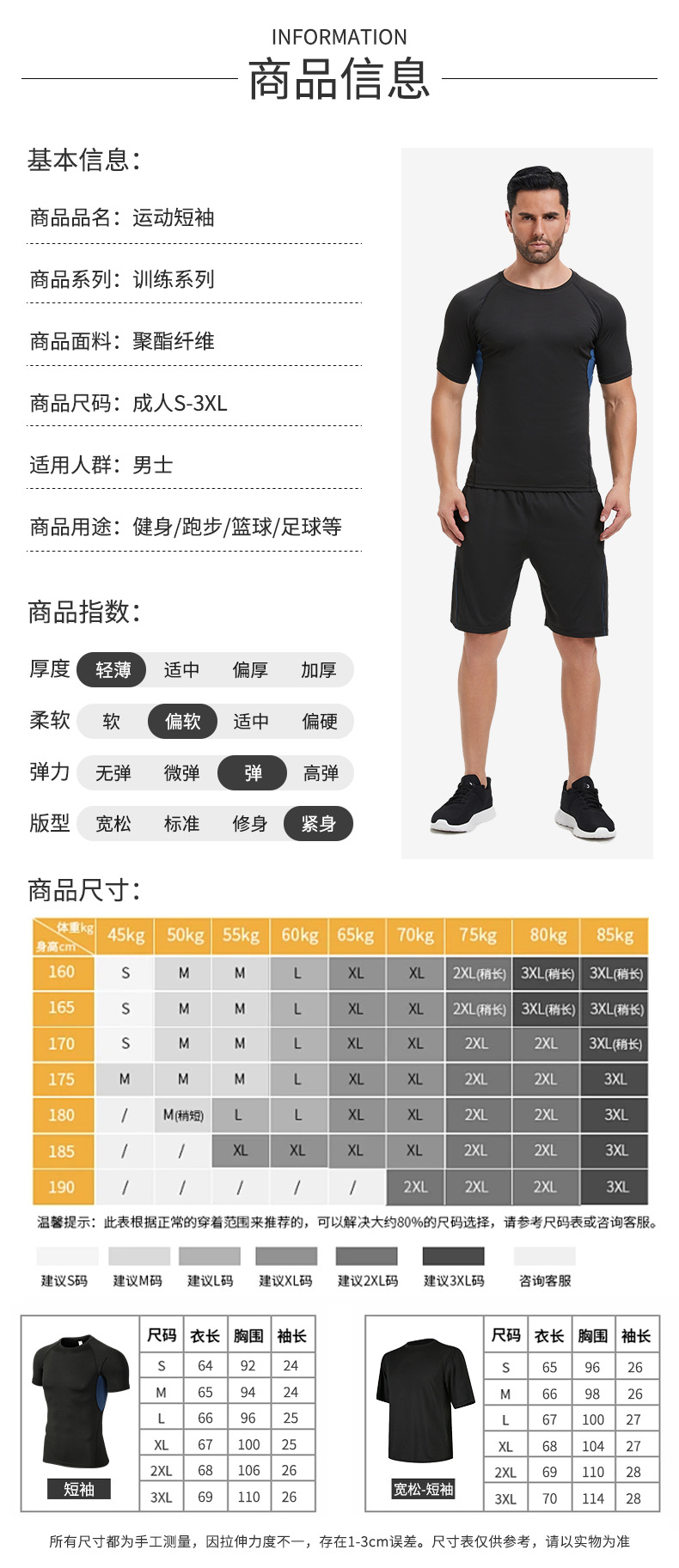 9 모션 피트니스 옷 남자 축구 농구 스포츠 짧은 소매 달리기 빠른 마른 옷 스타킹 야간 달리기 훈련 옷 도매