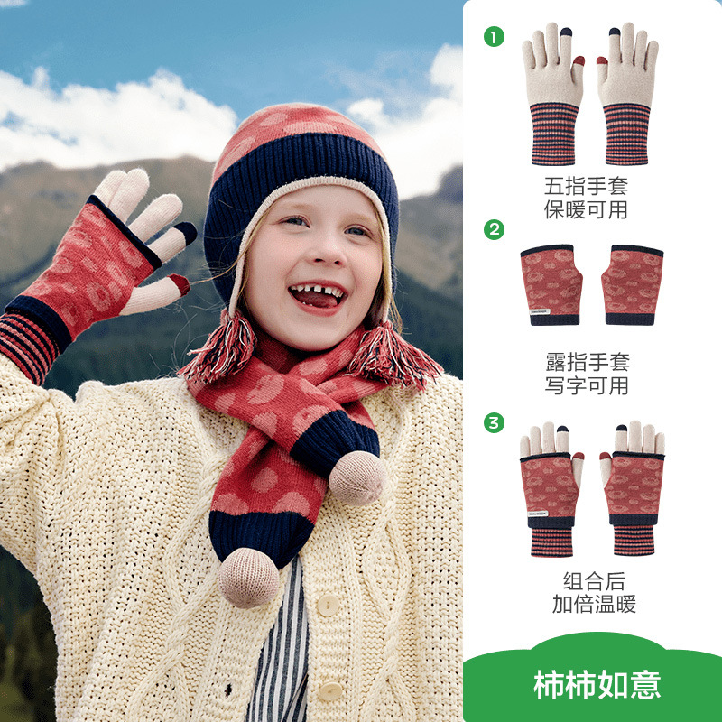 KK 트리 2 대 1 어린이 장갑 봄, 가을, 겨울 따뜻한 초등학생 특수 아기 소년 소녀 다섯 손가락 쓰기