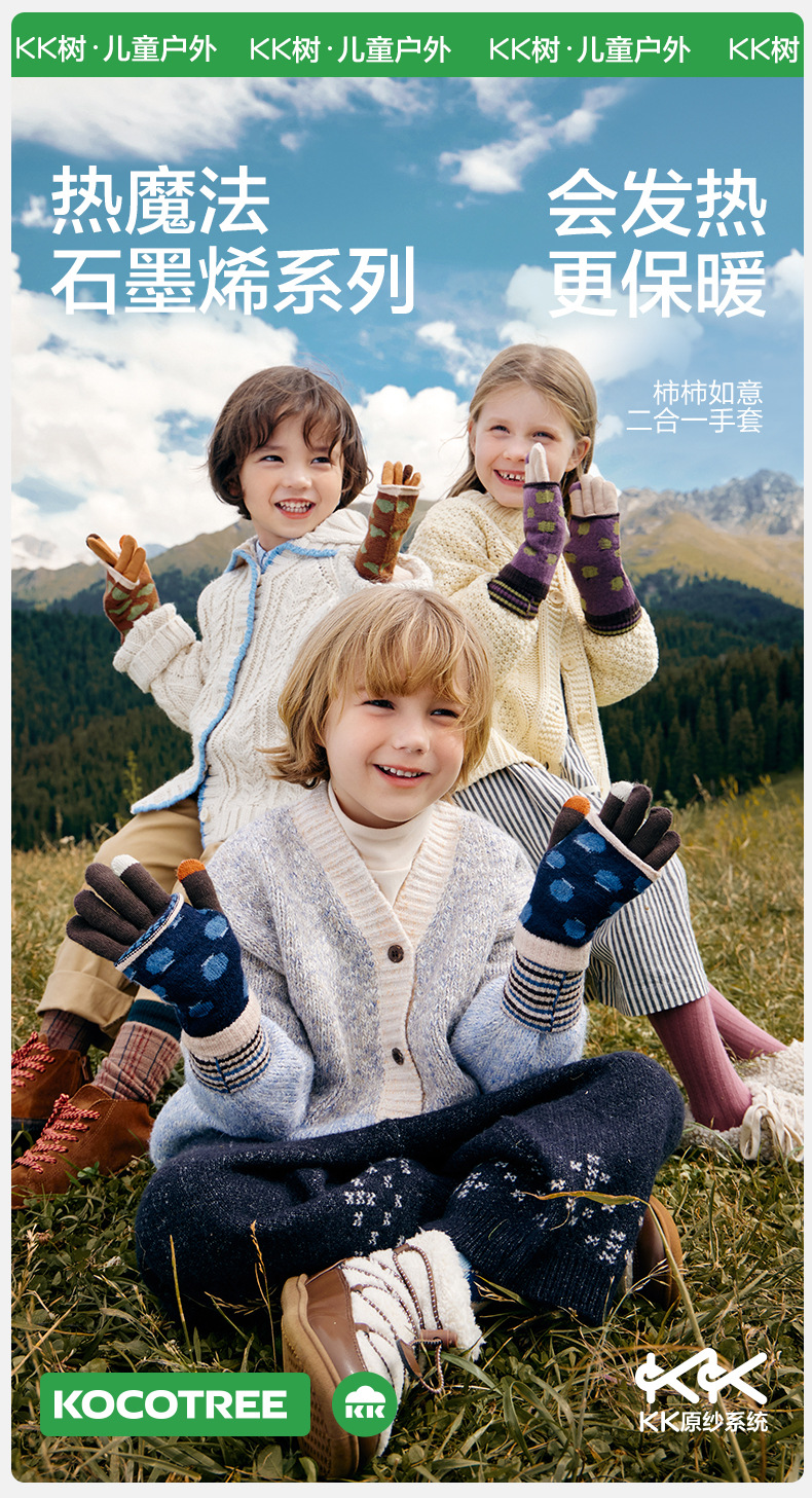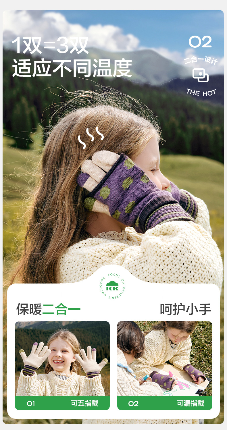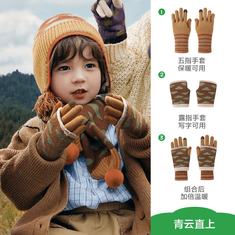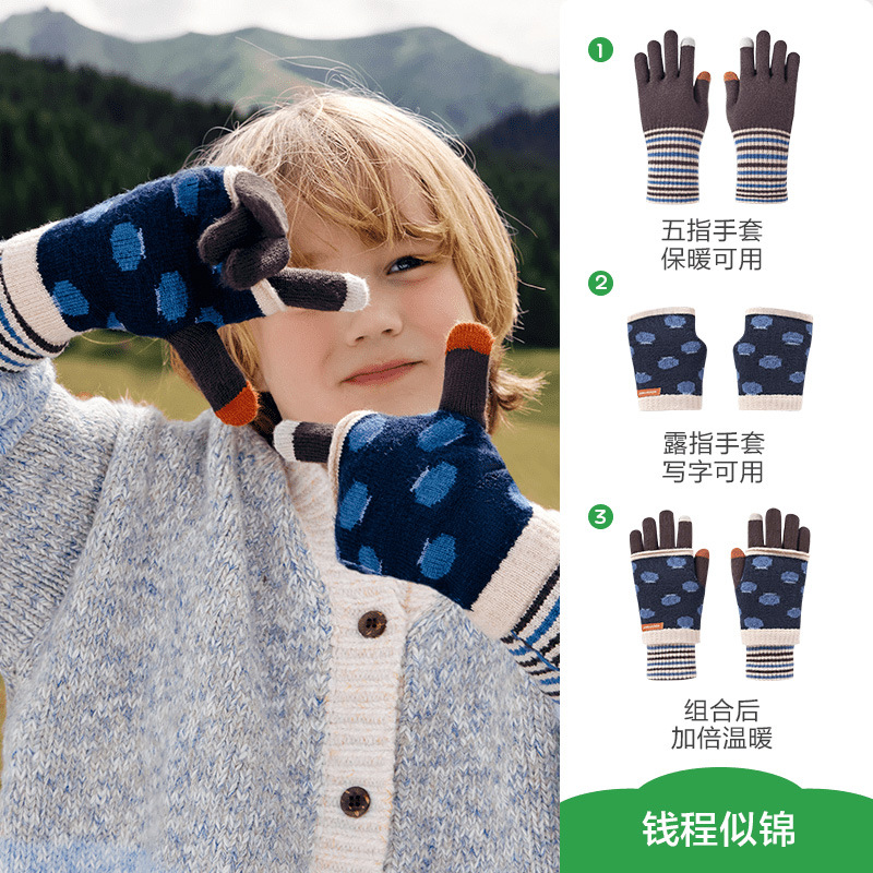 KK 트리 2 대 1 어린이 장갑 봄, 가을, 겨울 따뜻한 초등학생 특수 아기 소년 소녀 다섯 손가락 쓰기스토어 가기