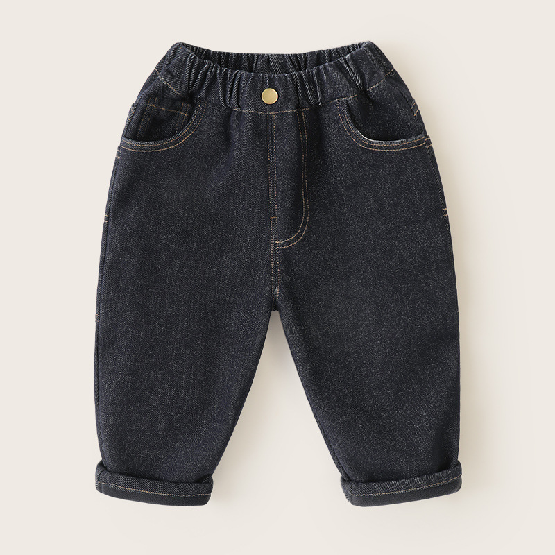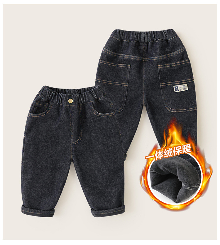 겨울 겨울 착용 가을 및 겨울 새로운 어린이 착용 아기 면화 바지 겨울 패션 데님 두꺼운 소년 기모