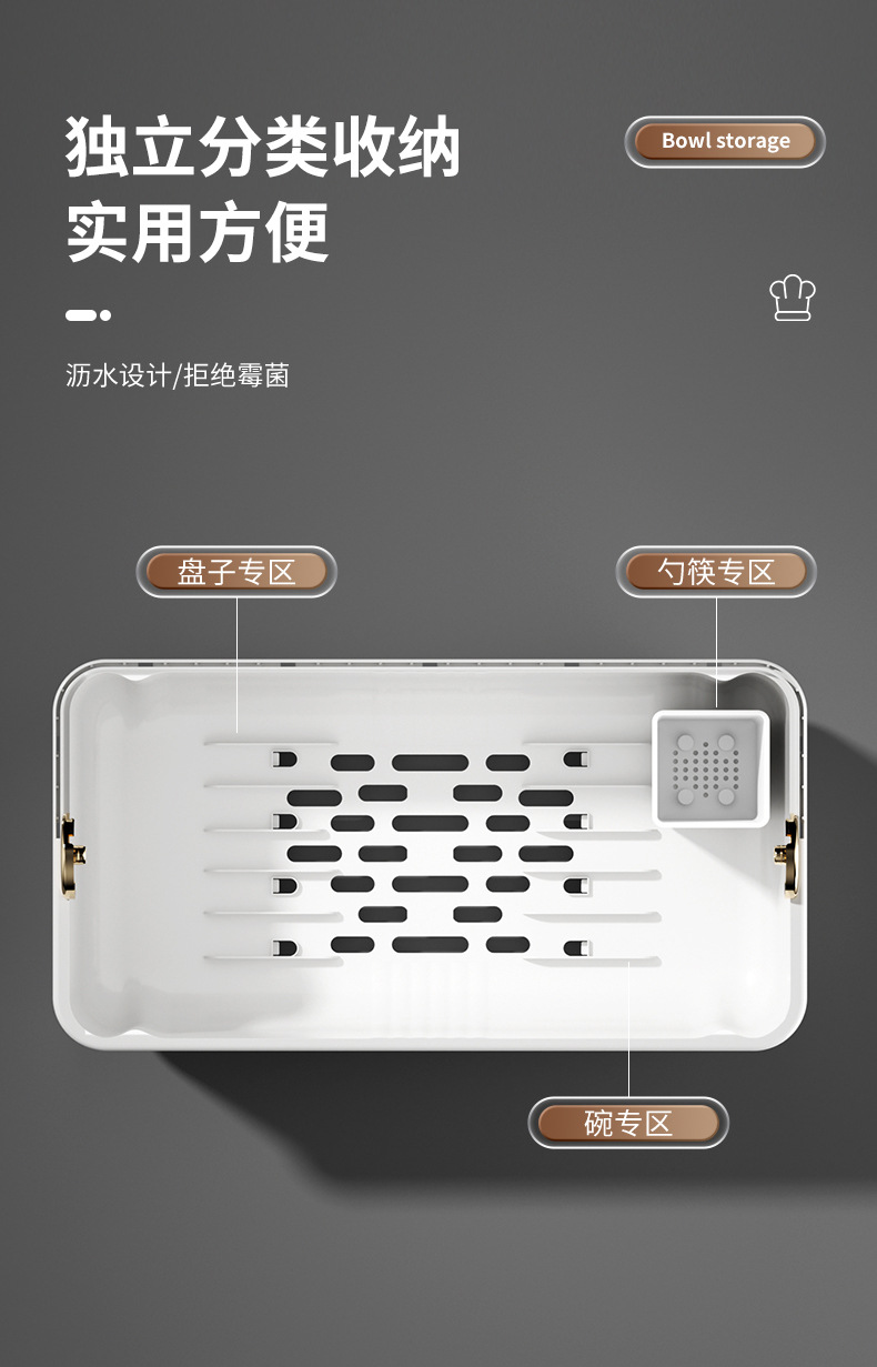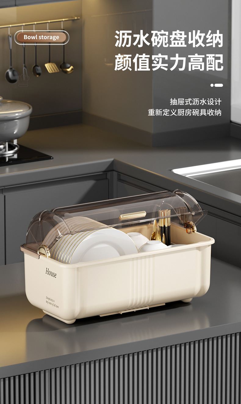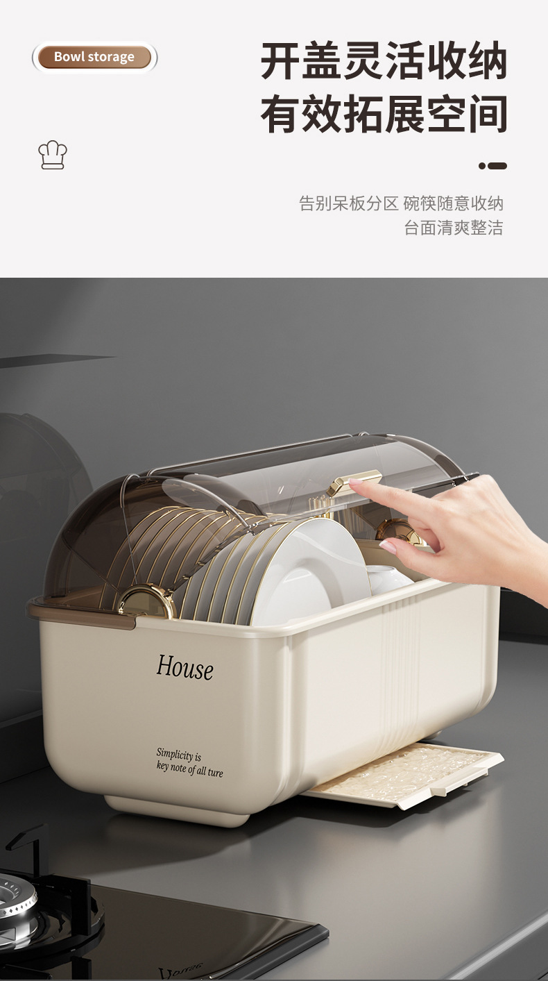접시 저장 랙 찬장 식기 플레이트, 그릇 및 젓가락 저장 상자 용 뚜껑이있는 가정용 주방 배수 보관 랙