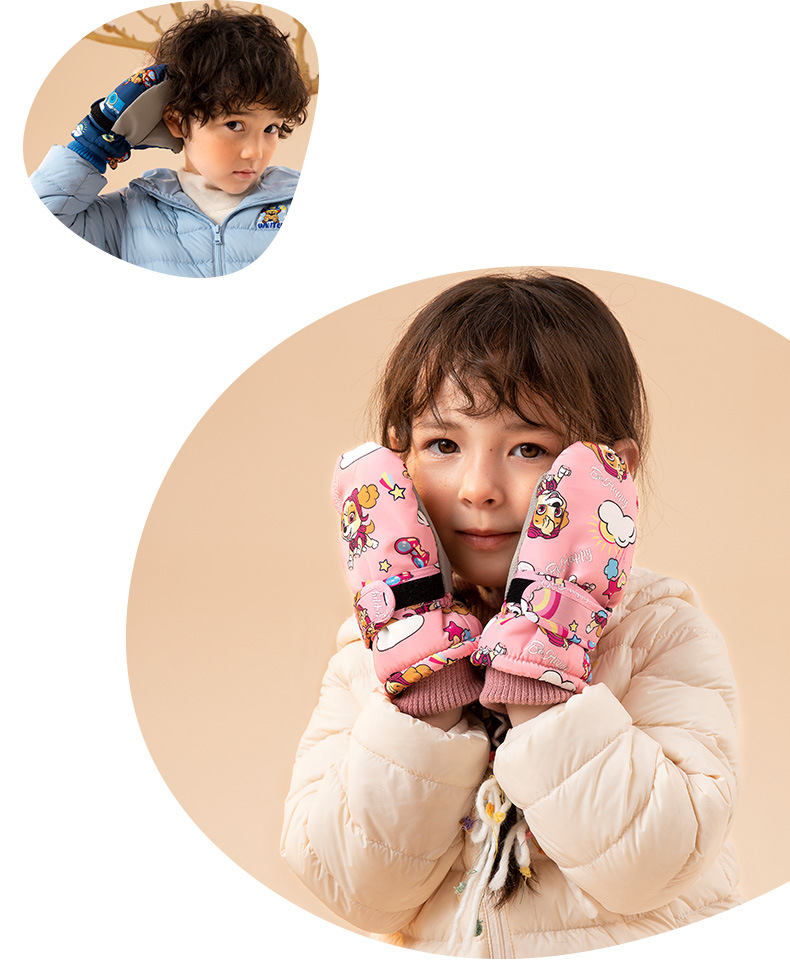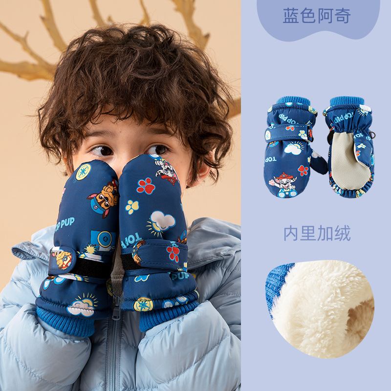 왕왕 팀 어린이 스키 장갑 소년과 소년 겨울 기모 따뜻한 장갑 눈 놀이 소녀 방수 승마