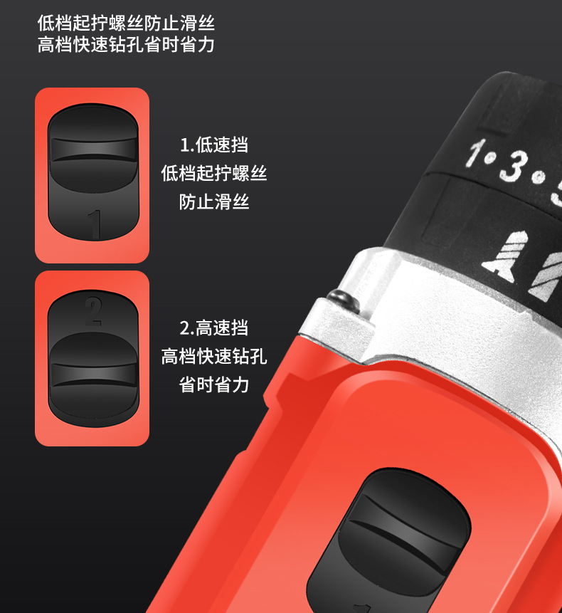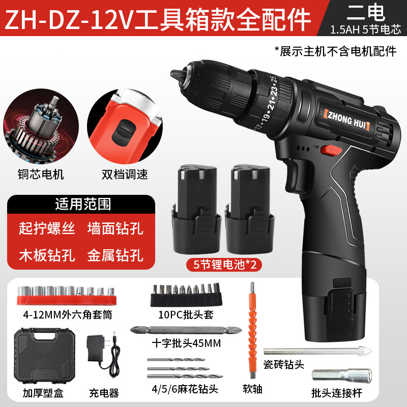 • 12v 일반 2단 전기 드릴, 배터리당 3개 섹션(검은색)