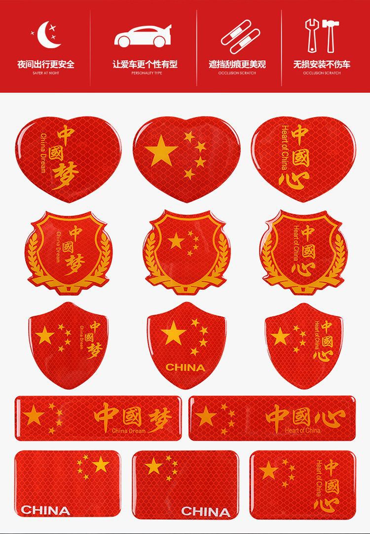 자동차 반사 자동차 스티커 붉은 깃발 자동차 스티커 중국 꿈 자동차 스티커 크리스탈 드롭 접착제 3D 스테레오 스티커 긴 스트립 덮개 긁힘