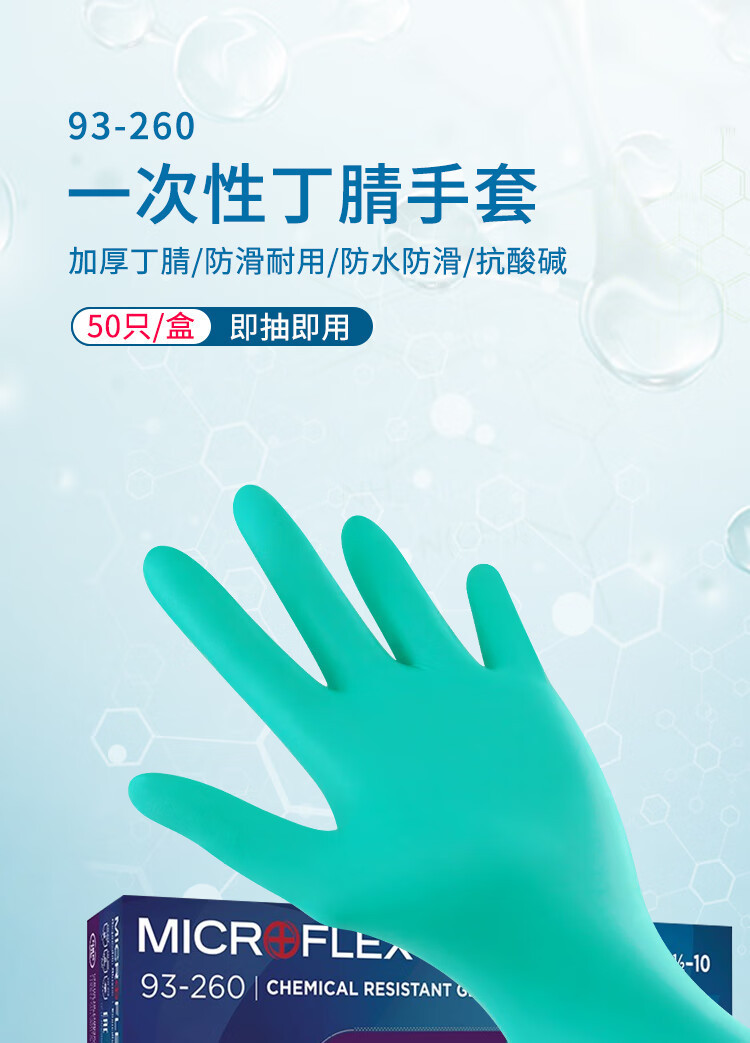 Antell Ansell93-260 일회용 니트릴 장갑 두꺼운 검사 방수 실험실 산 및 알칼리 내성 산업스토어 가기