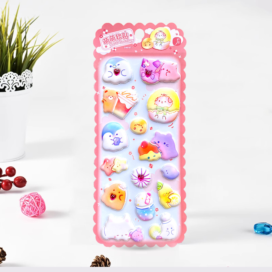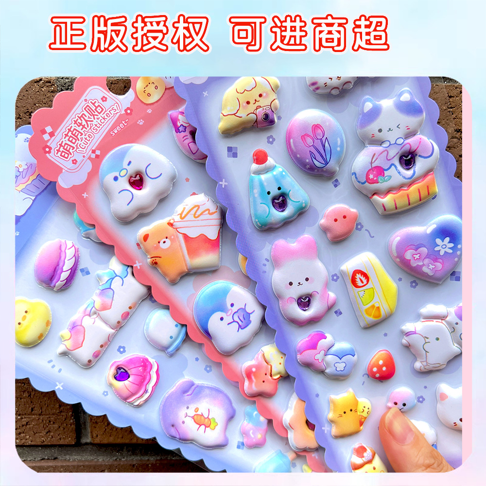 초기 귀여운 재미 통통 스티커 어린이 만화 귀여운 귀여운 애완 동물 입체 스티커 동물 토끼 소녀 거품 스티커스토어 가기