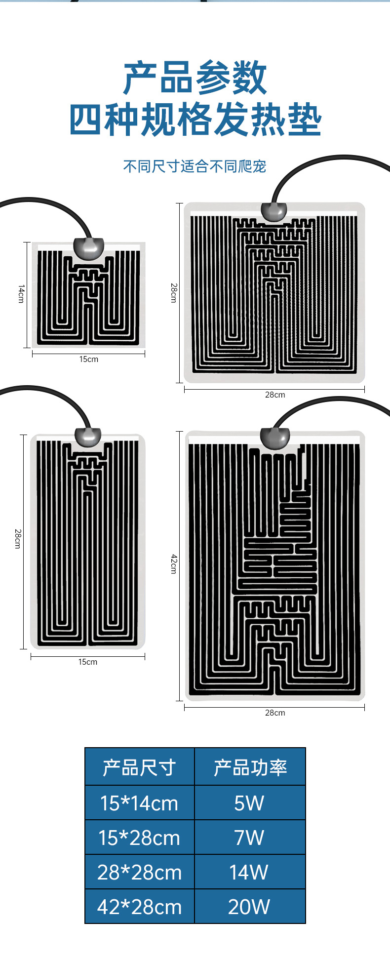 • 20W/42*28 무단계 온도 스위치 가열 패드