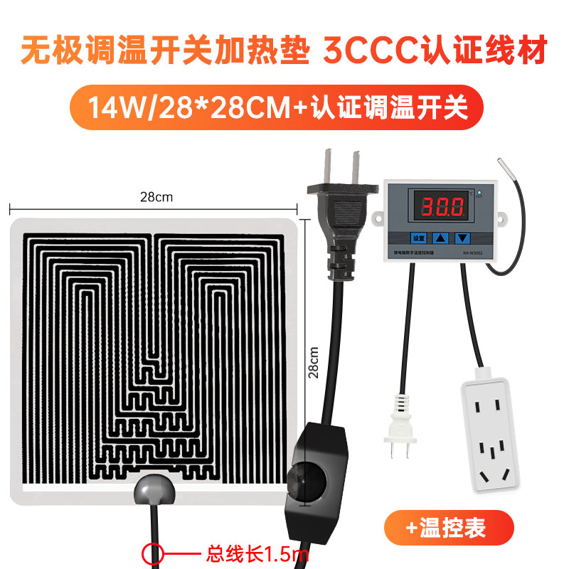 • 14W/28*28 온도 조절 가열 패드 + 9개 구멍 온도 조절