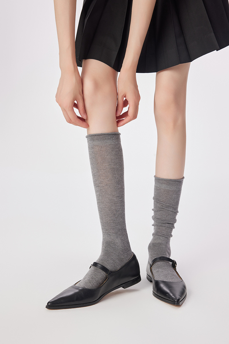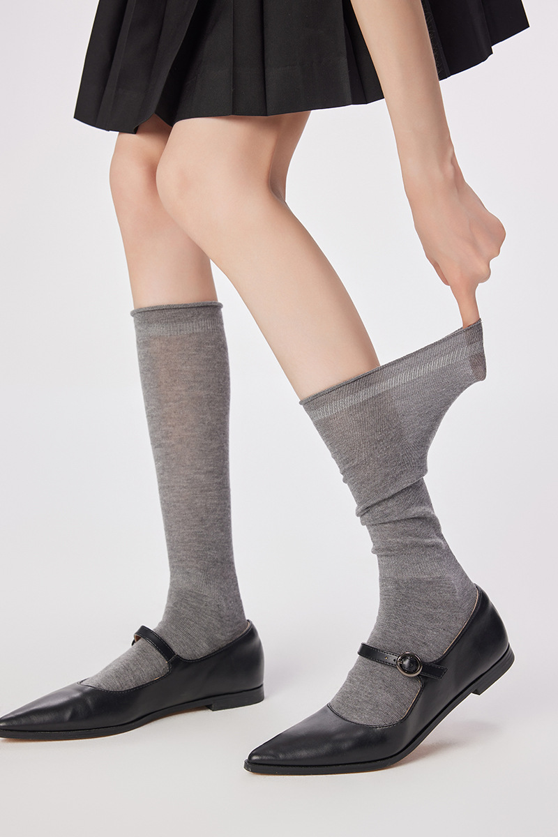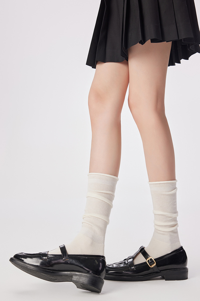 새로운 가볍고 얇은 양모 얕은 양말 여성 롤업 스택 솔리드 컬러 소프트 플랫 미디엄 양말 한국 양말스토어 가기