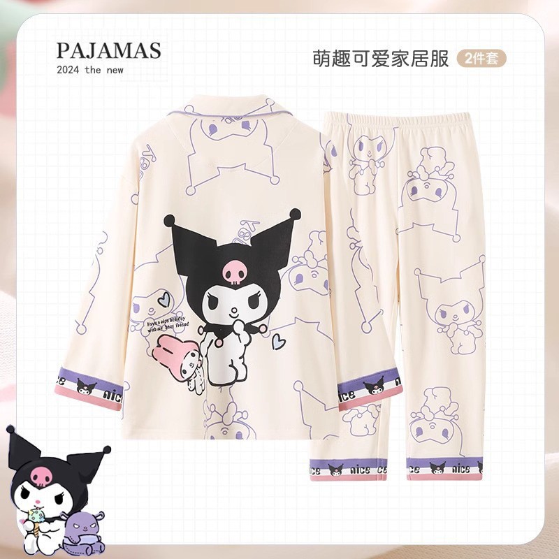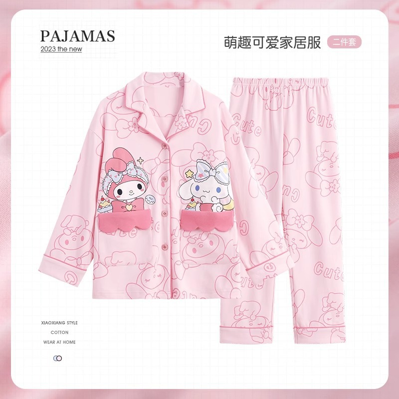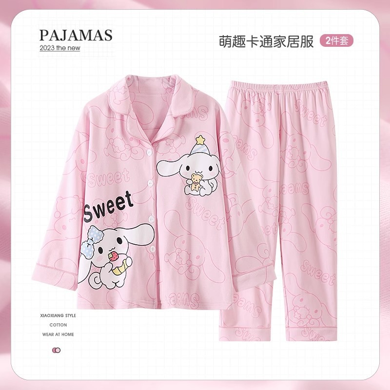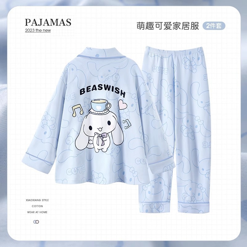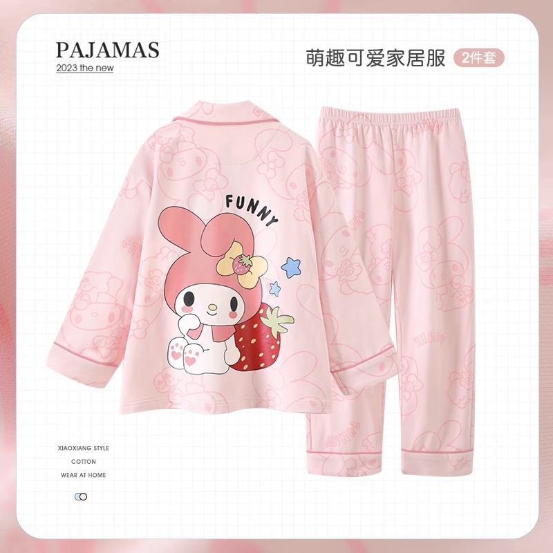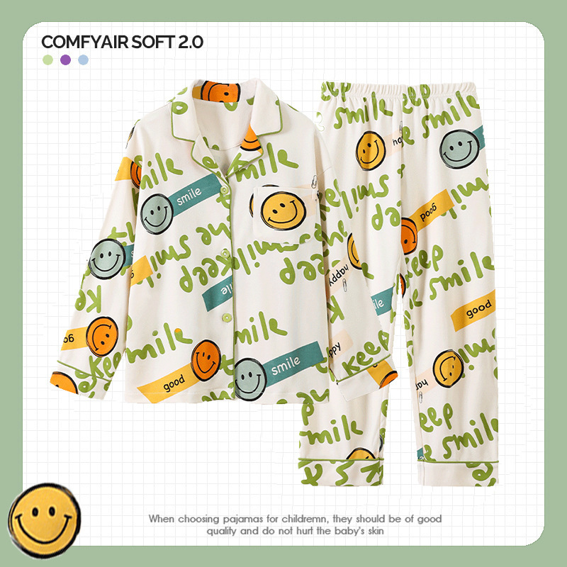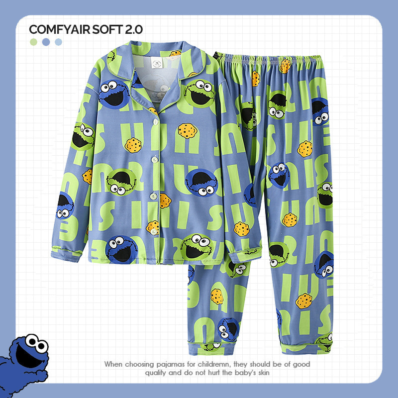한국판 잠옷 어린이 잠옷 소년 소녀 새 긴 소매 투피스 가을과 겨울 소년 소녀 옷깃 집 옷 세트