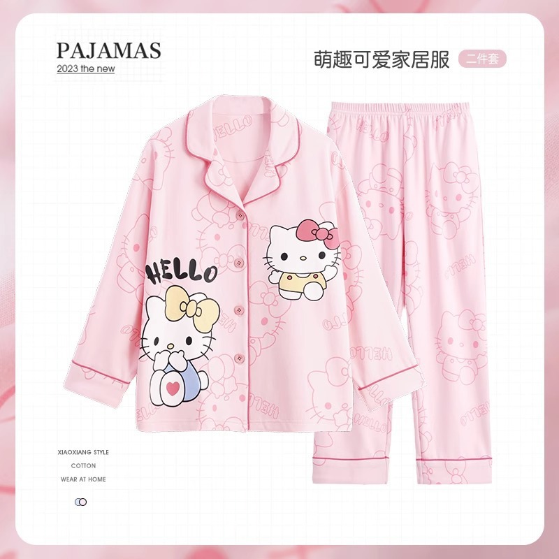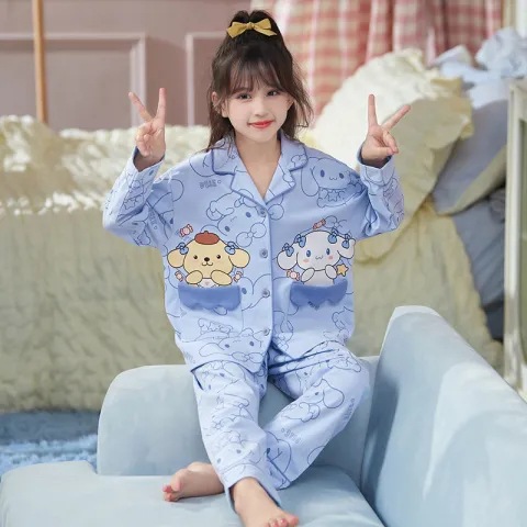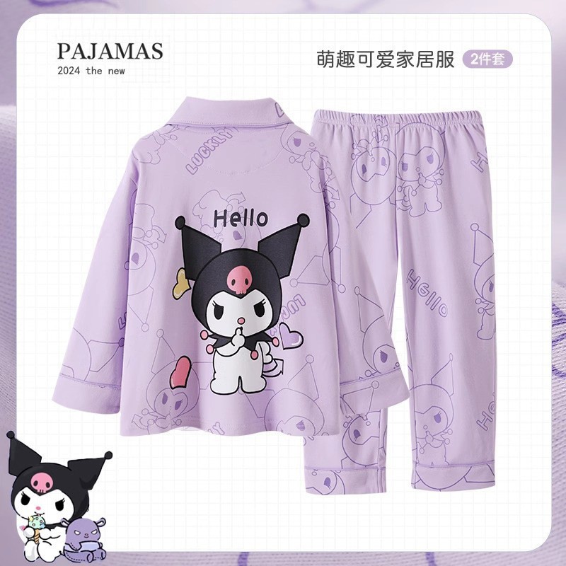 한국판 잠옷 어린이 잠옷 소년 소녀 새 긴 소매 투피스 가을과 겨울 소년 소녀 옷깃 집 옷 세트스토어 가기
