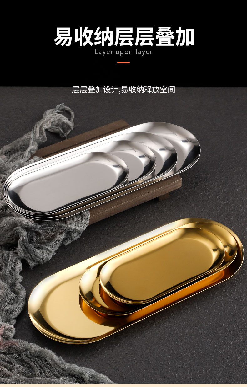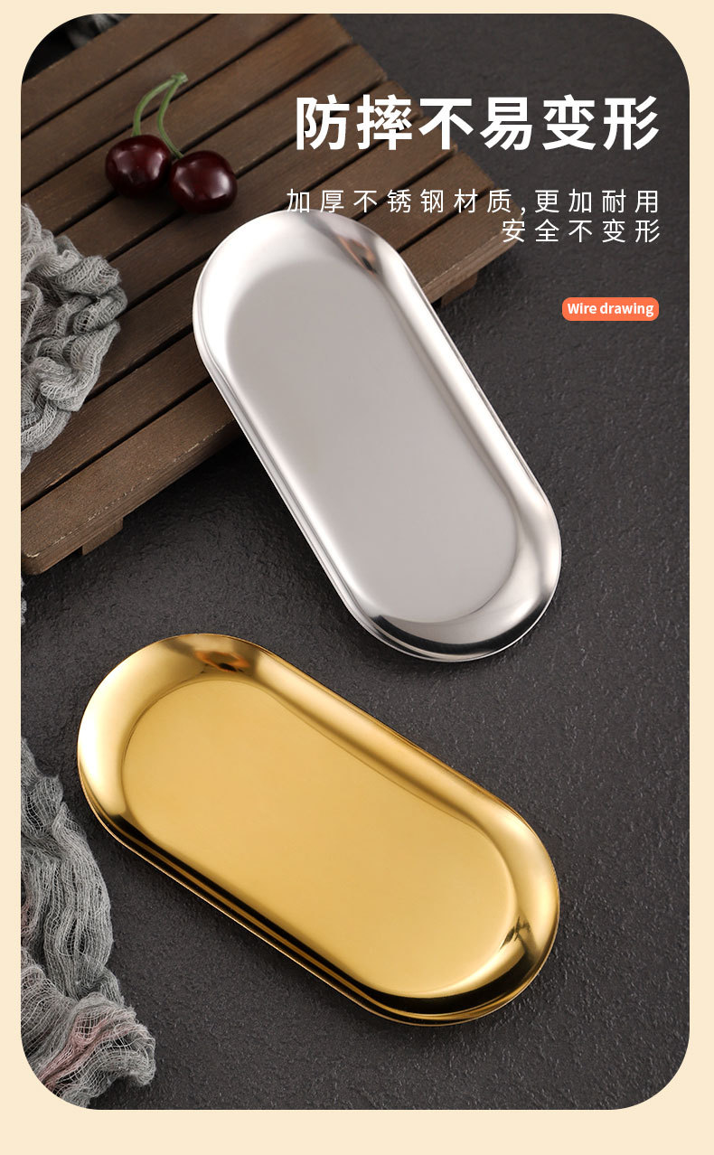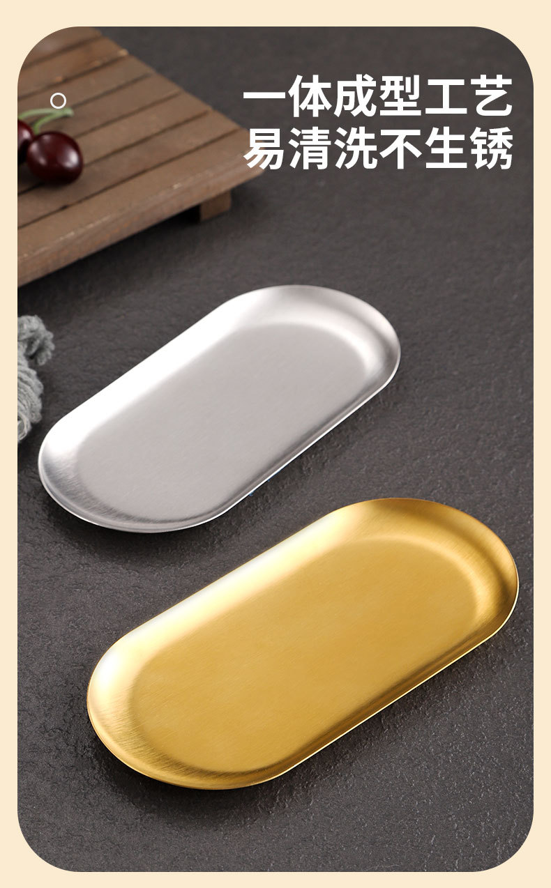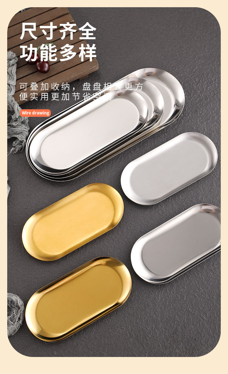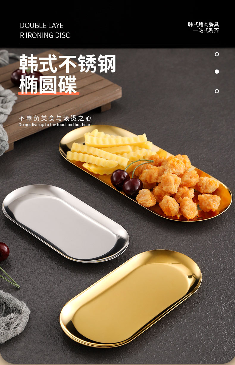 Y 스테인레스 스틸 타원형 플레이트 창조적 인 레스토랑 디저트 플레이트 상업 트레이 한국 요리 황금 바베큐 플레이트 로고스토어 가기