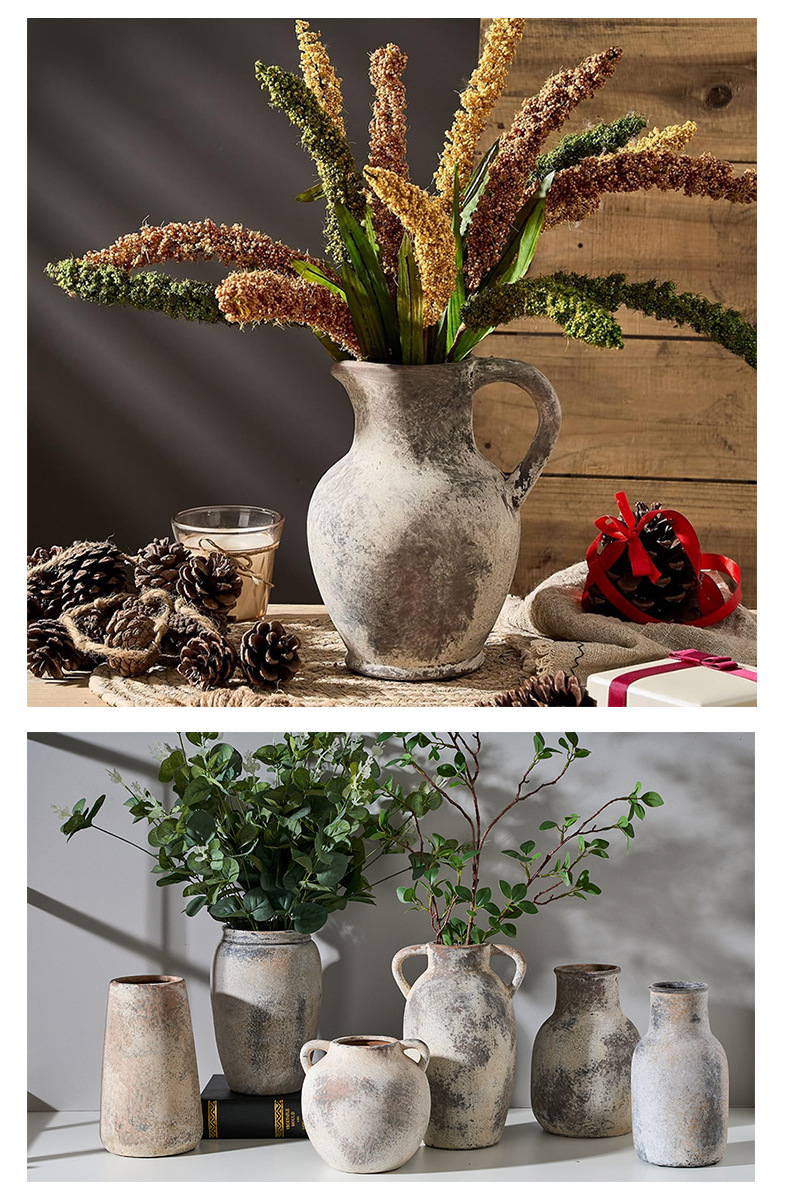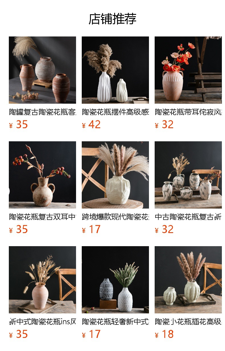 诧寂风简约陶瓷花瓶插花摆件家居民宿摆设卧室桌面套装鲜花干花器