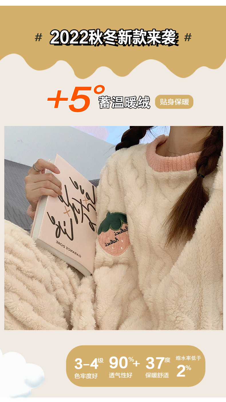 산호 양털 잠옷 여성 가을과 겨울 딸기 그물 레드 스타일 여성 기모 세트 플러스 사이즈 플란넬 홈 옷스토어 가기